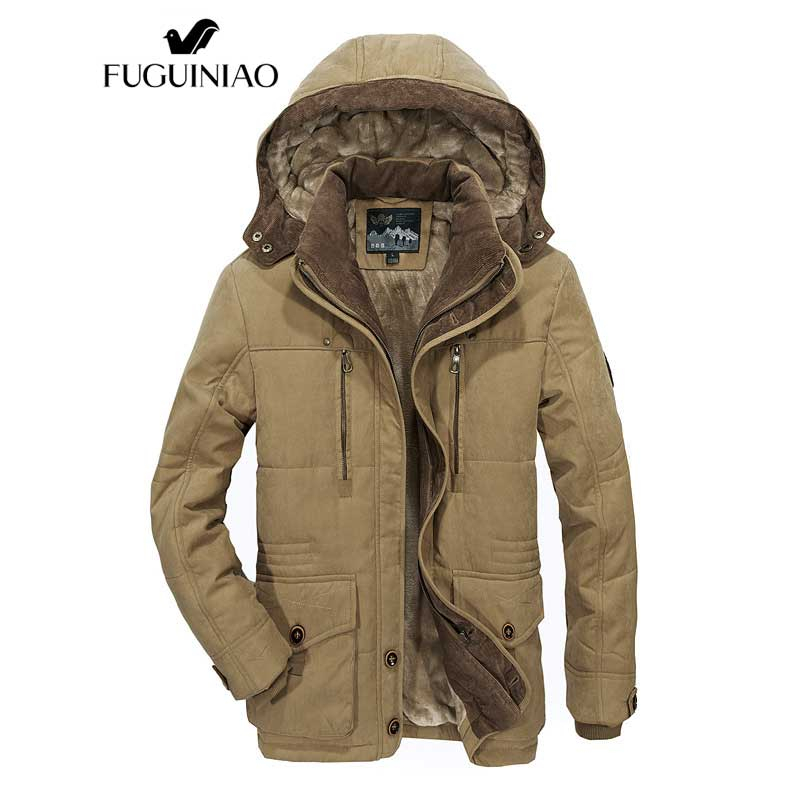 Fuguiniao ใหม่ เสื้อผ้าฝ้าย แบบหนา ยาวปานกลาง แฟชั่นฤดูหนาว สําหรับผู้ชาย