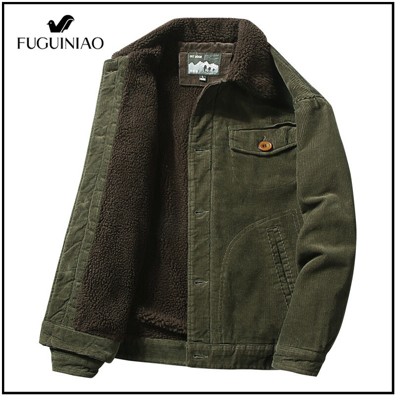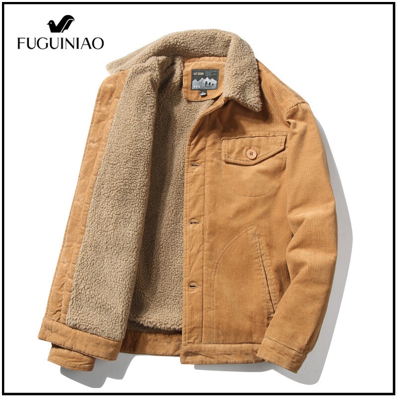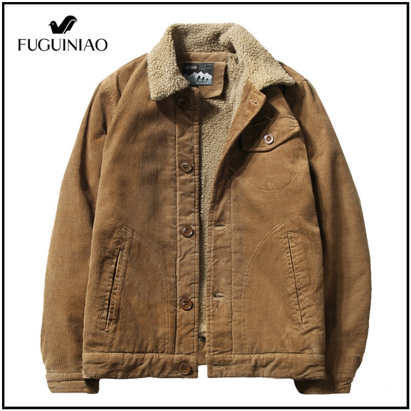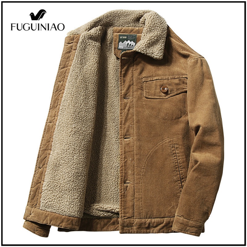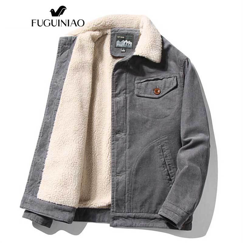 Fuguiniao เสื้อแจ็กเก็ตลําลอง ผ้าลูกฟูก ขนเฟอร์ ให้ความอบอุ่น แฟชั่นฤดูหนาว สําหรับผู้ชาย