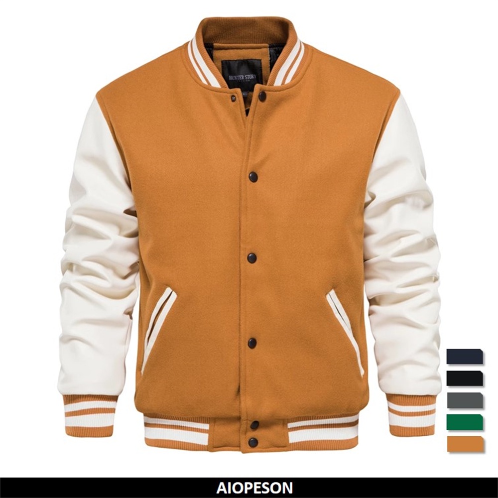 AIOPESON สีทึบผู้ชายแจ็คเก็ตเบสบอล Slim Fit ผ้าฝ้ายบางเสื้อแจ็คเก็ตกระดุมแถวเดียวสําหรับชายฤดูใบไม้ร่วงฤดูหนาว Streetwear เสื้อผู้ชาย