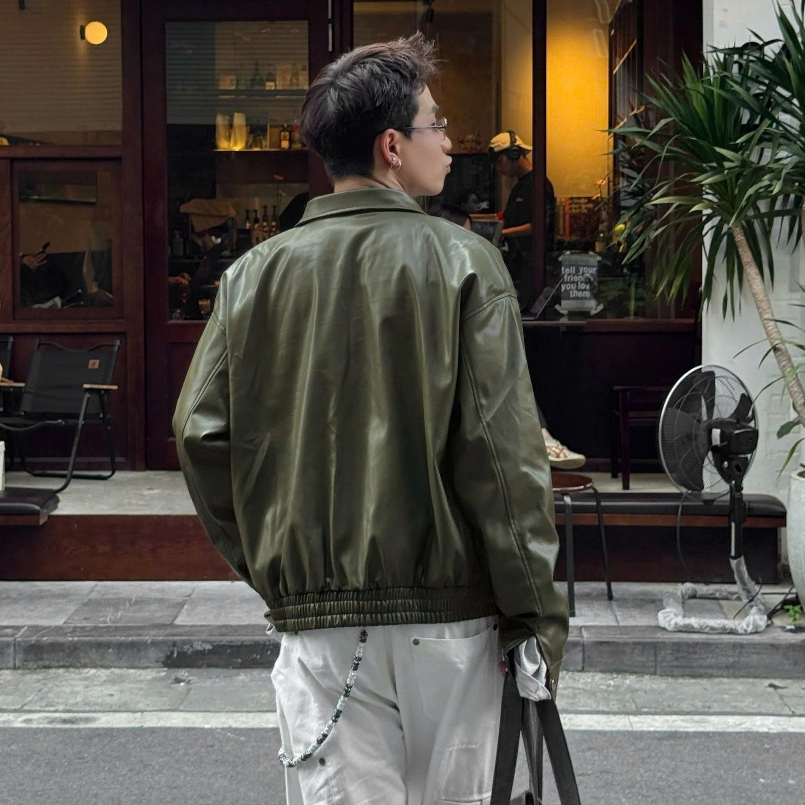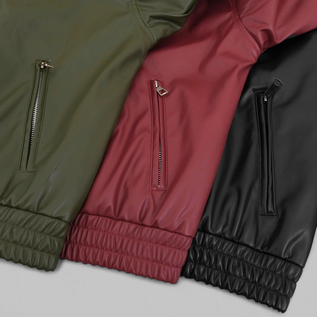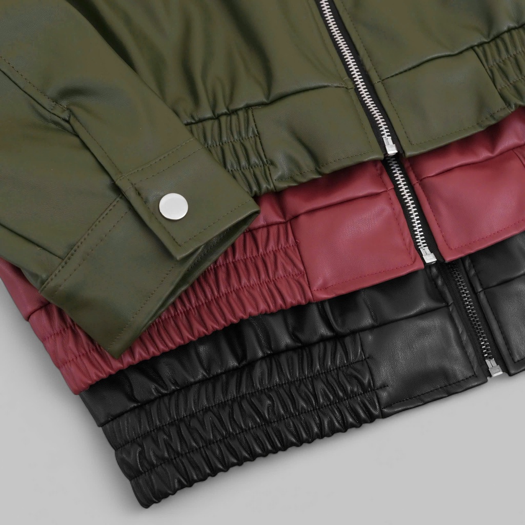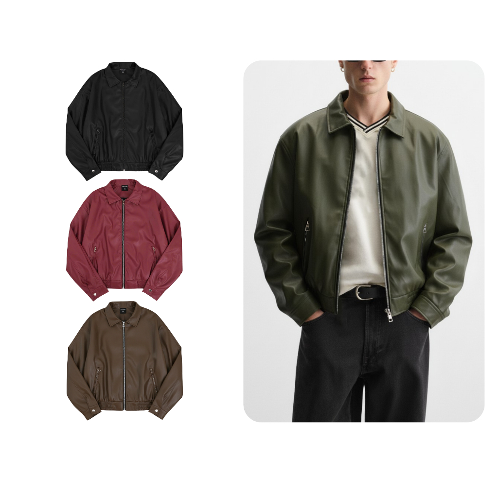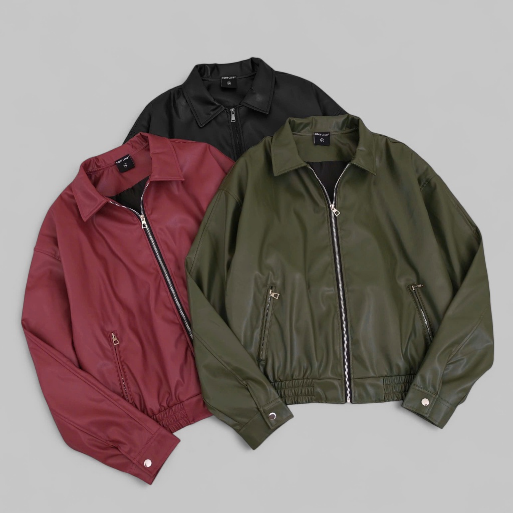 ODIN CLUB Soda Leather Jacket เสื้อแจ็คเก็ตผู้ชายและผู้หญิงทําจากหนัง PU ยืดนุ่ม แบบกล่องเข้ากับฟิกเกอร์