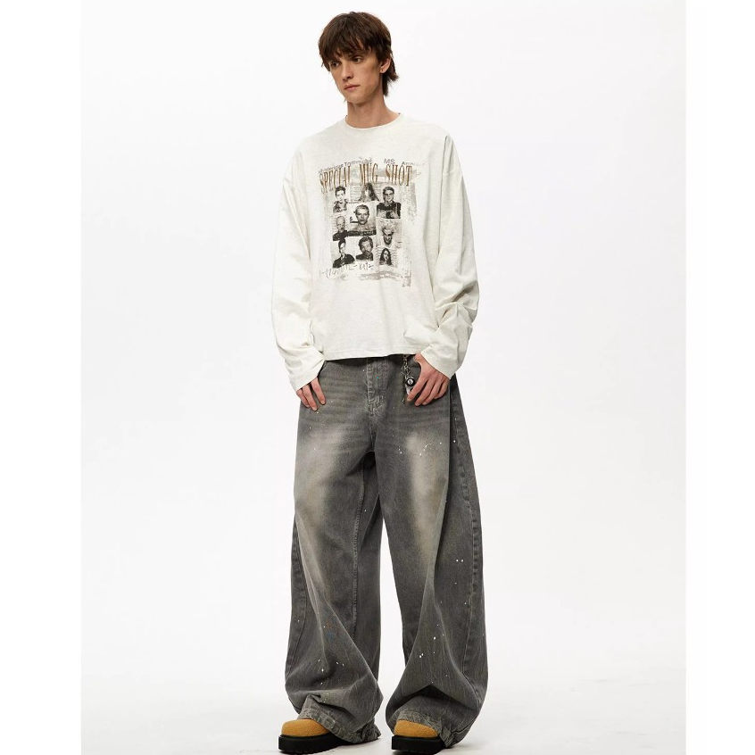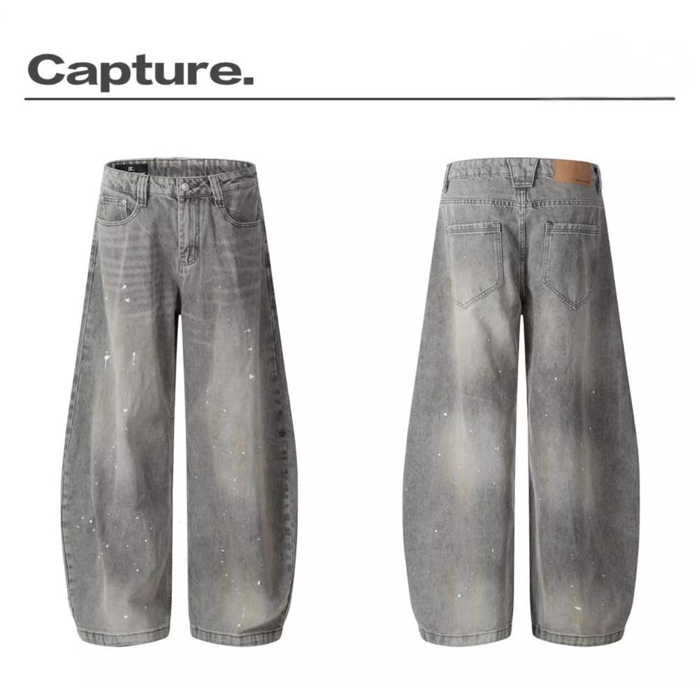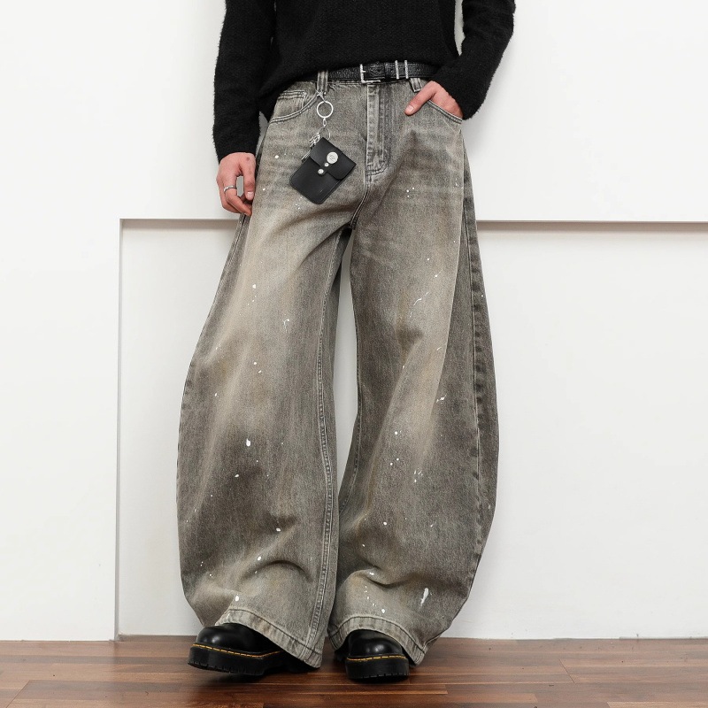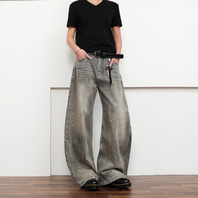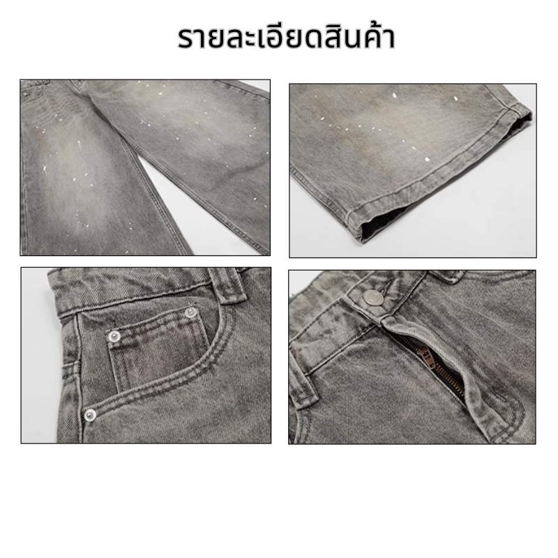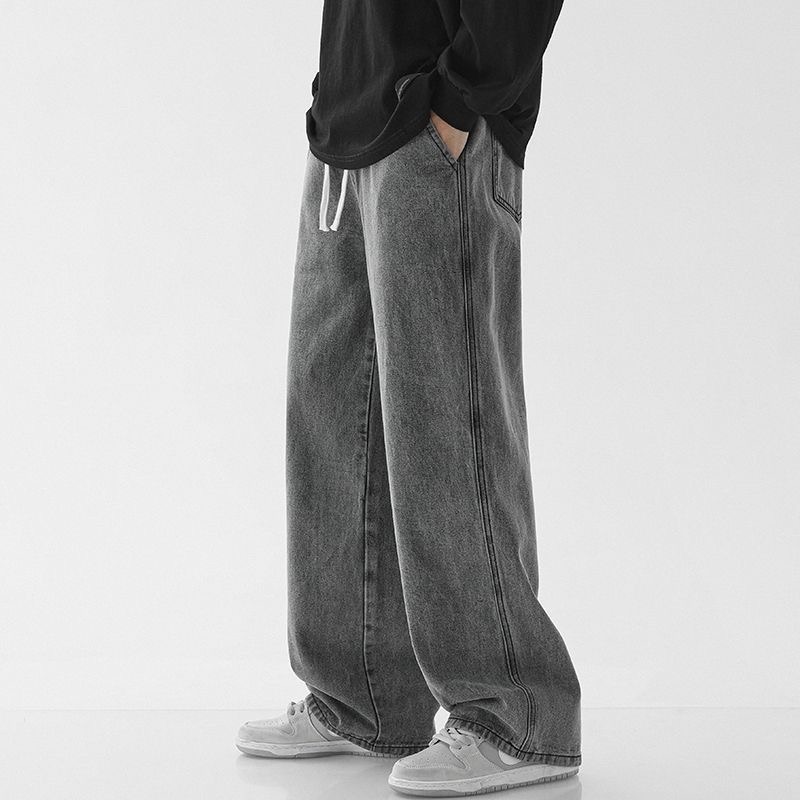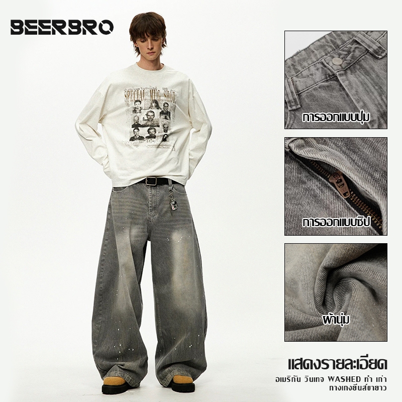 beerbroth-กางเกงยีนส์ผู้ชาย ย้อนยุค สไตล์อเมริกัน ทรงตรง สีเทา ขากว้าง ทรงกระบอกใหญ่ ทรงหลวม baggy jeans