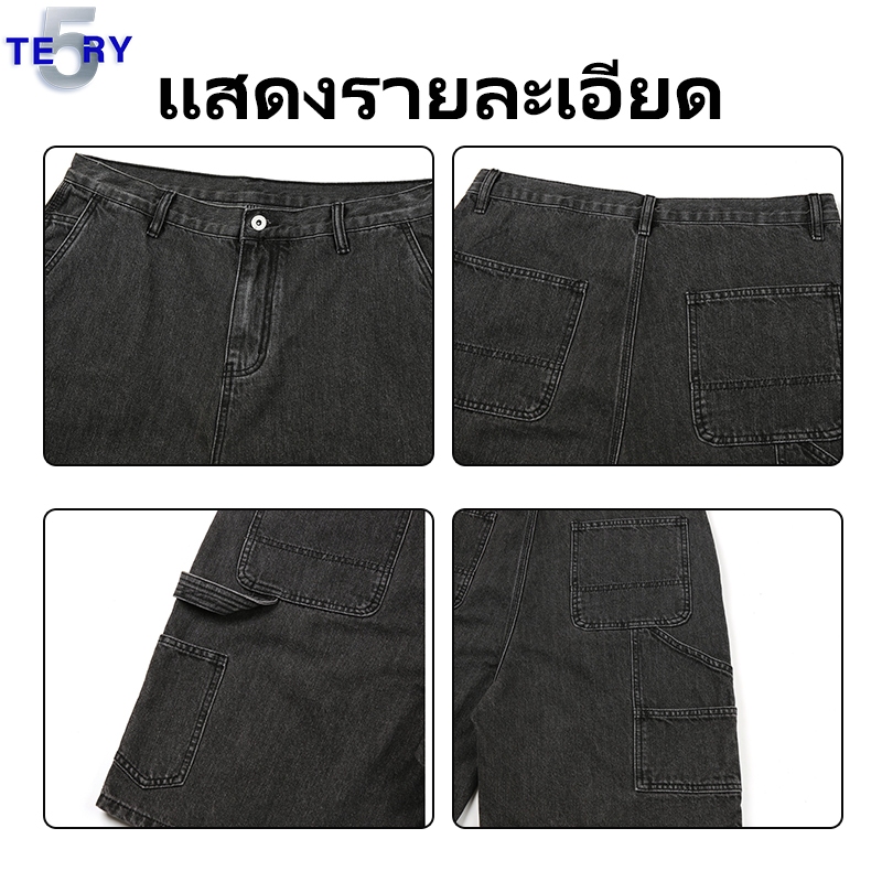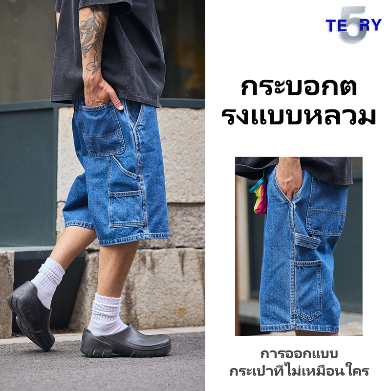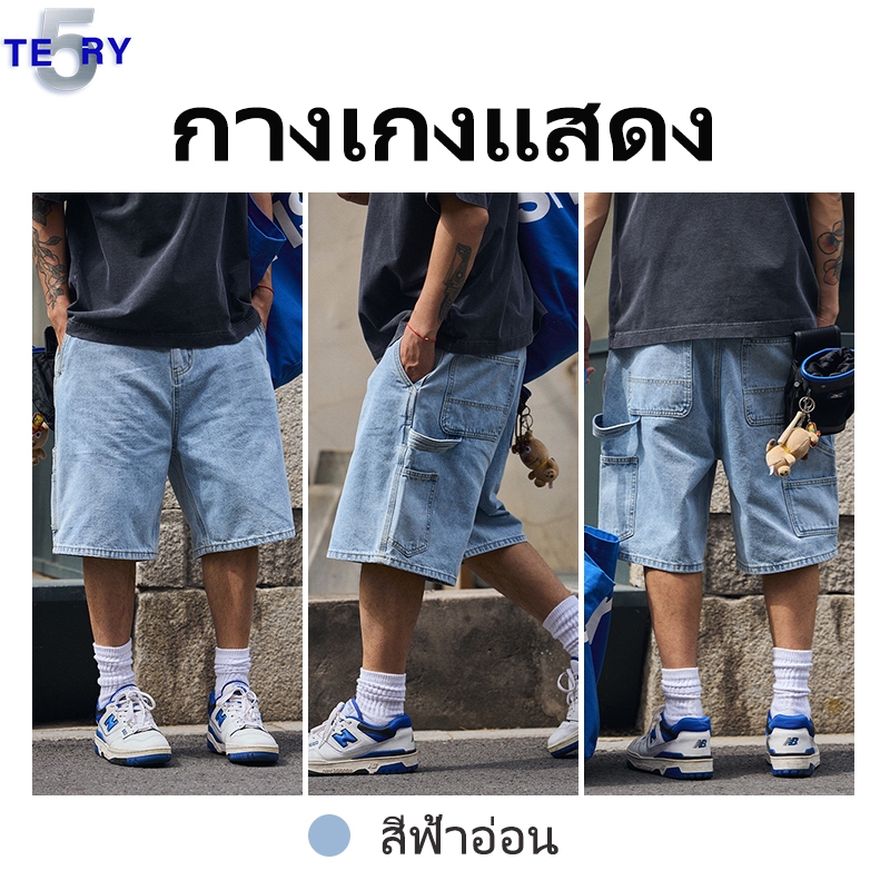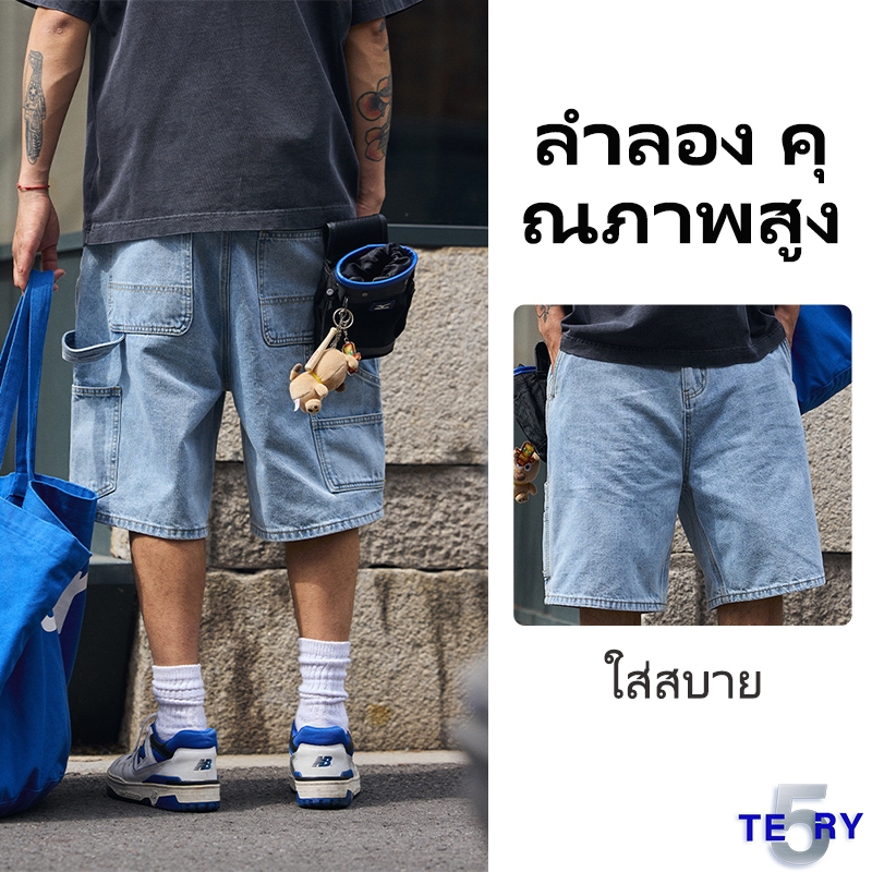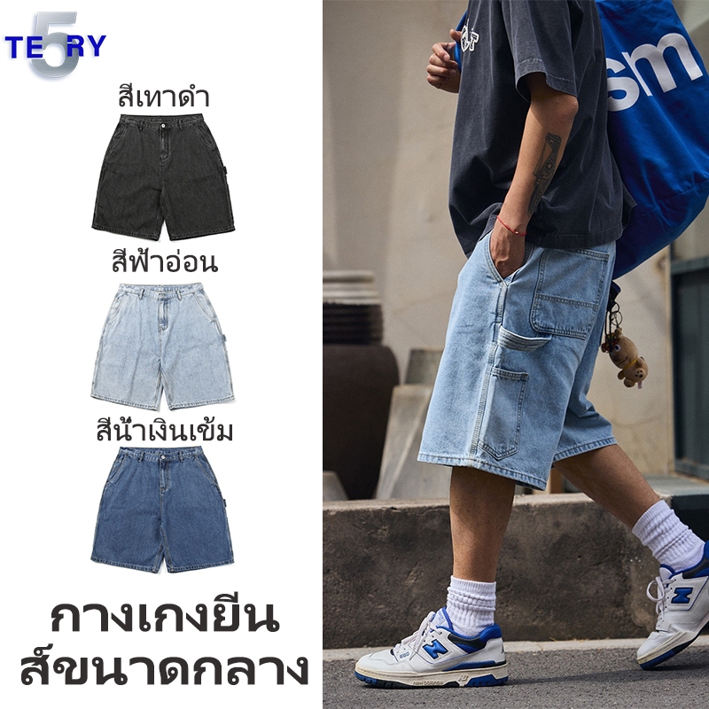5TERY ⚡HOT⚡ยีนส์ขาสั้น ผู้ชาย ทรงหลวม แบบซิป เอวกลาง ทรงตรง ใส่สบาย วินเทจ สไตล์ สตรีท 3 สี จัดส่งรวดเร็ว