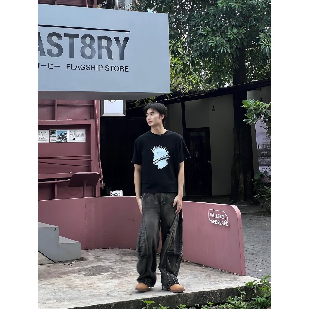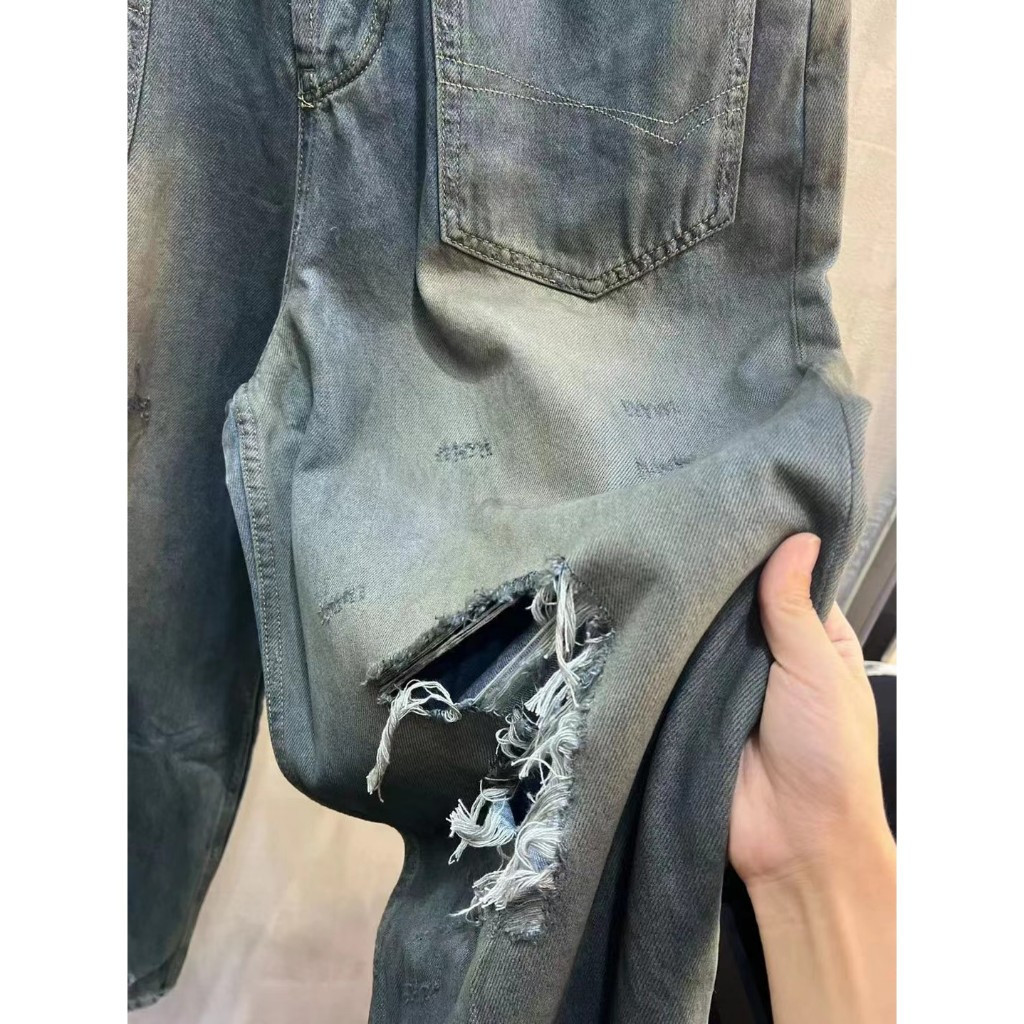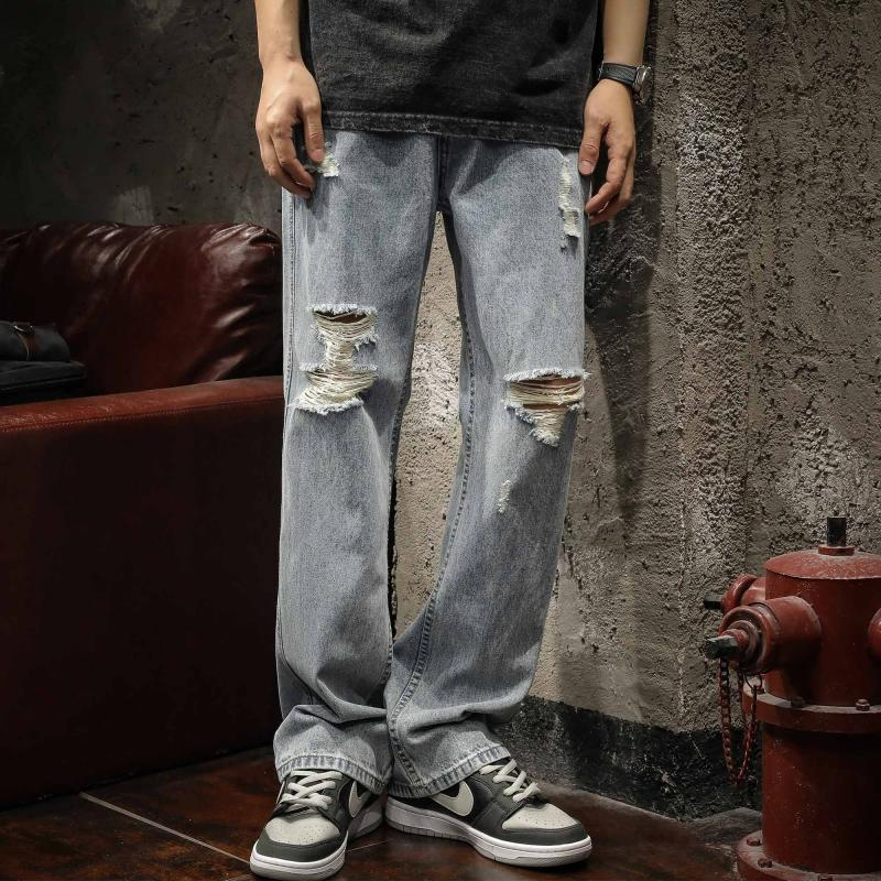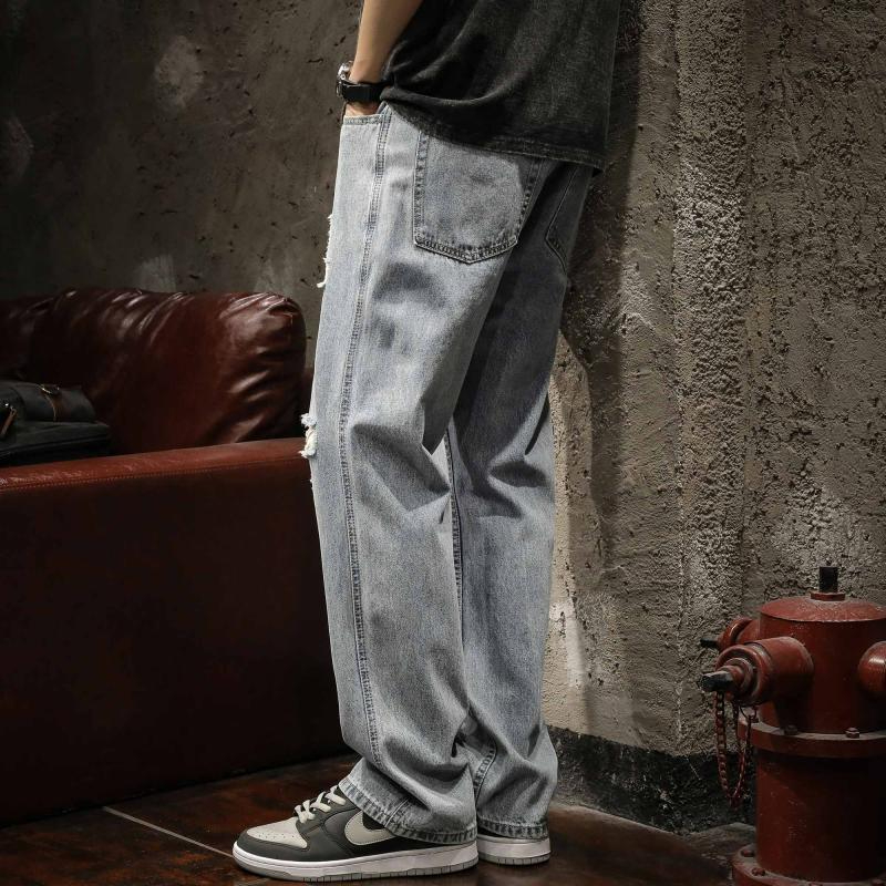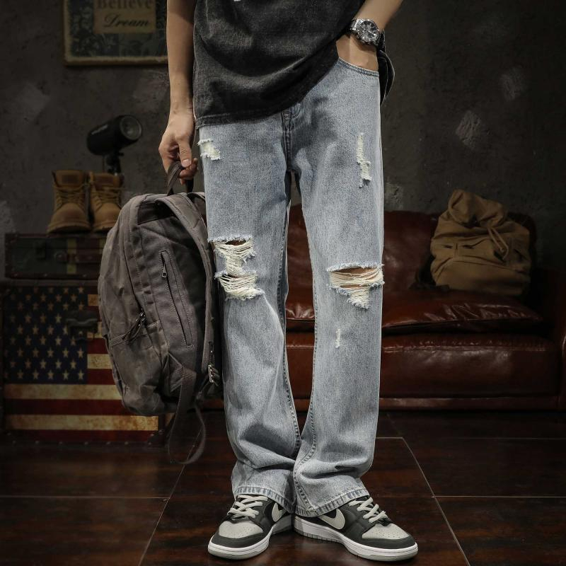(สินค้าพร้อมส่ง)กางเกงยีนส์ขาดสไตล์อเมริกันสำหรับผู้ชาย ทรงตรง ขนาดหลวม เหมาะสำหรับใส่ในชีวิตประจำวัน