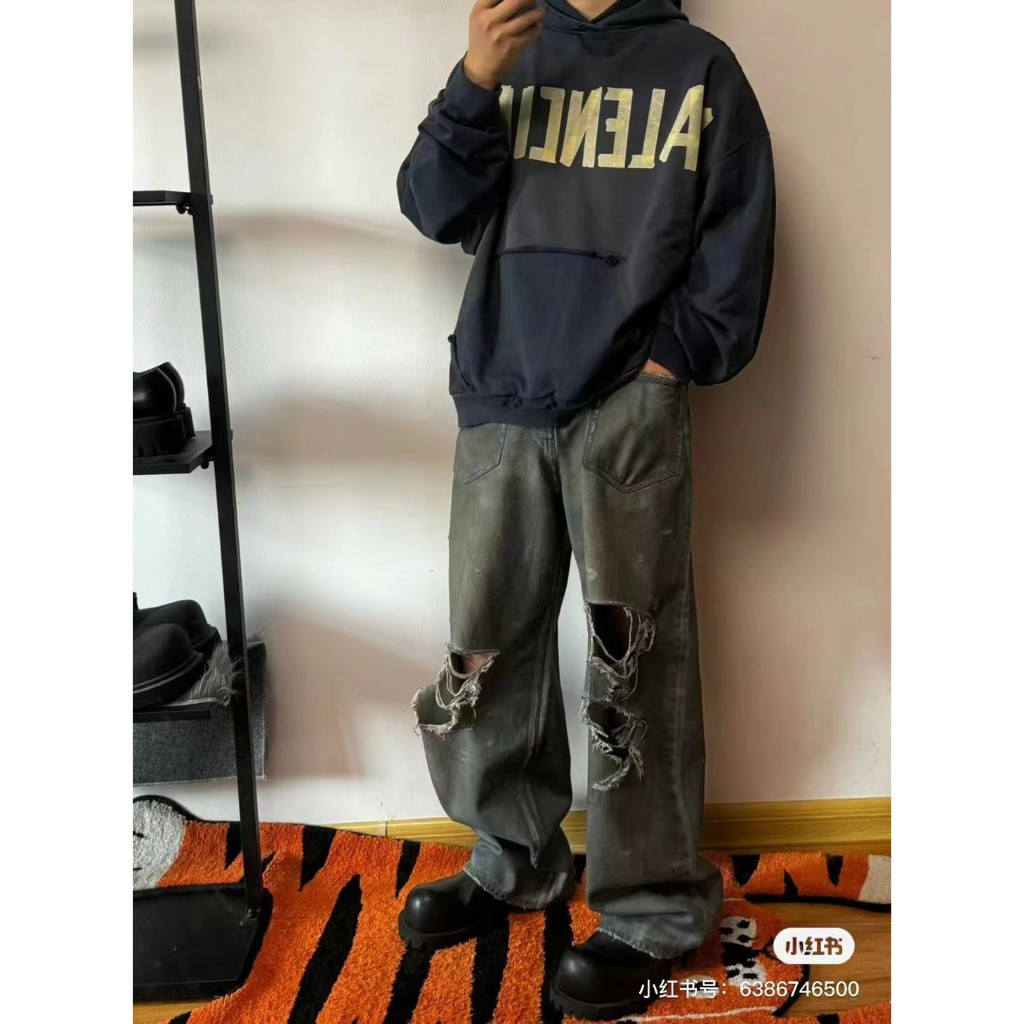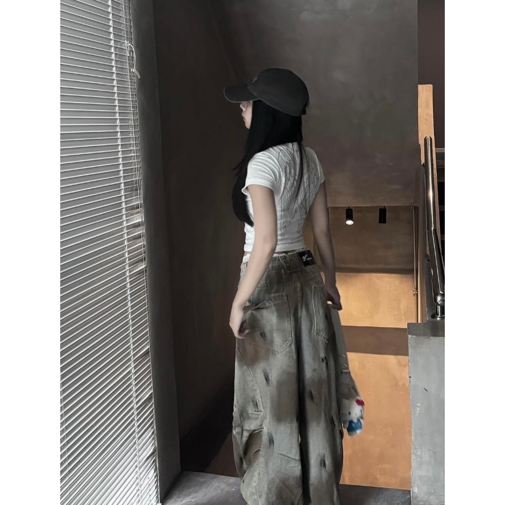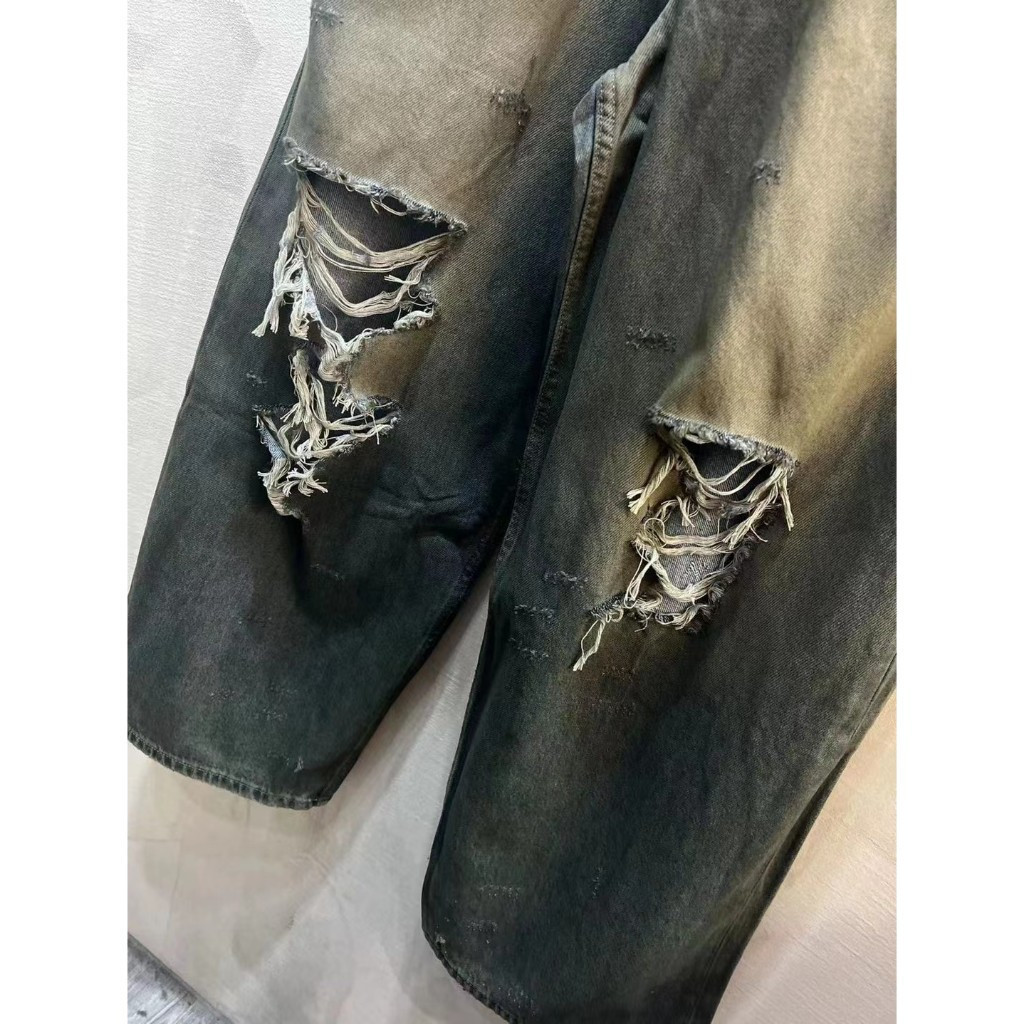 (สินค้าพร้อมส่ง)กางเกงยีนส์ขาดสไตล์อเมริกันสำหรับผู้ชาย ทรงตรง ขนาดหลวม เหมาะสำหรับใส่ในชีวิตประจำวัน