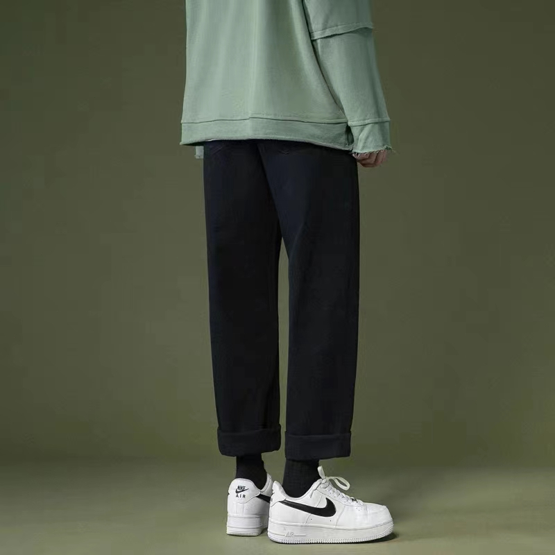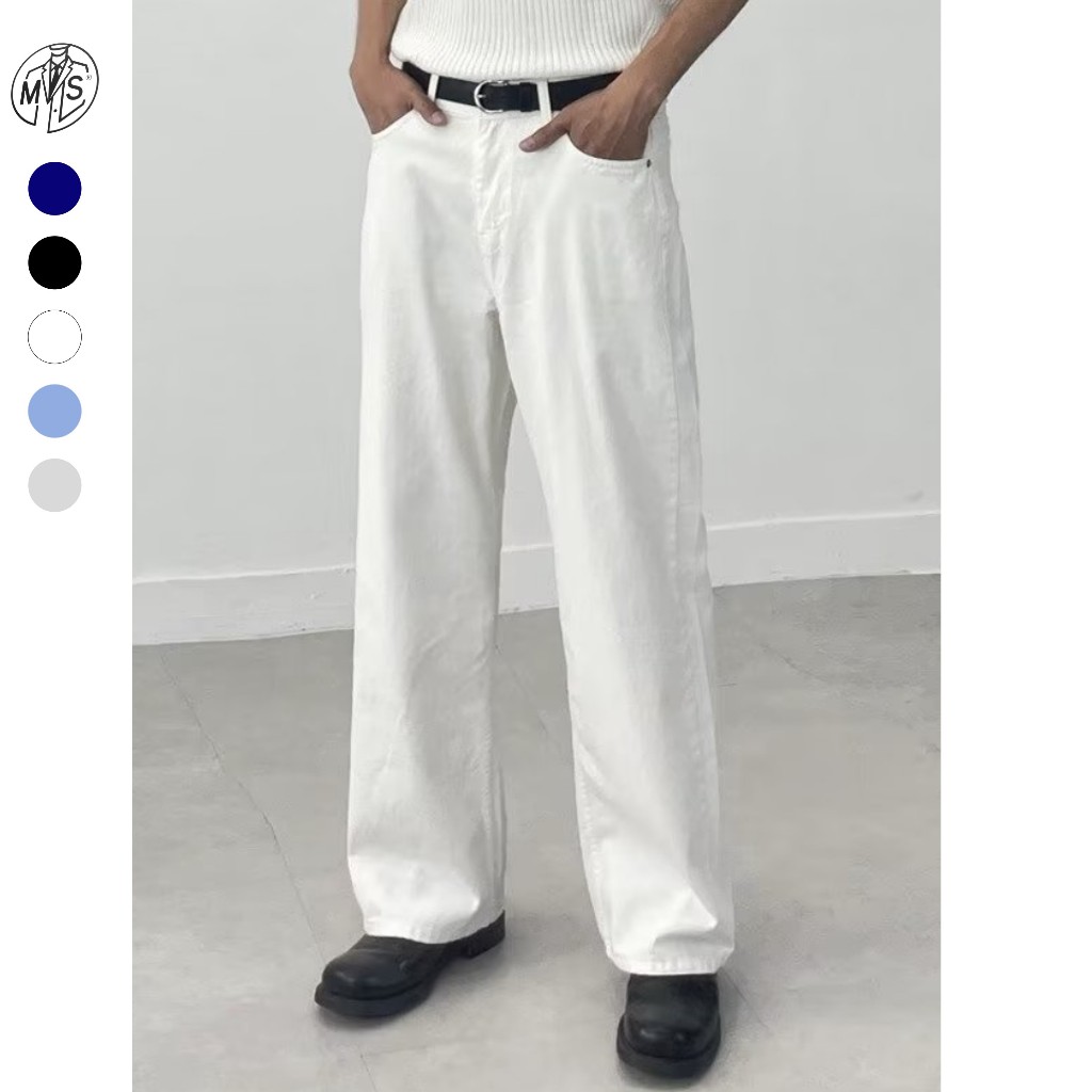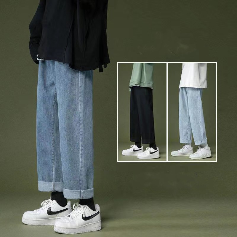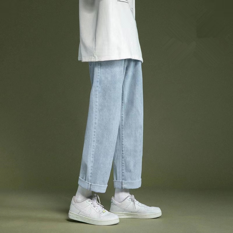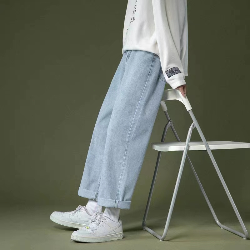 2023 New กางเกงยีนส์ขายาวผู้ชาย กางเกงยีนส์เกาหลีกระบอกตรงสีอ่อนสไตล์เกาหลีย้อนยุควินเทจ