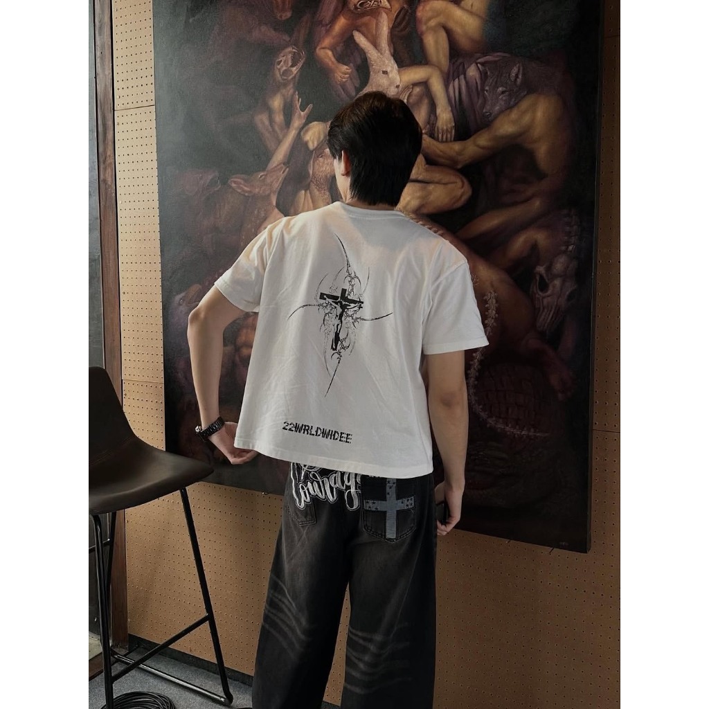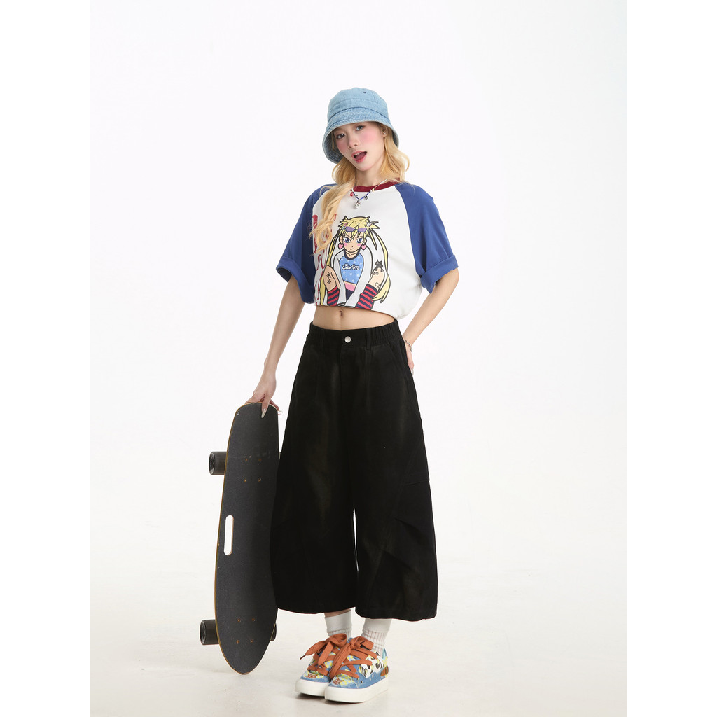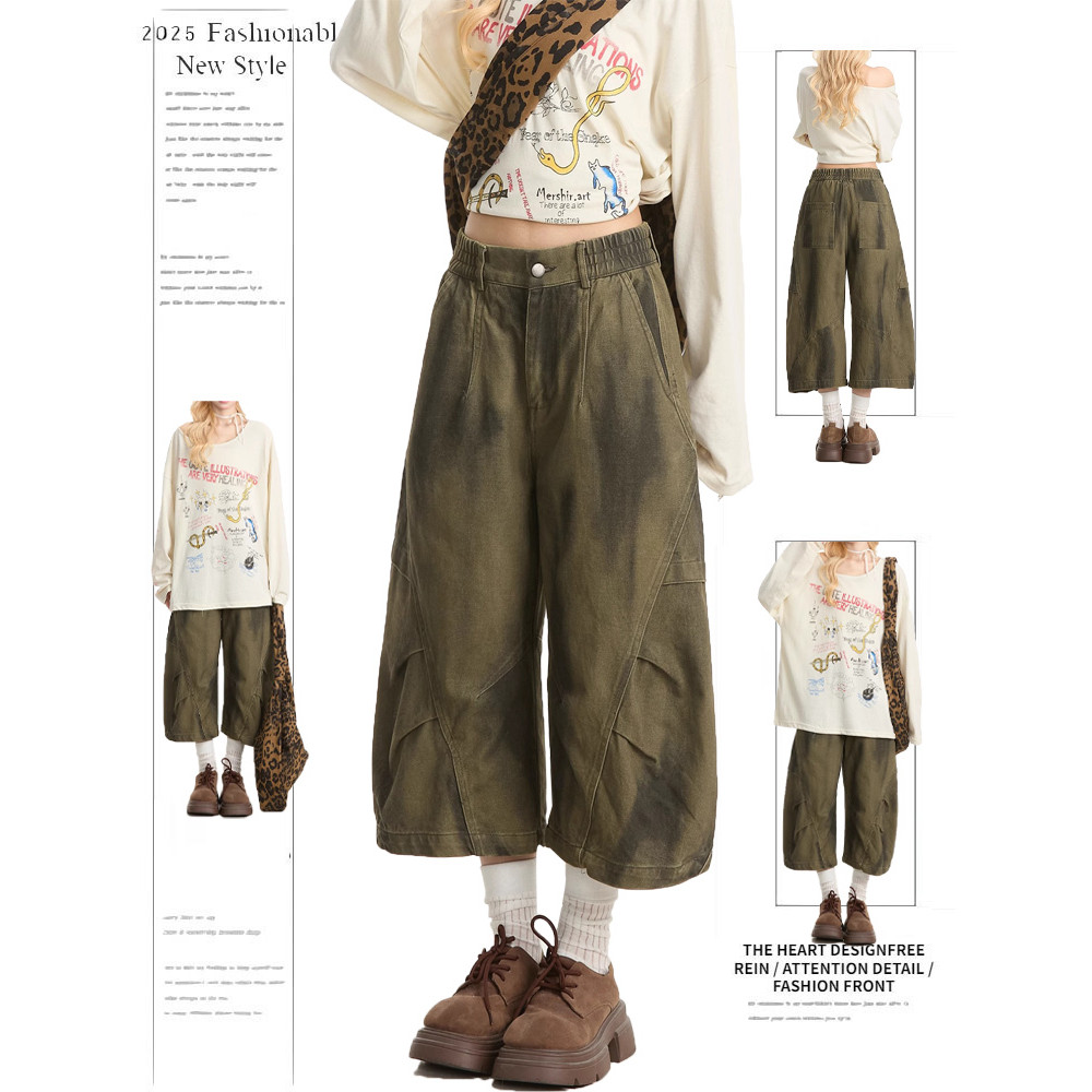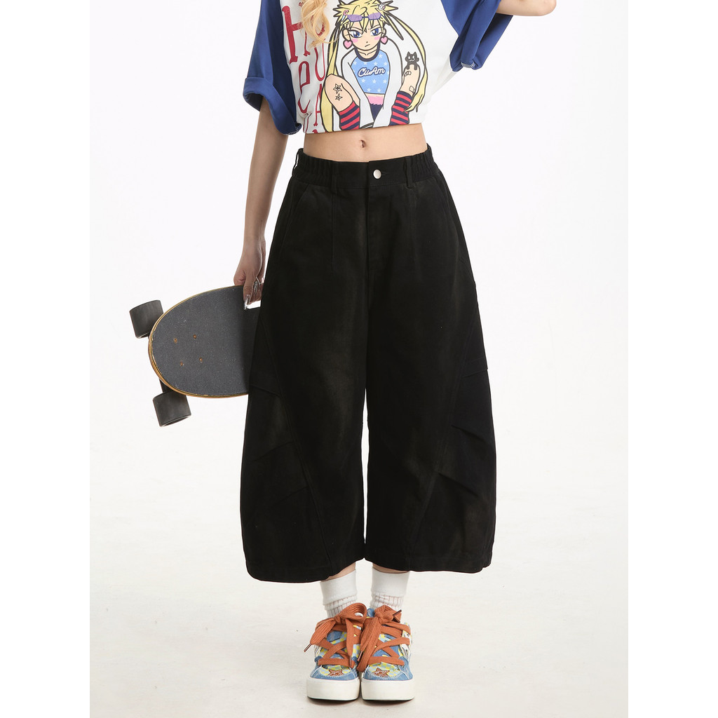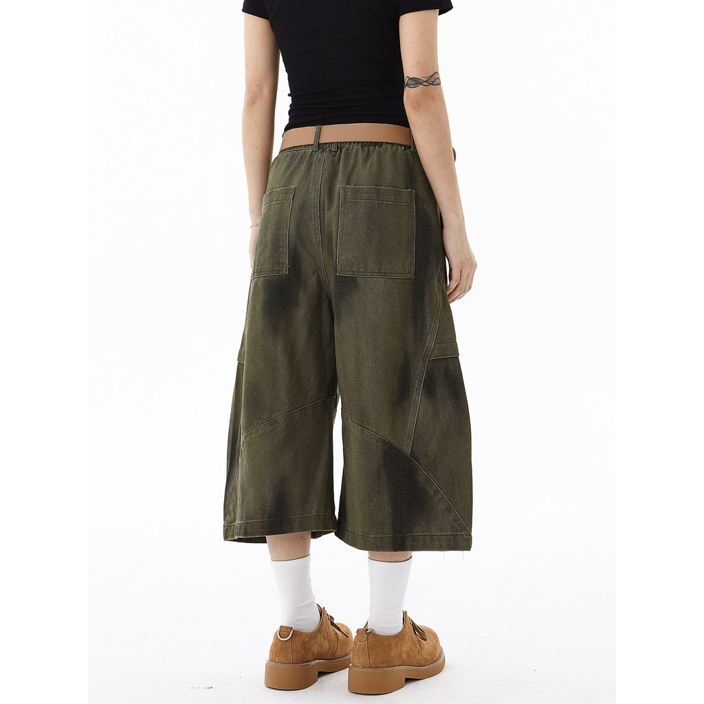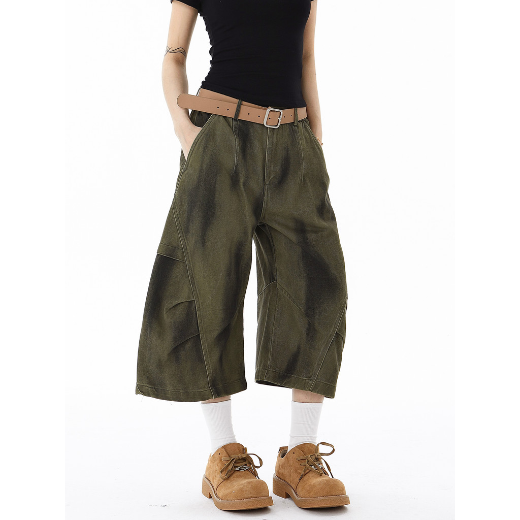 ASRV กางเกงยีนส์ครอปมัดย้อมย้อนยุคอเมริกันสําหรับฤดูร้อนชายและหญิงหลวมขากว้างตรง