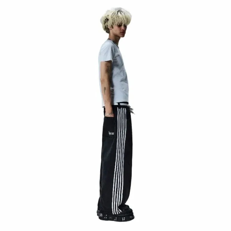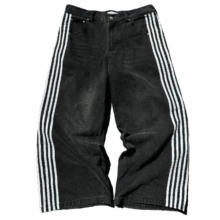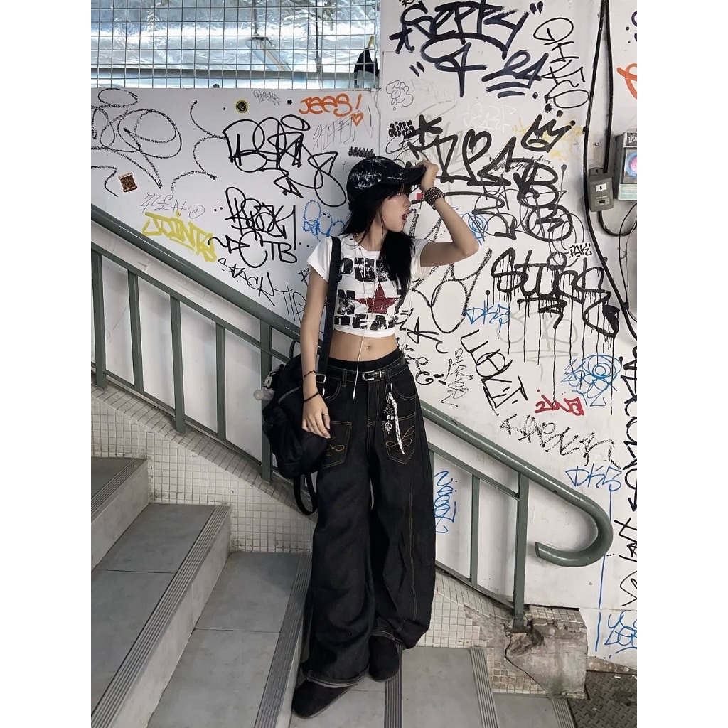 Baggy กางเกงยีนส์ Harajuku Goth Y2k กางเกงยีนส์สําหรับชายสีดําลายใหม่ Hip Hop ปักกางเกงยีนส์ขากว้าง High Street Streetwear