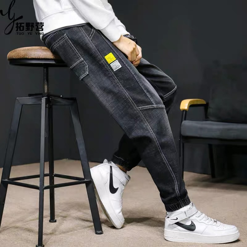 #036#L-5XL#กางเกงยีนทรงขาจั้มแฟชั่นสไตส์เกาหลีกางเกงยีนขายาวผู้ชายฤดูร้อนทรงอย่างเท่ใส่สบาย