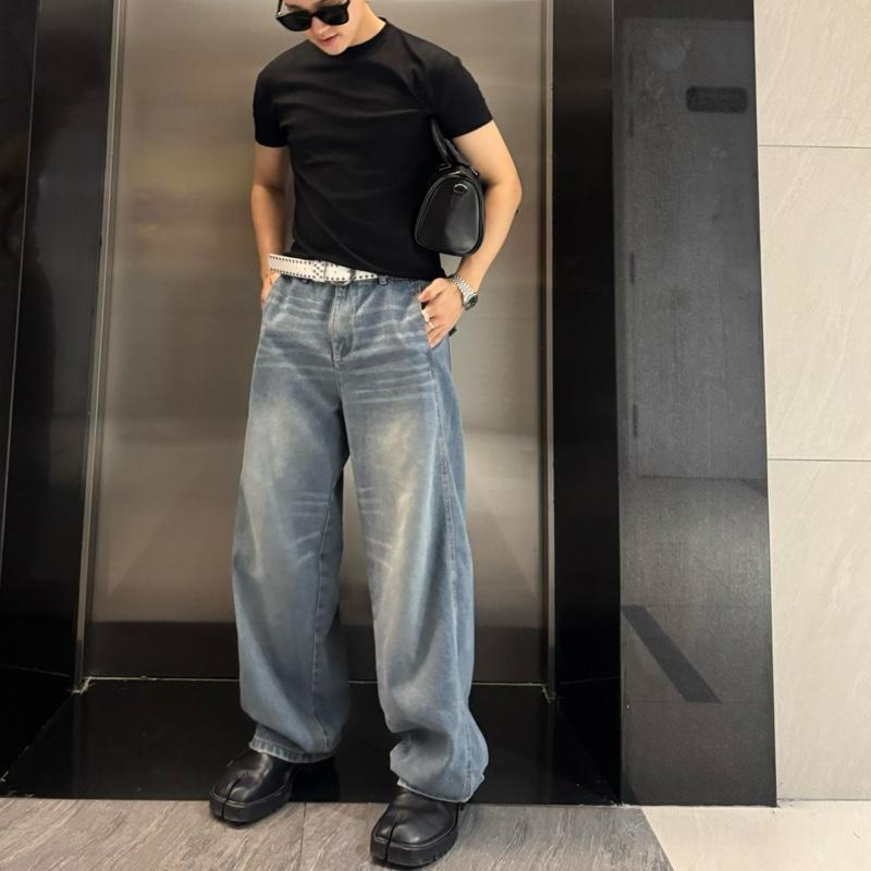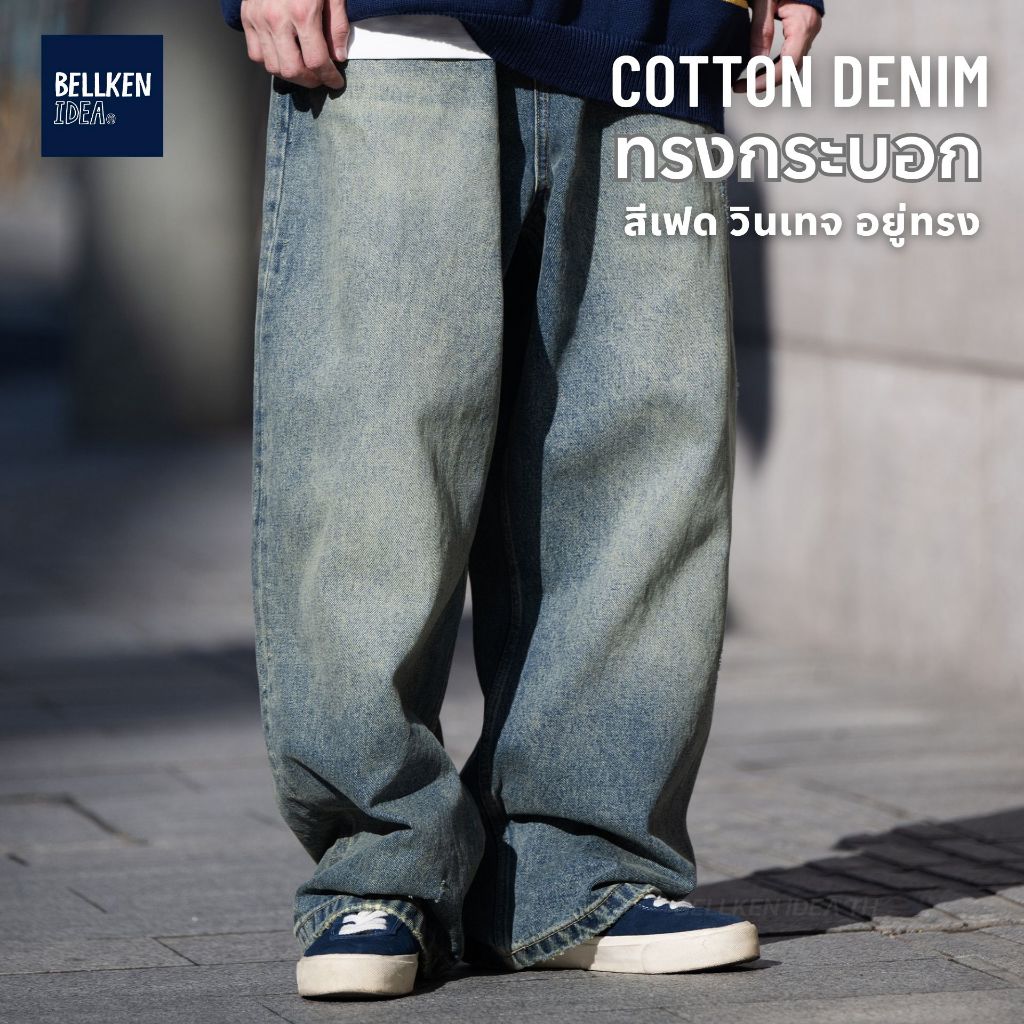 BELLKEN VINTAGE WASHED JEANS กางเกงยีนส์ฟอกวินเทจ กระบอกตรงขากว้าง ผ้าเดนิมหนาทิ้งตัวอยู่ทรง UNISEX