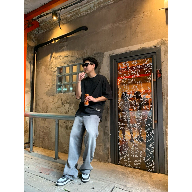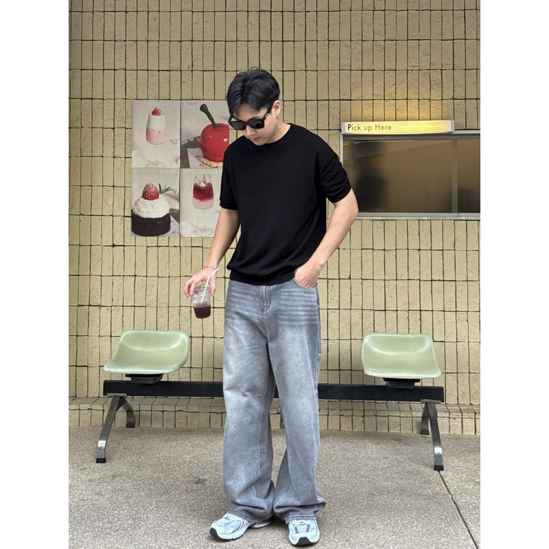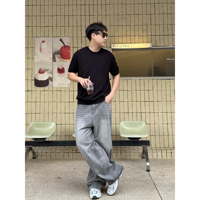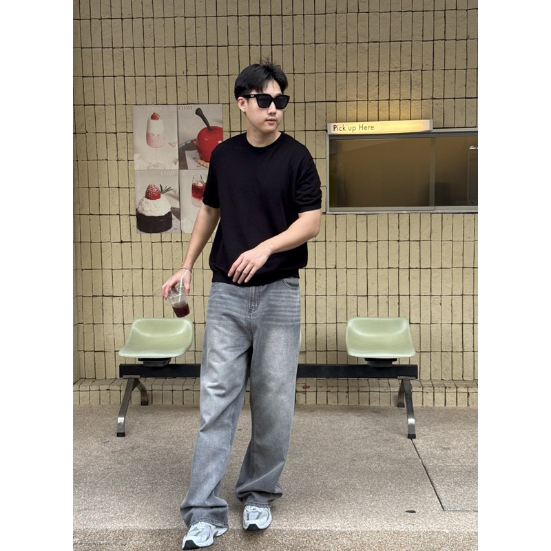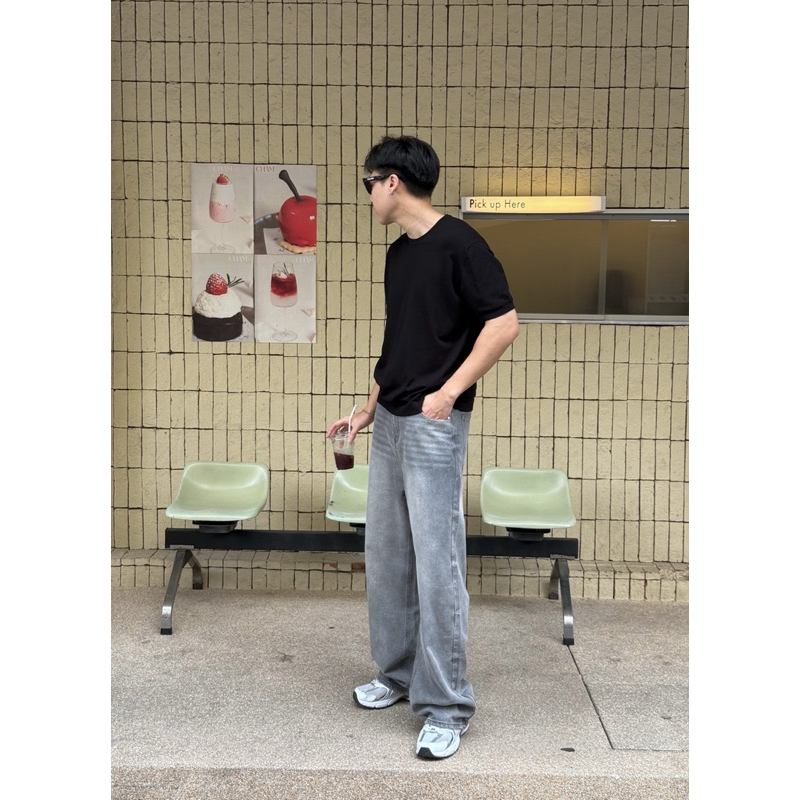 017 Wolf jeans (890.-) กางเกงยีนส์ผู้ชายทรงขากระบอกใหญ่ สีเทา ผ้ายีนส์นิ่ม ใส่สบาย