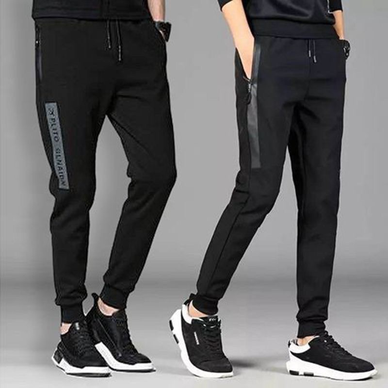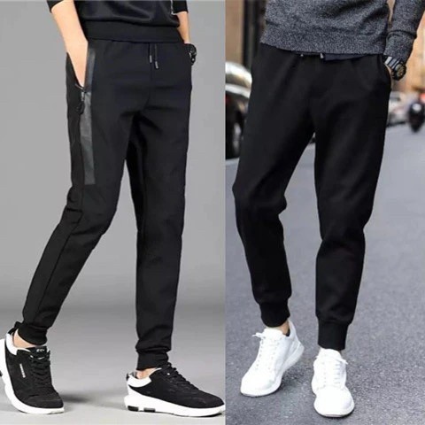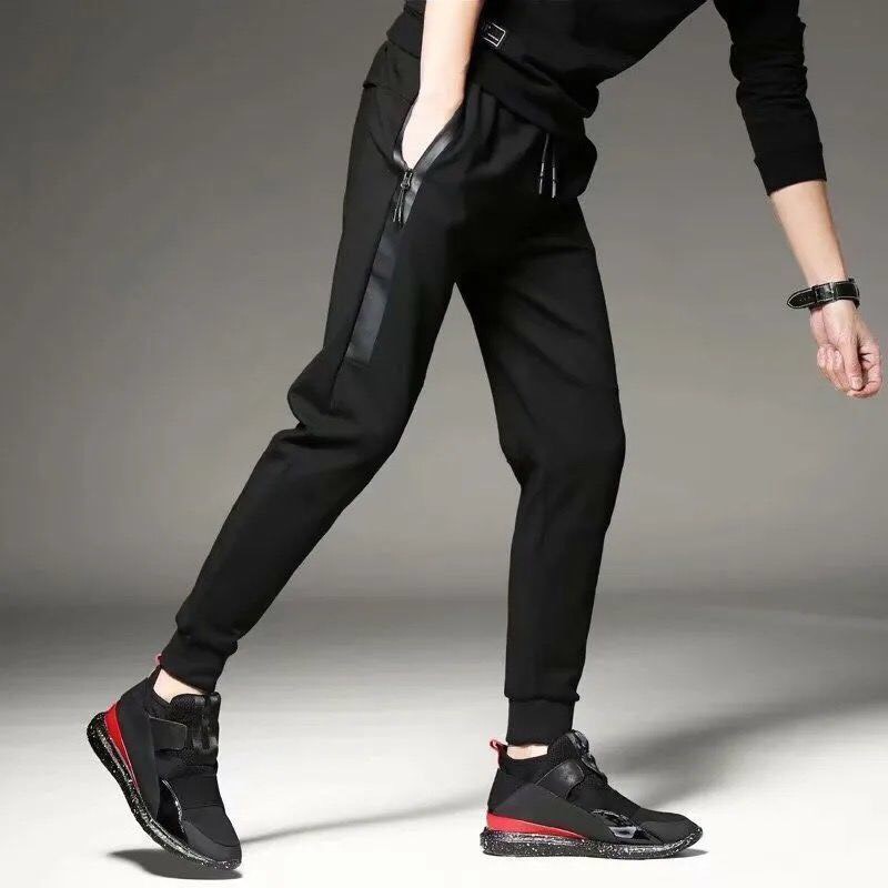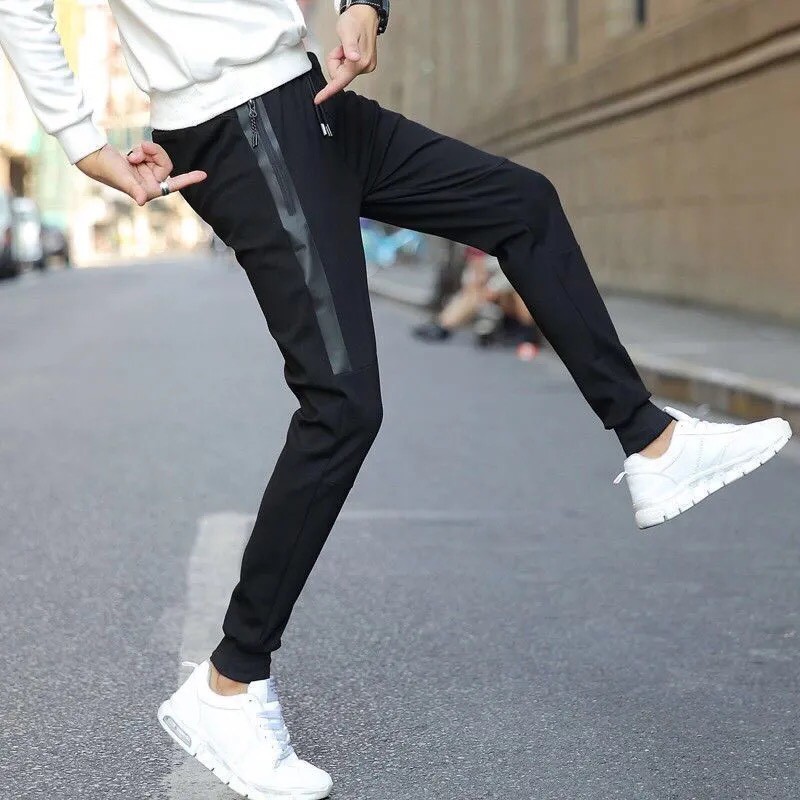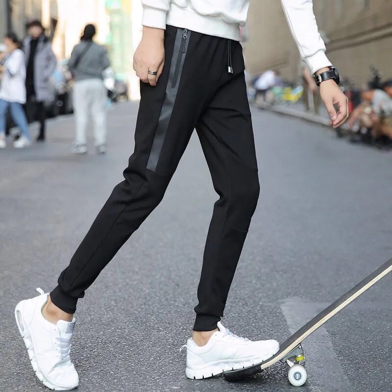 พร้อมส่ง❗กางเกงวอร์มขายาวผู้ชาย สีดำ กางเกงจ็อกเกอร์ลำลองผู้ชายเทรนด์เกาหลี แต่งแถบข้างเท่ๆ มีซิป 1 ข้าง