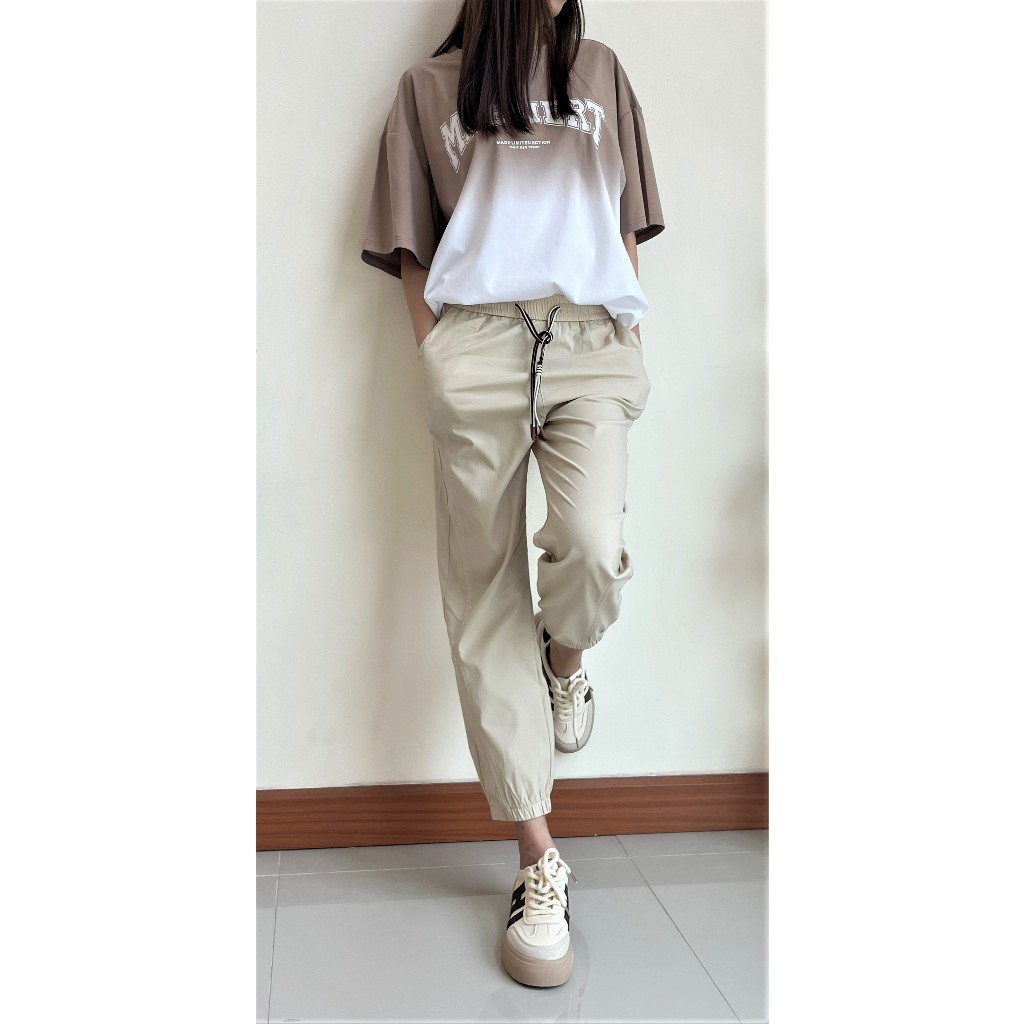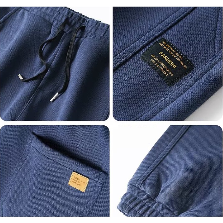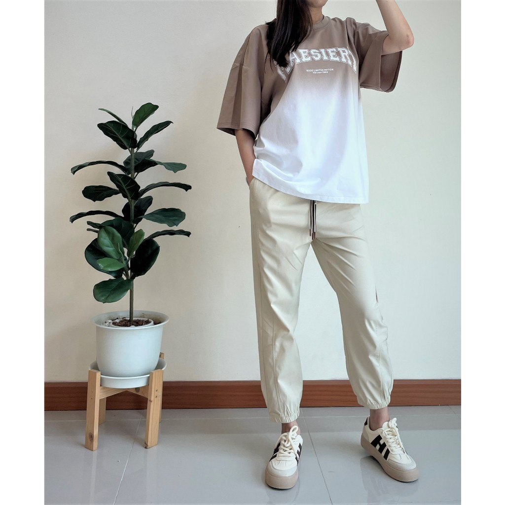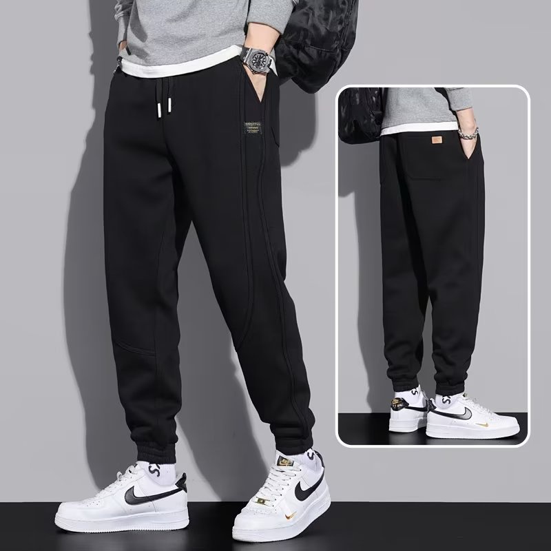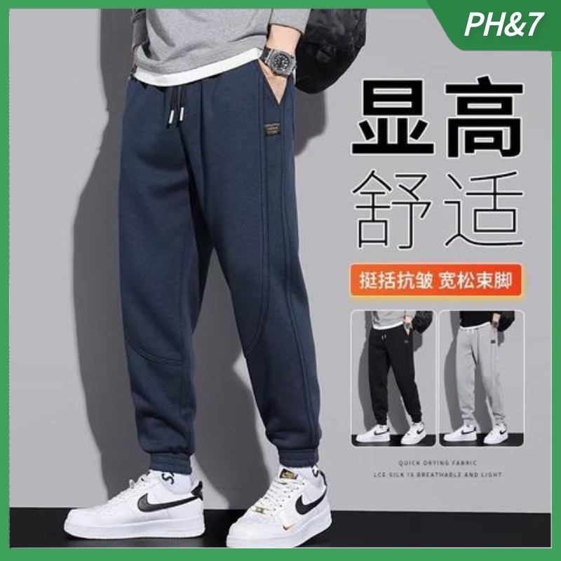 กางเกงขายาวผู้ชาย กางเกงวอร์ม เอวยางยืด สีทึบ ทรงหลวม สไตล์เกาหลี