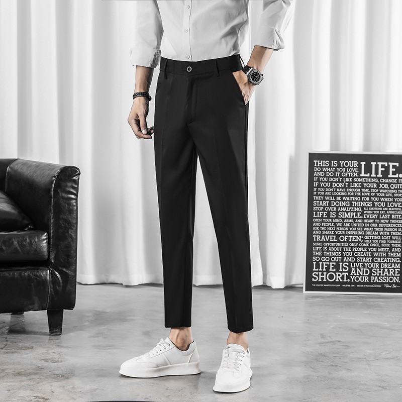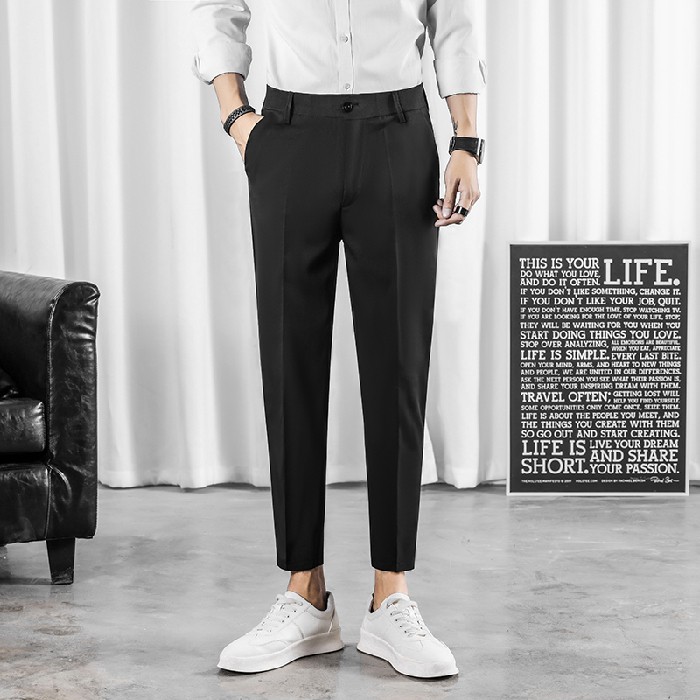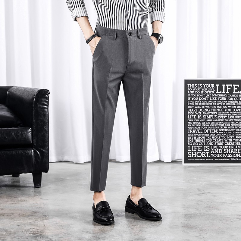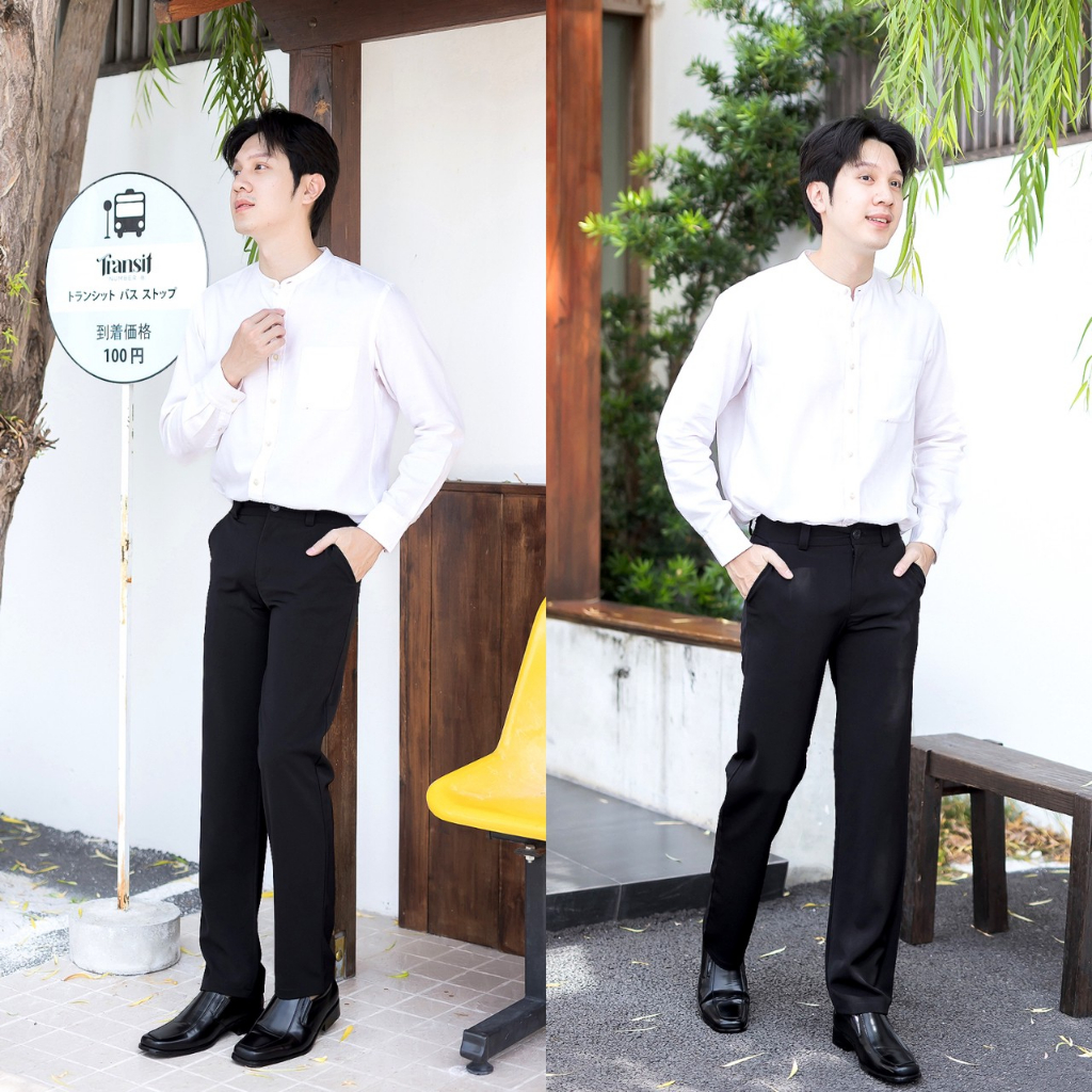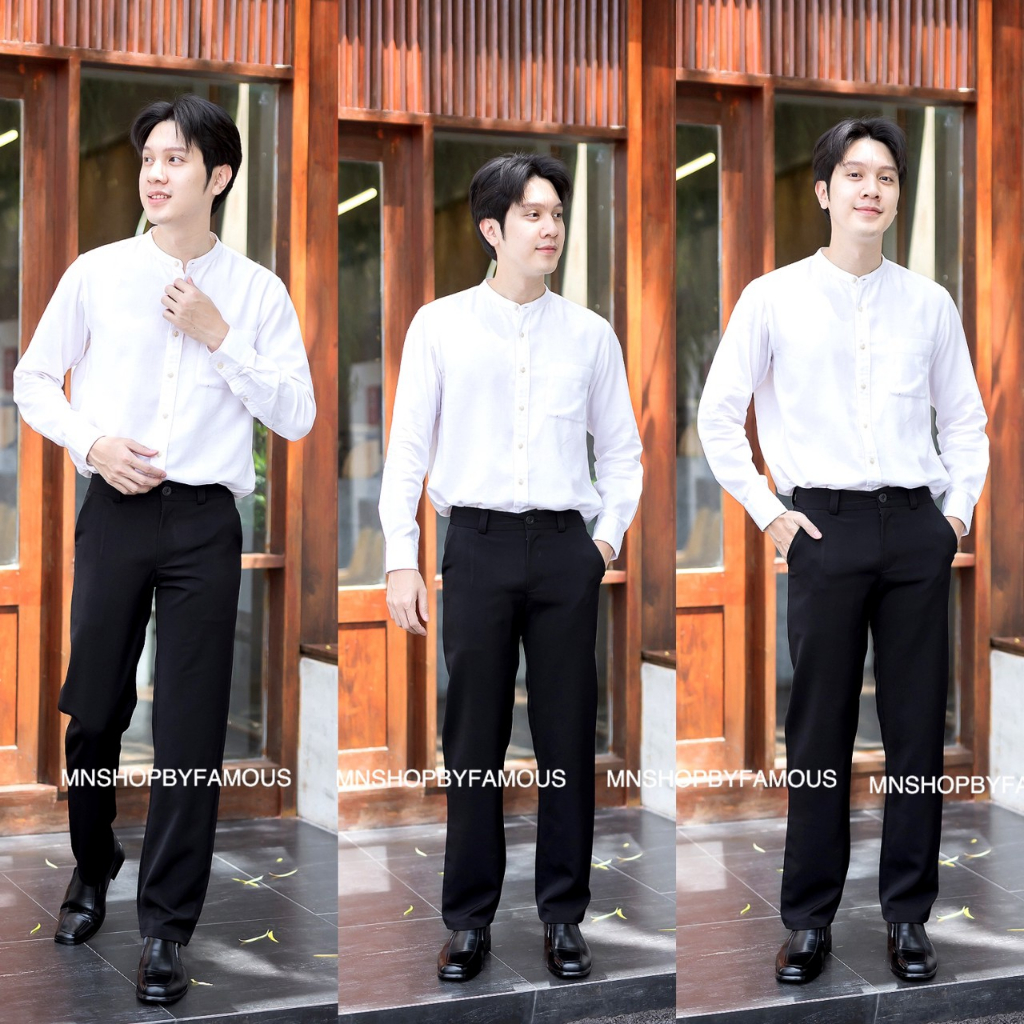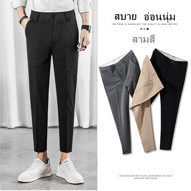 🍒นาโนผู้ชาย🍒กางเกงผ้านาโน-กระบอกเล็กทรงสแล็คทำงานผู้ชาย-🏷️งานป้ายFAMOUS (ไซต์S25-36)