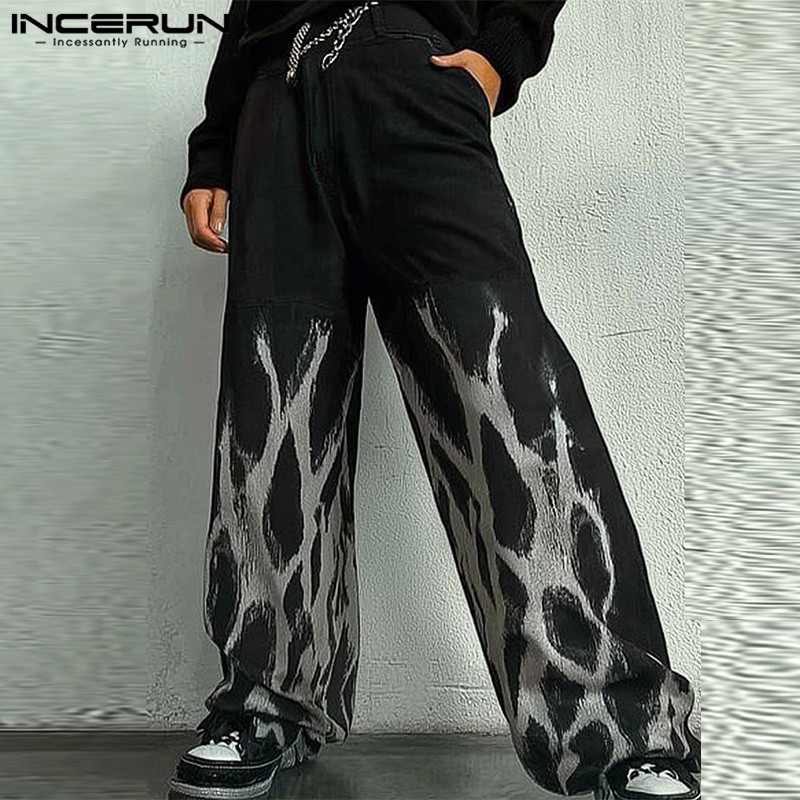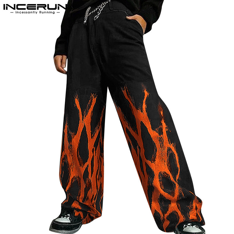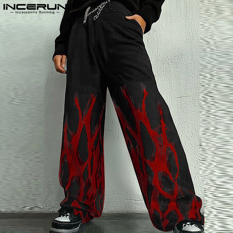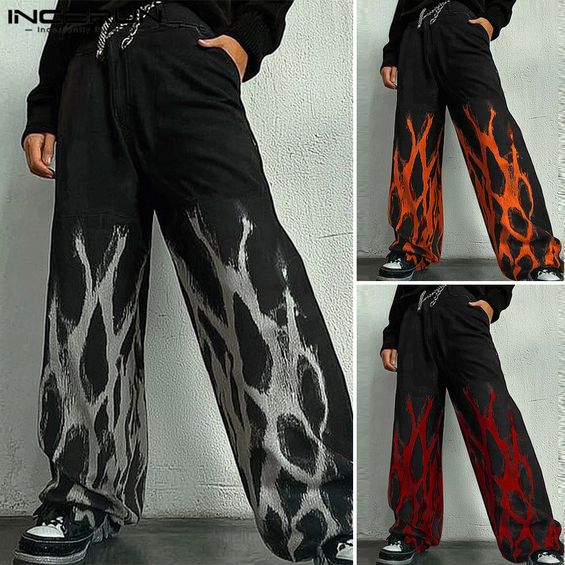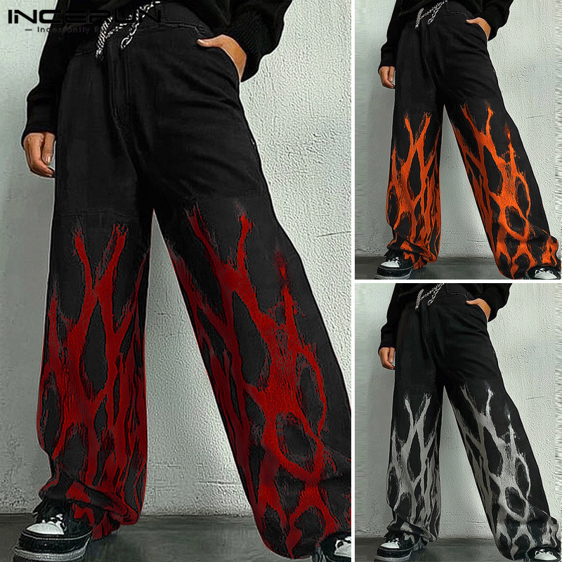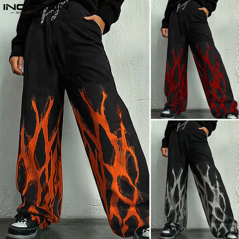 ไม่แน่นอน ผู้ชายวินเทจแฟชั่นพิมพ์หลวมสบายๆส่วนบุคคลกางเกงขายาว