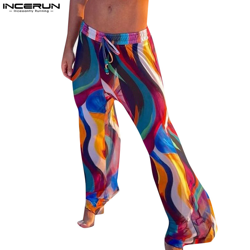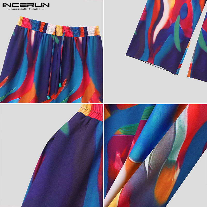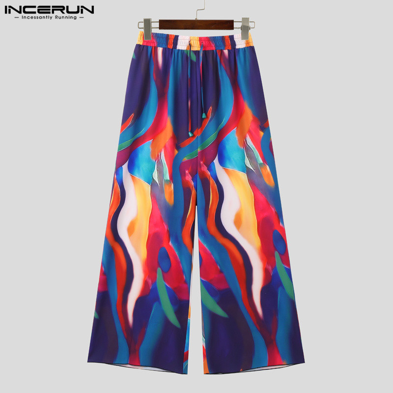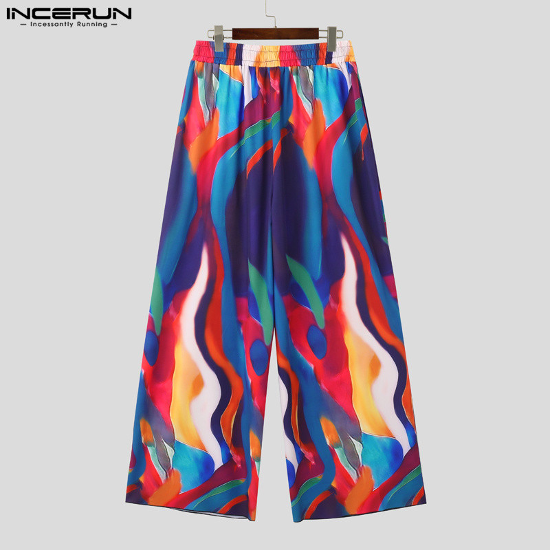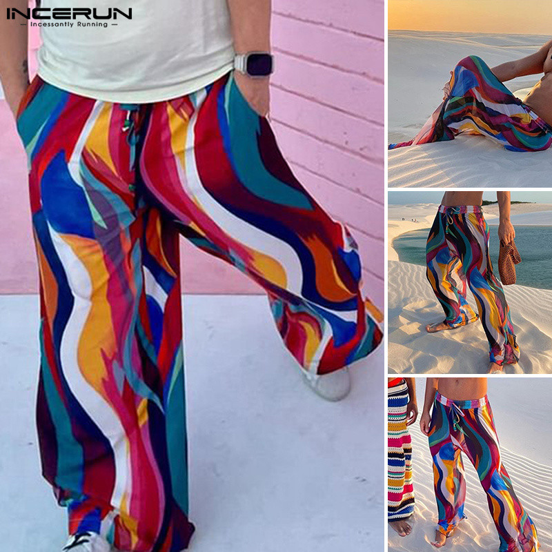 ไม่แน่นอน ผู้ชายวินเทจแฟชั่นที่มีสีสันของเหลวลายหลวมออกแบบกางเกง
