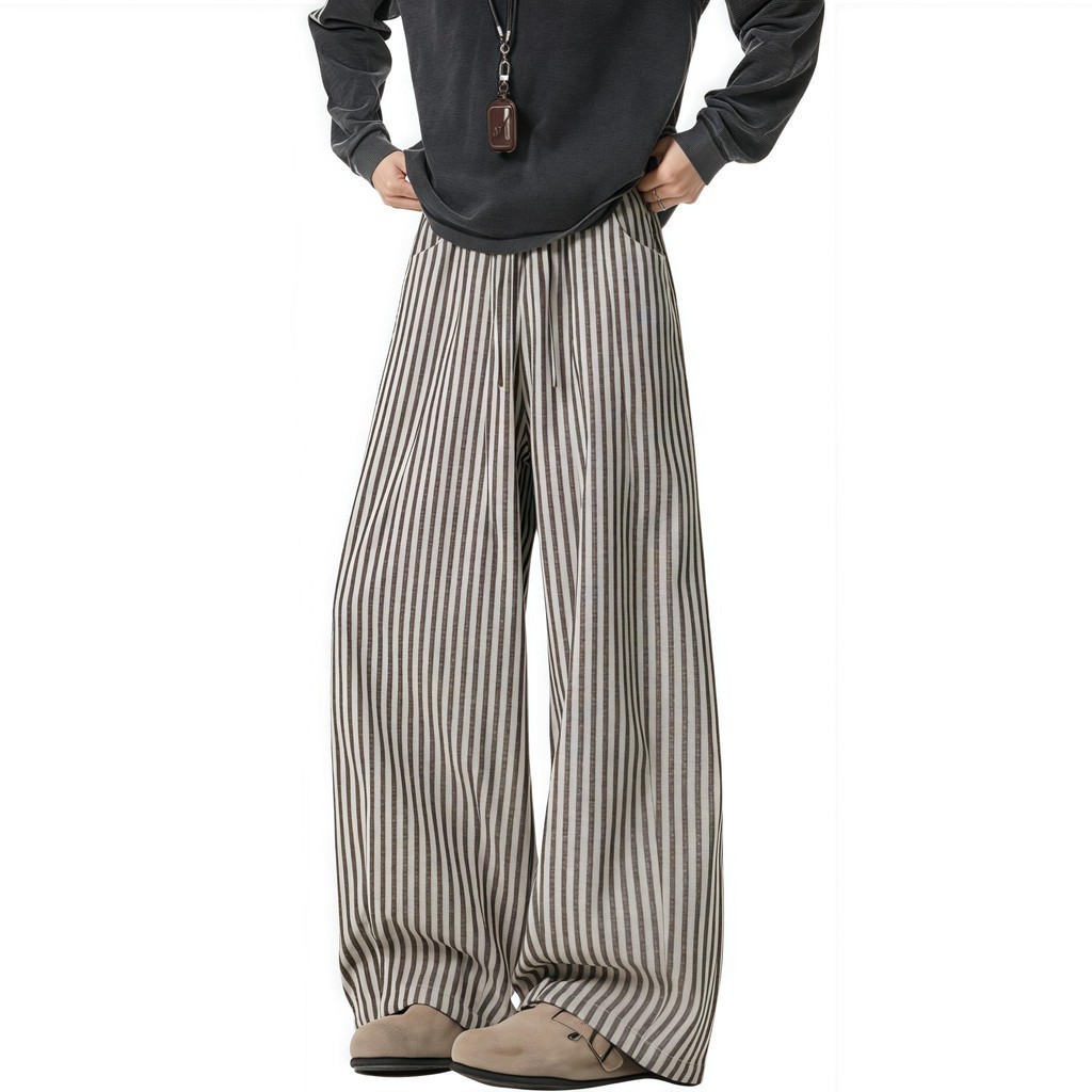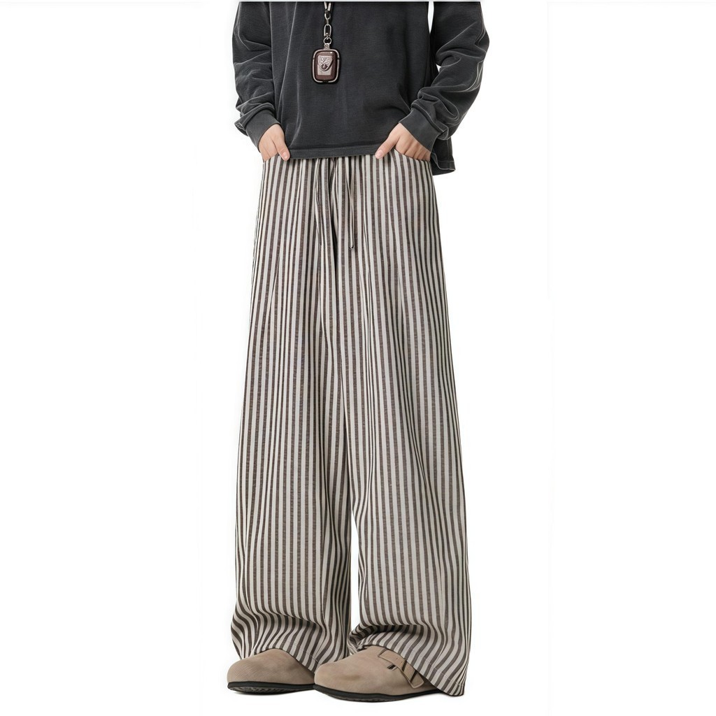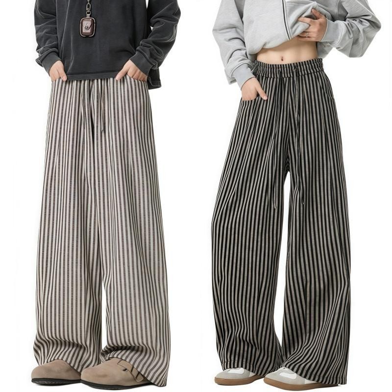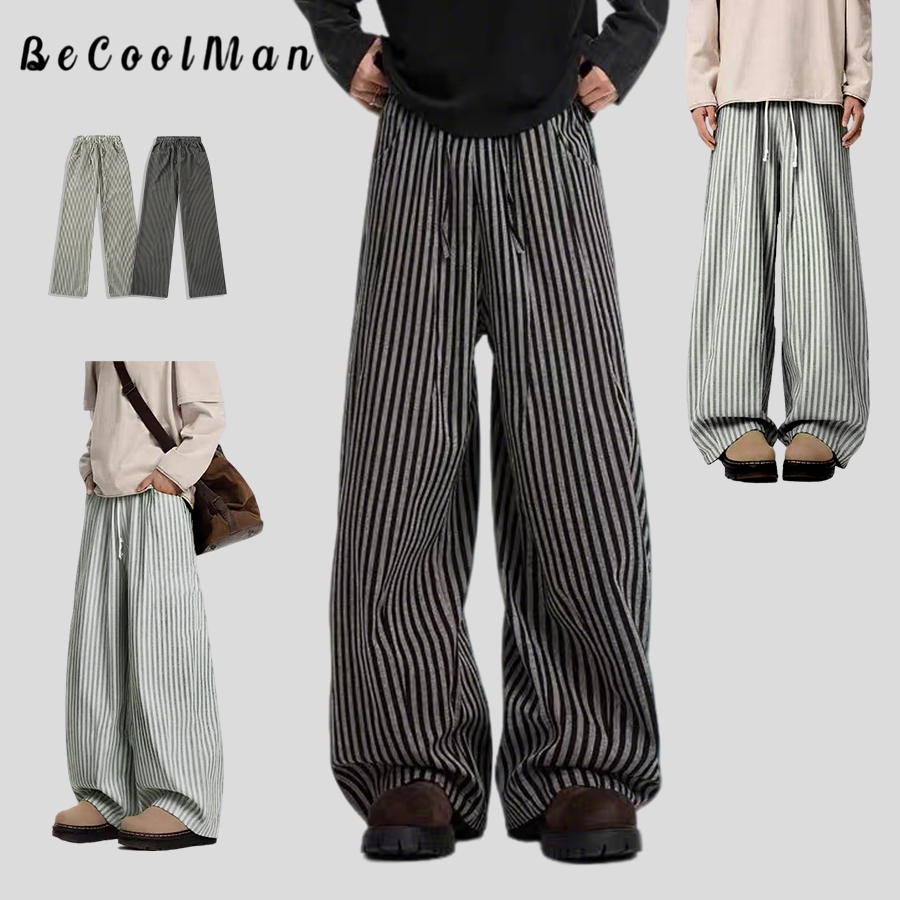 💥BECoolMan💥สไตล์อเมริกัน กางเกงขายาวลายทาง แบรนด์ยอดนิยม กางเกงผู้ชาย แมทช์ลุคง่าย รุ่นคู่รักชายหญิง แบบหลวม ไซส์ใหญ่