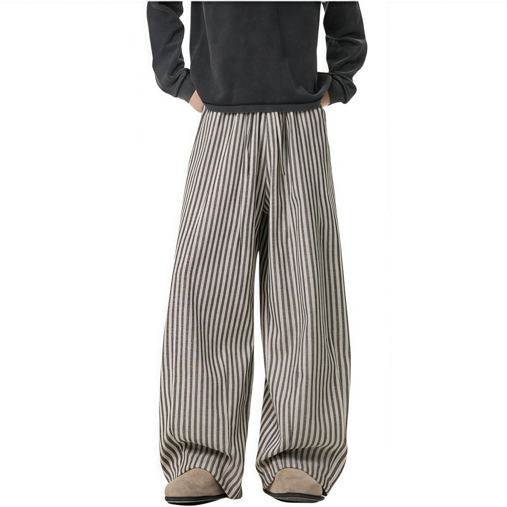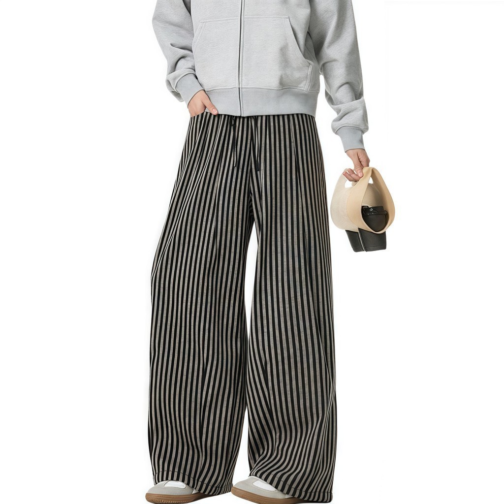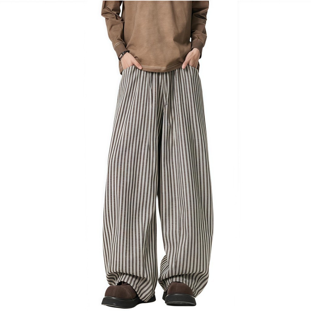 💥BECoolMan💥สไตล์อเมริกัน กางเกงขายาวลายทาง แบรนด์ยอดนิยม กางเกงผู้ชาย แมทช์ลุคง่าย รุ่นคู่รักชายหญิง แบบหลวม ไซส์ใหญ่