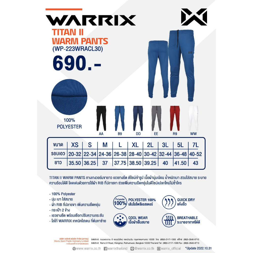💥ลดโหดสูงสุด 1,000 บาท💥 SP กางเกงวอร์มขายาว วอริกซ์ WARRIX รุ่น TITAN II WP-223WRACL30 แท้100%