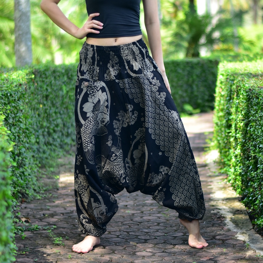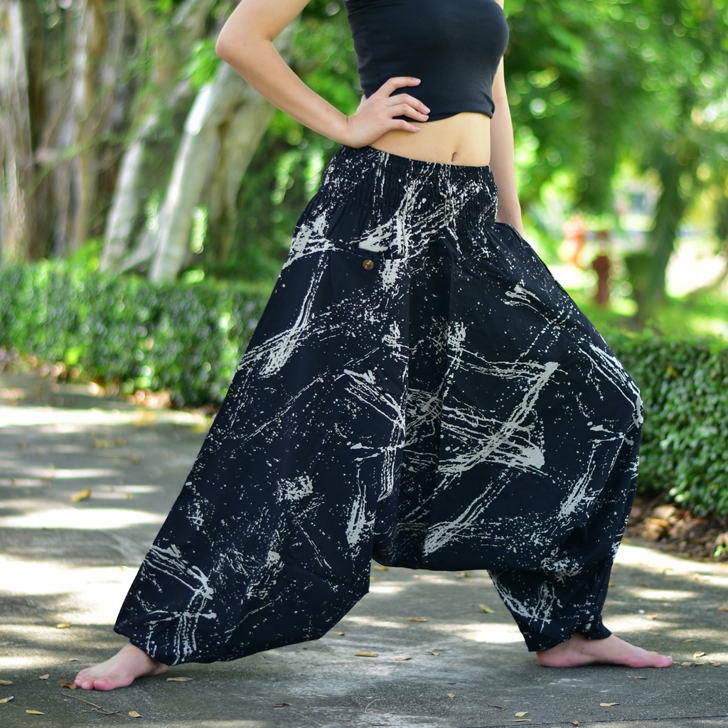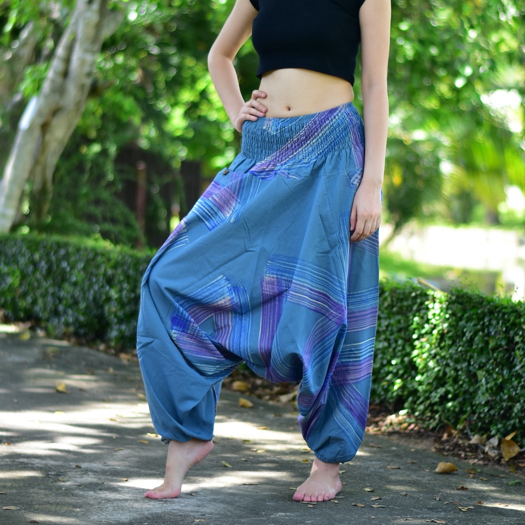 กางเกงขากว้างทรงหลวมลายทางสำหรับผู้ชาย