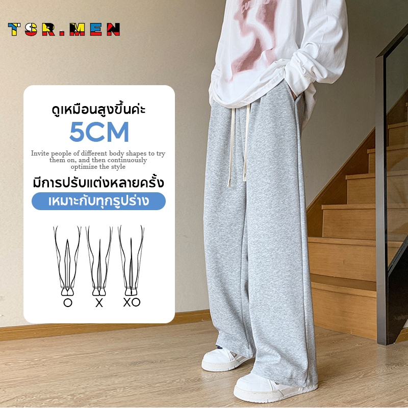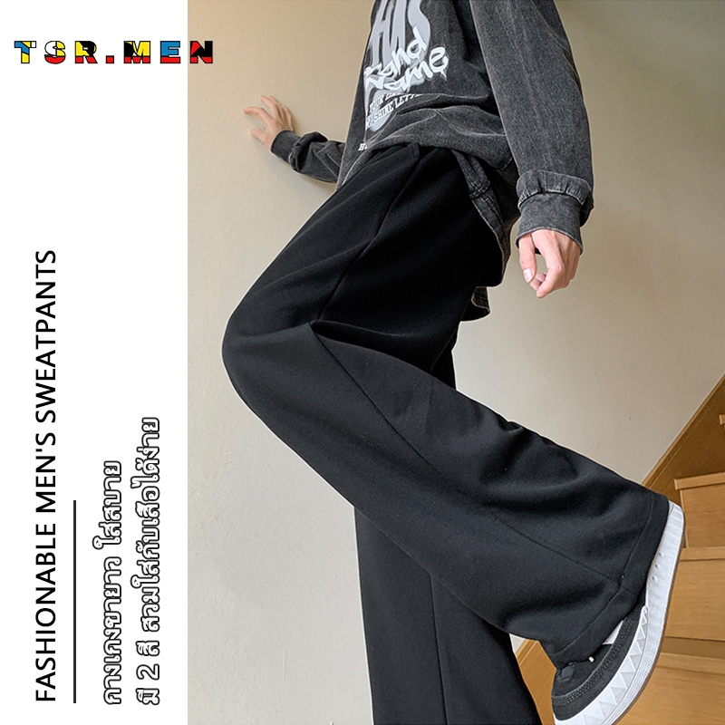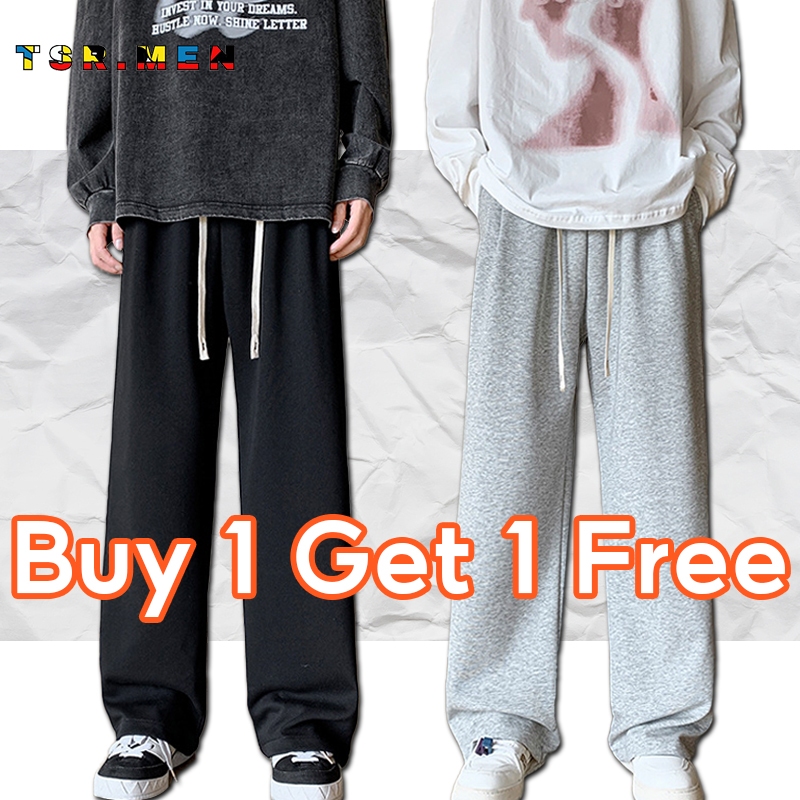 TSR.Men【ซื้อ 1 แถม 1】กางเกงกีฬา เอวยางยืด กางเกงขายาวผู้ชาย ทรงตรง สไตล์ลำลอง ดีไซน์เรียบง่าย สีดำ สีเทา เข้าชุดง่าย ใส่ได้ทั้งชายและหญิง เหมาะสำหรับเล่นกีฬาและเต้นรำ