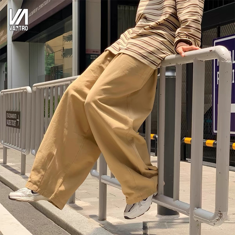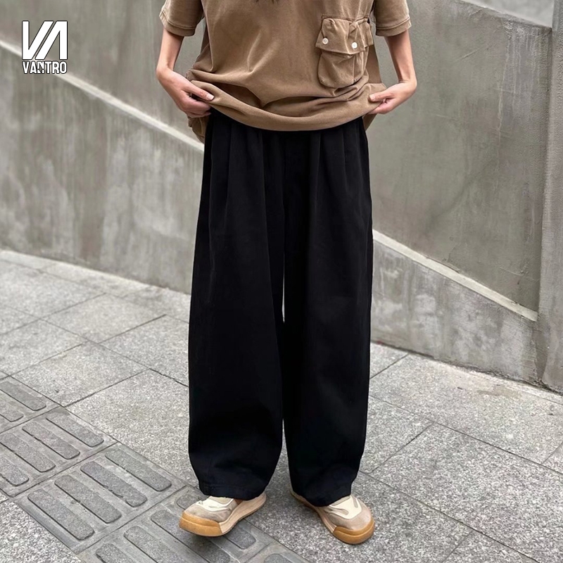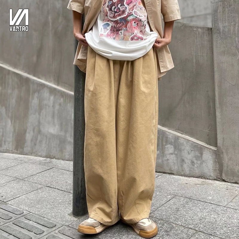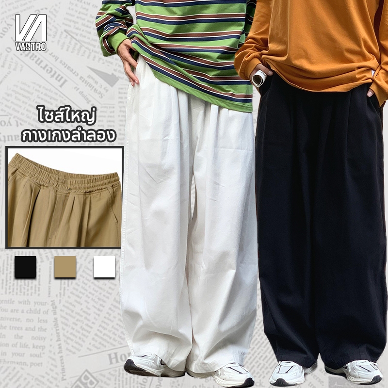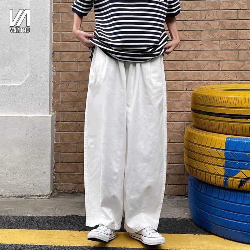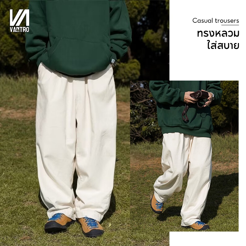 Vantro กางเกงลำลองผู้ชาย ไซส์ใหญ่ เอวยางยืด บาง กางเกงขายาว เทรนด์ญี่ปุ่นย้อนยุค ใส่สบาย อเนกประสงค์ สีขาว สีดำ