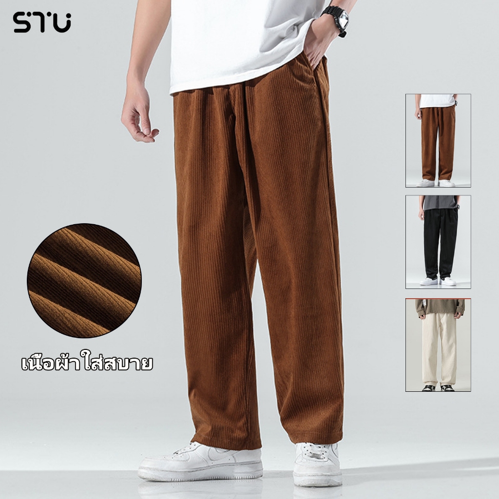 STUกางเกงขายาวผู้ชาย ผ้าลูกฟูกนุ่มสบาย สไตล์ลำลองทันสมัย เหมาะกับทุกรูปแบบขา ขนาด M-3XL 🚚จัดส่งในกรุงเทพฯ