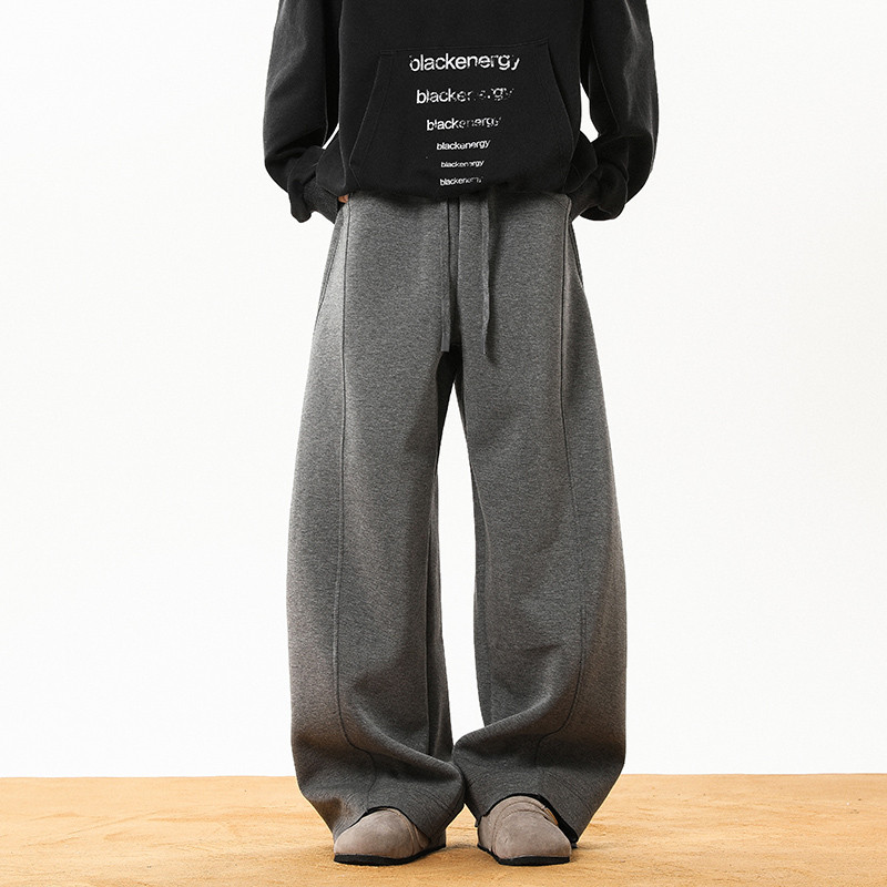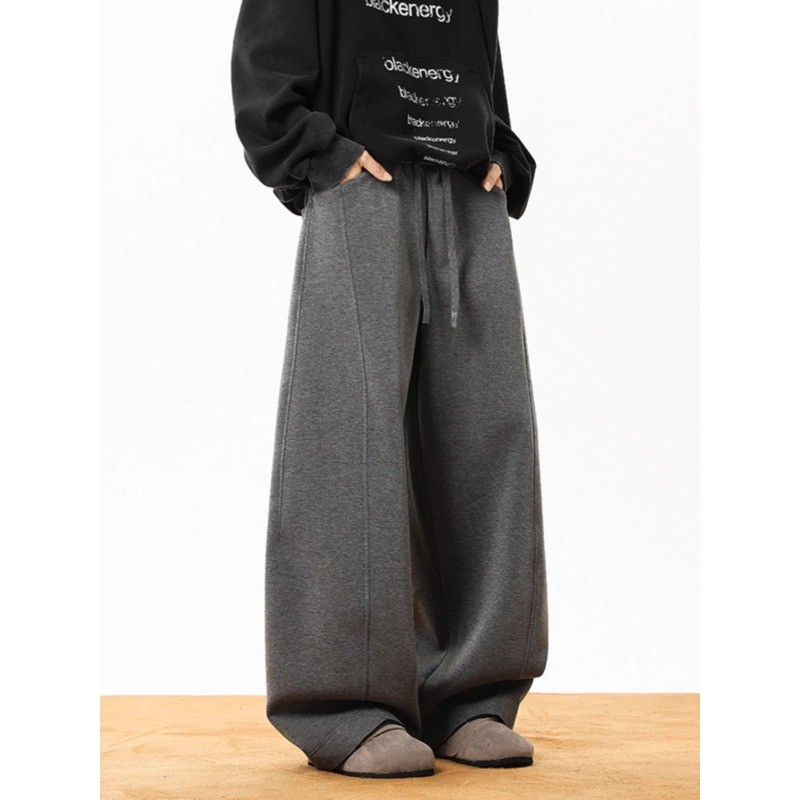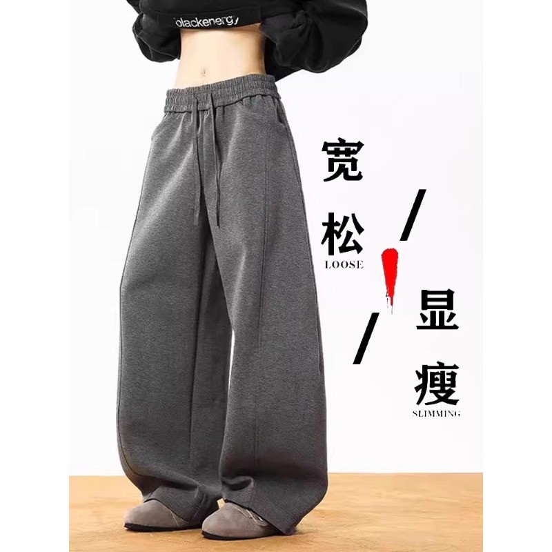 SUIKONE ซุยโคเนะ กางเกงขายาวพระจันทร์เสี้ยวสีทึบสําหรับผู้ชายและผู้หญิงฤดูใบไม้ร่วงและฤดูหนาวกางเกงขากว้างตรงแบบอเมริกัน