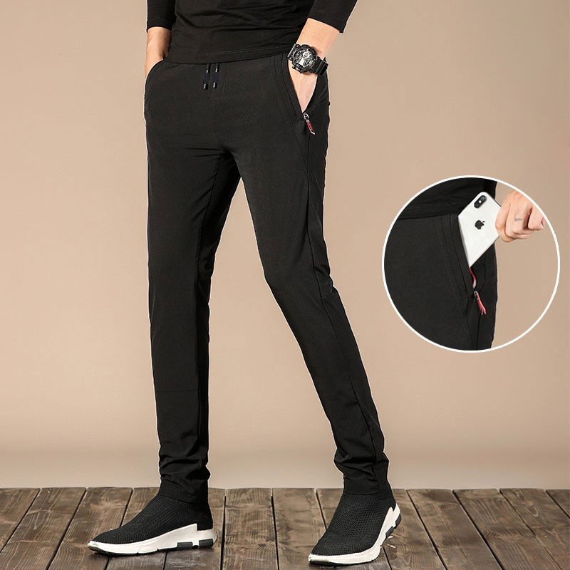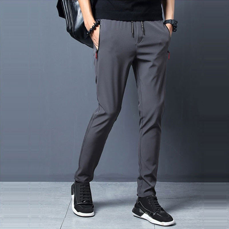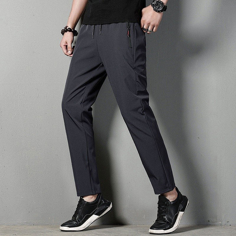 กระเป๋าซิป: กางเกงของผู้ชายฤดูร้อน กางเกงของเยาวชนที่แฟชั่น แบบผูกเชือก กางเกงของไหมน้ำแข็งที่ระบายอากาศได้ง่าย