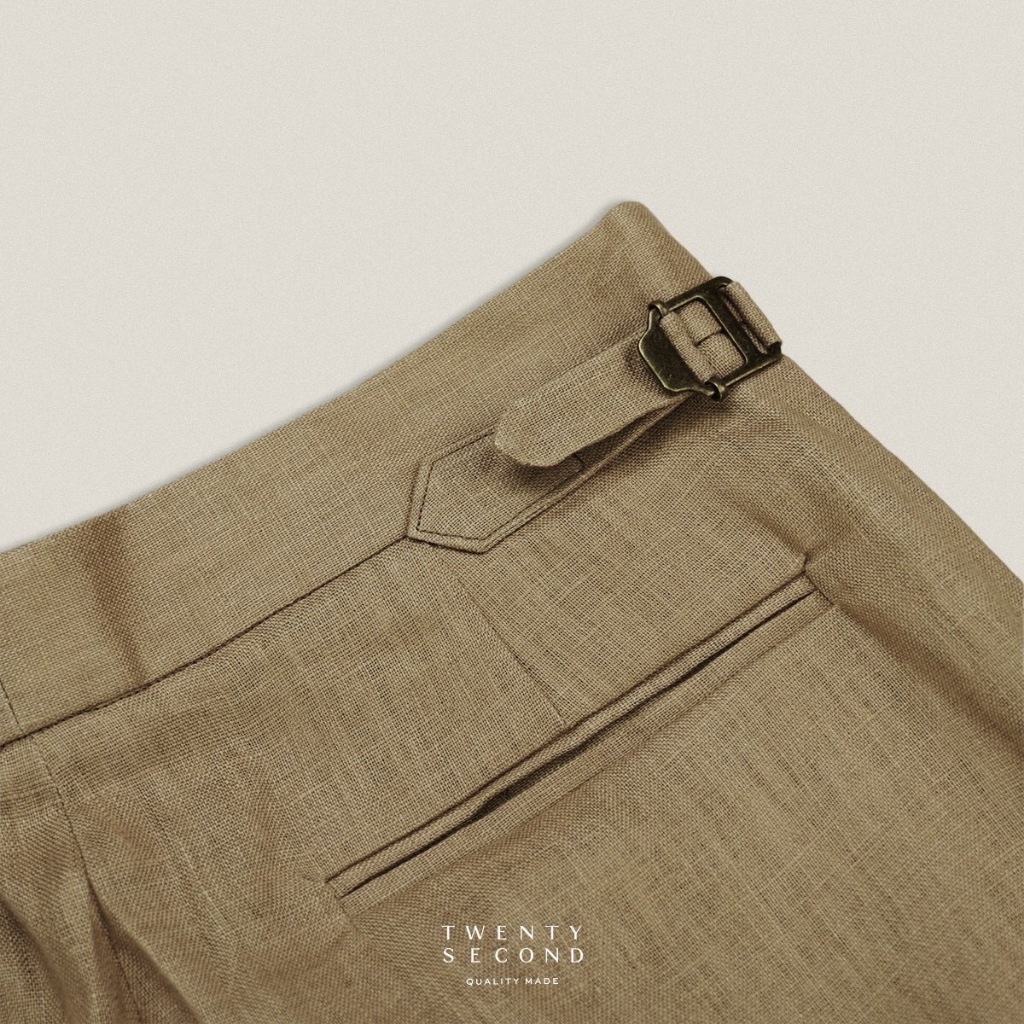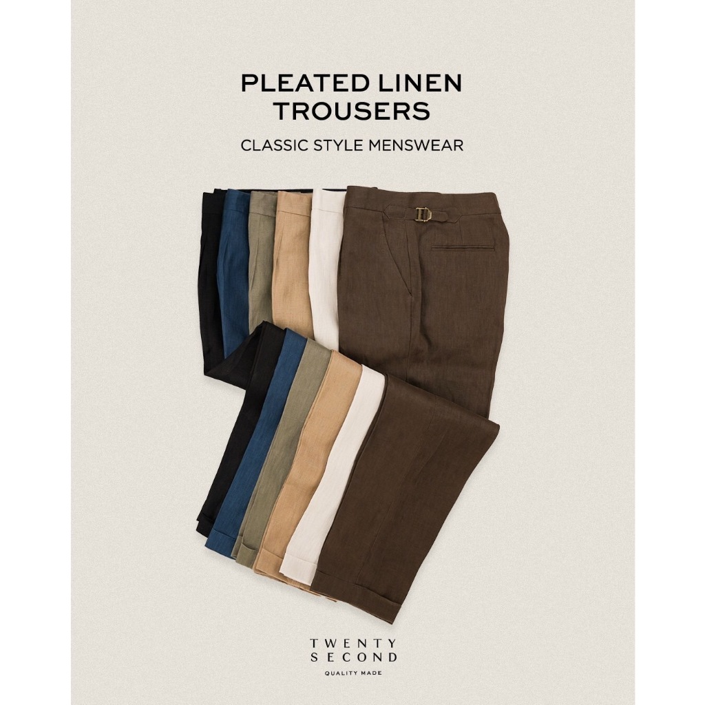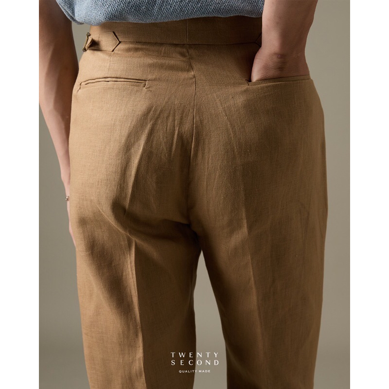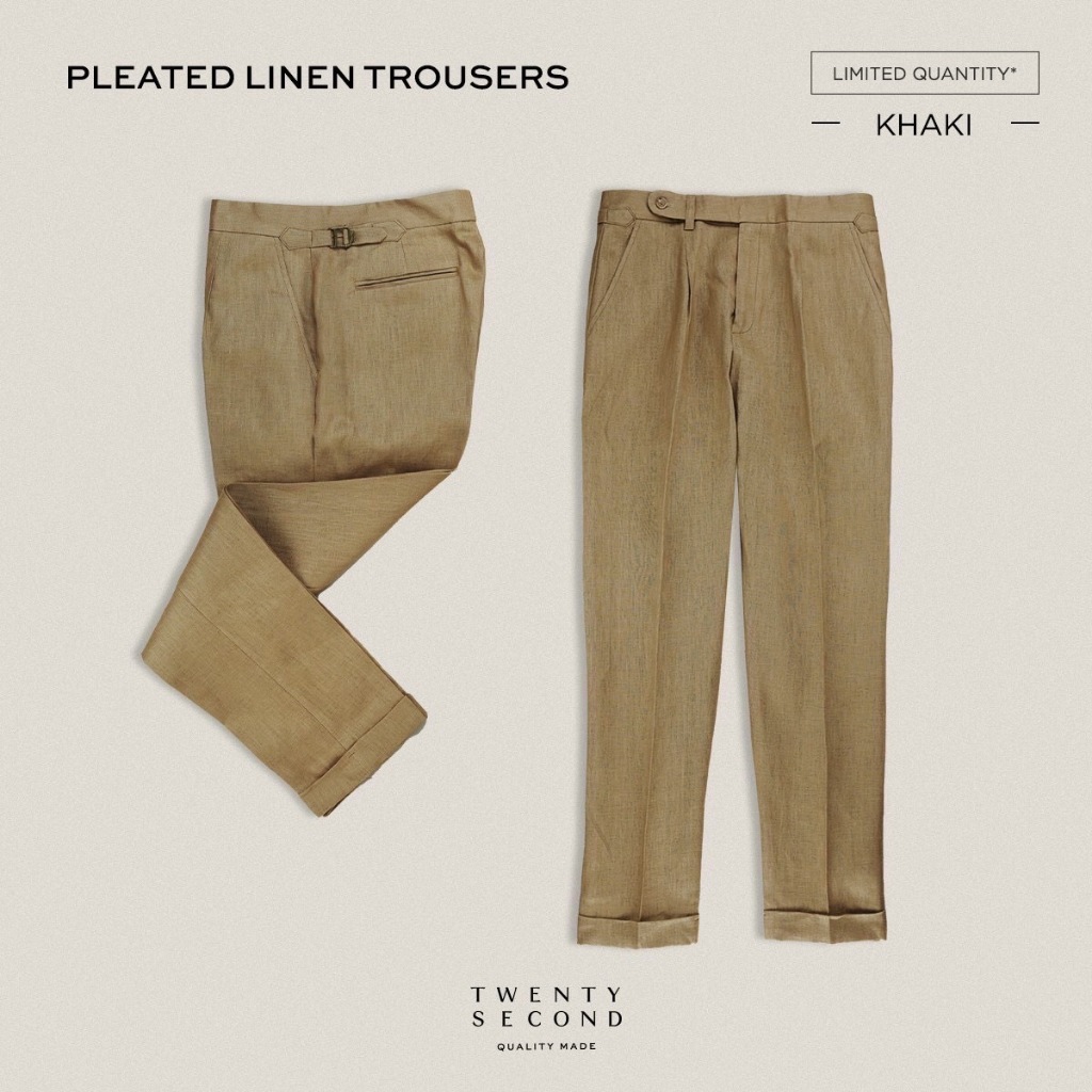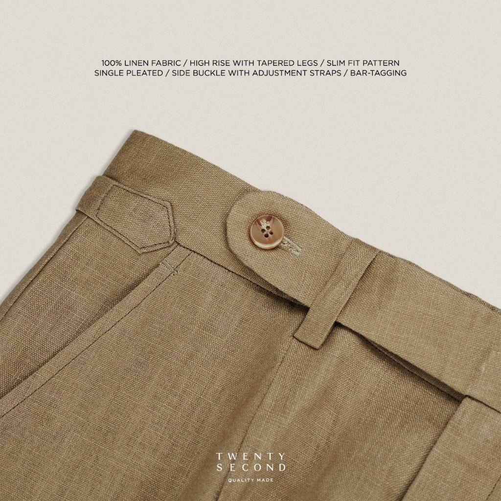 TWENTYSECOND กางเกงขายาว ผ้าลินิน ทรงเอวสูง รุ่น Pleated Linen Trousers – กากี / Khaki