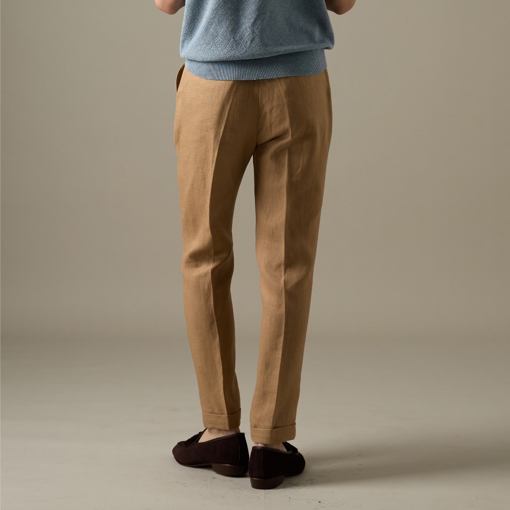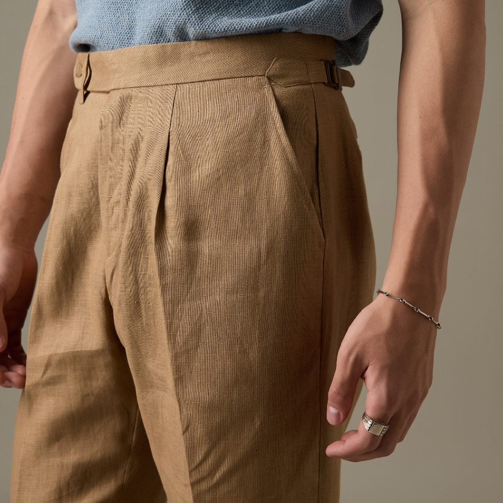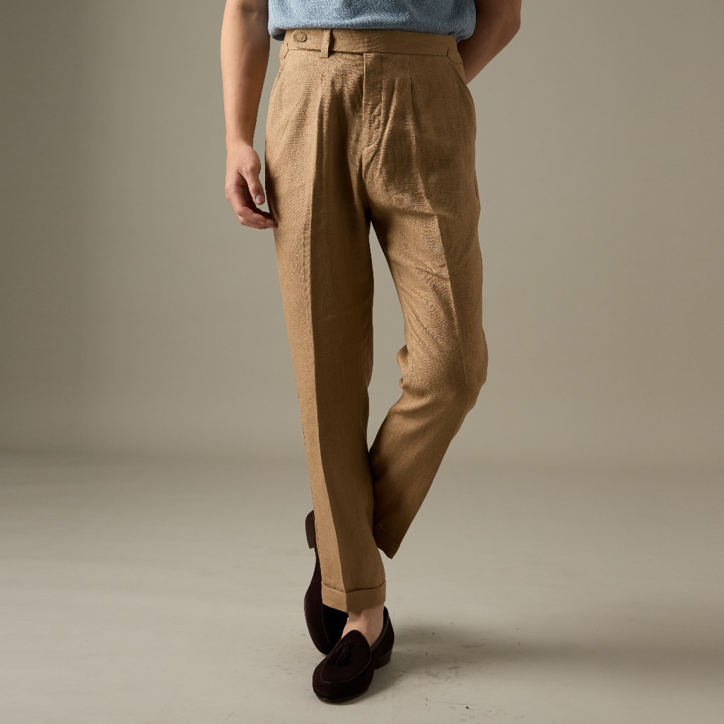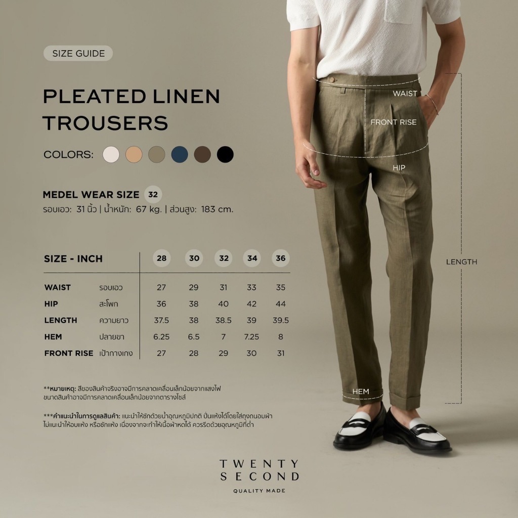 TWENTYSECOND กางเกงขายาว ผ้าลินิน ทรงเอวสูง รุ่น Pleated Linen Trousers – กากี / Khaki