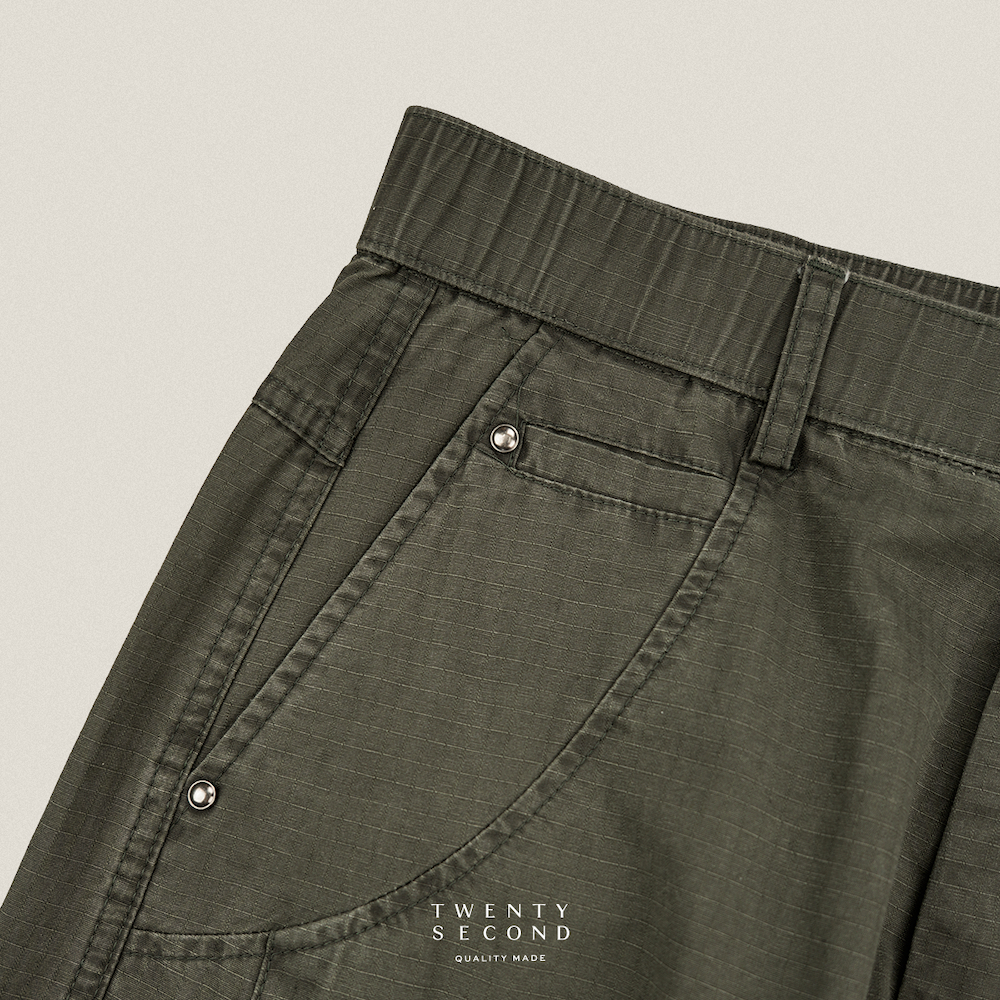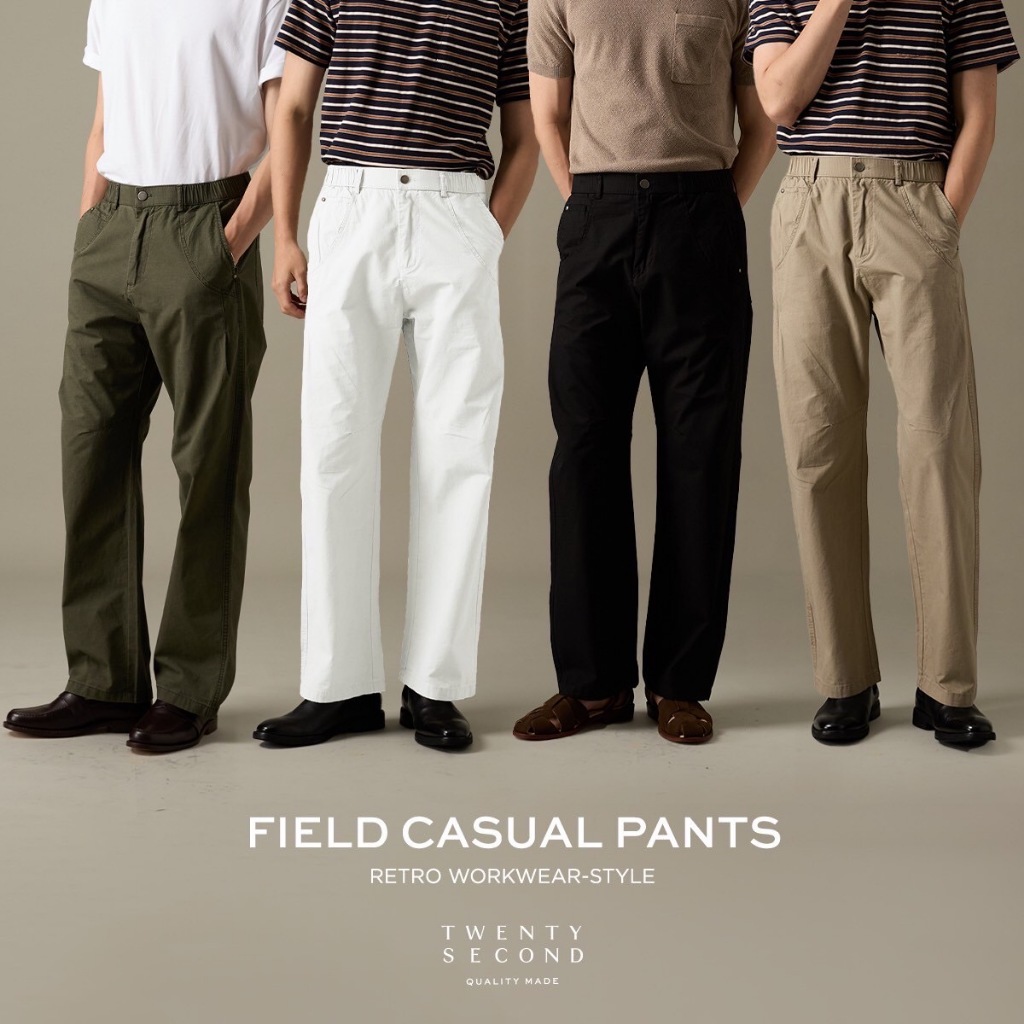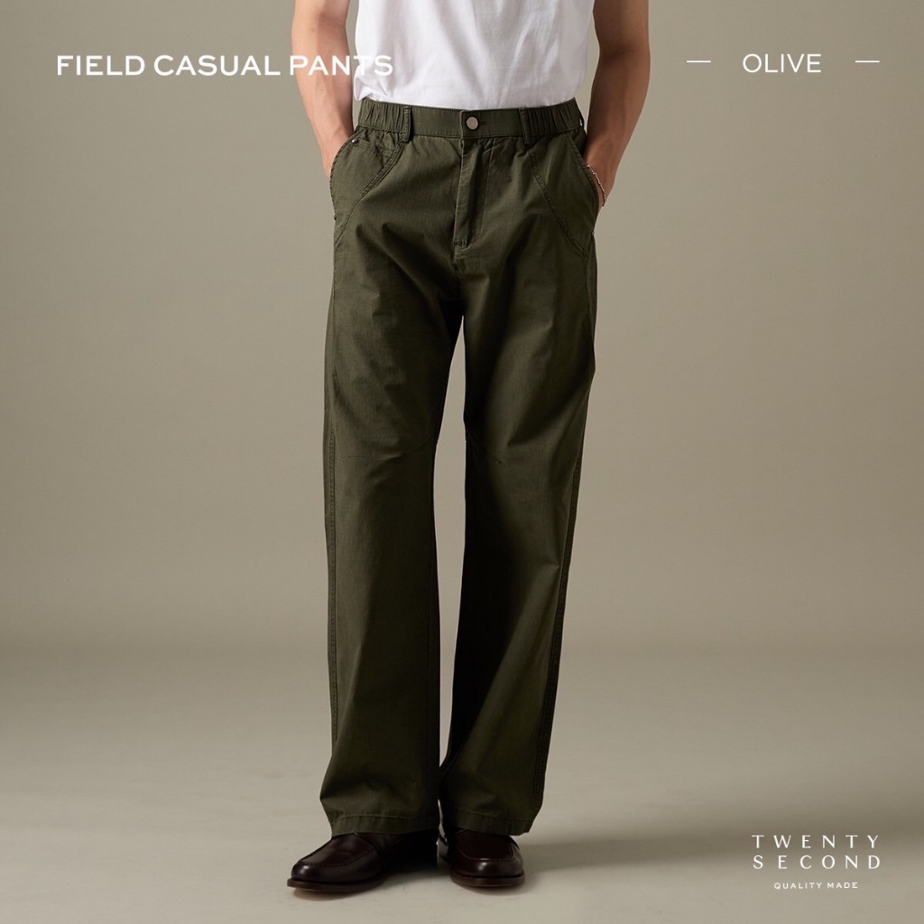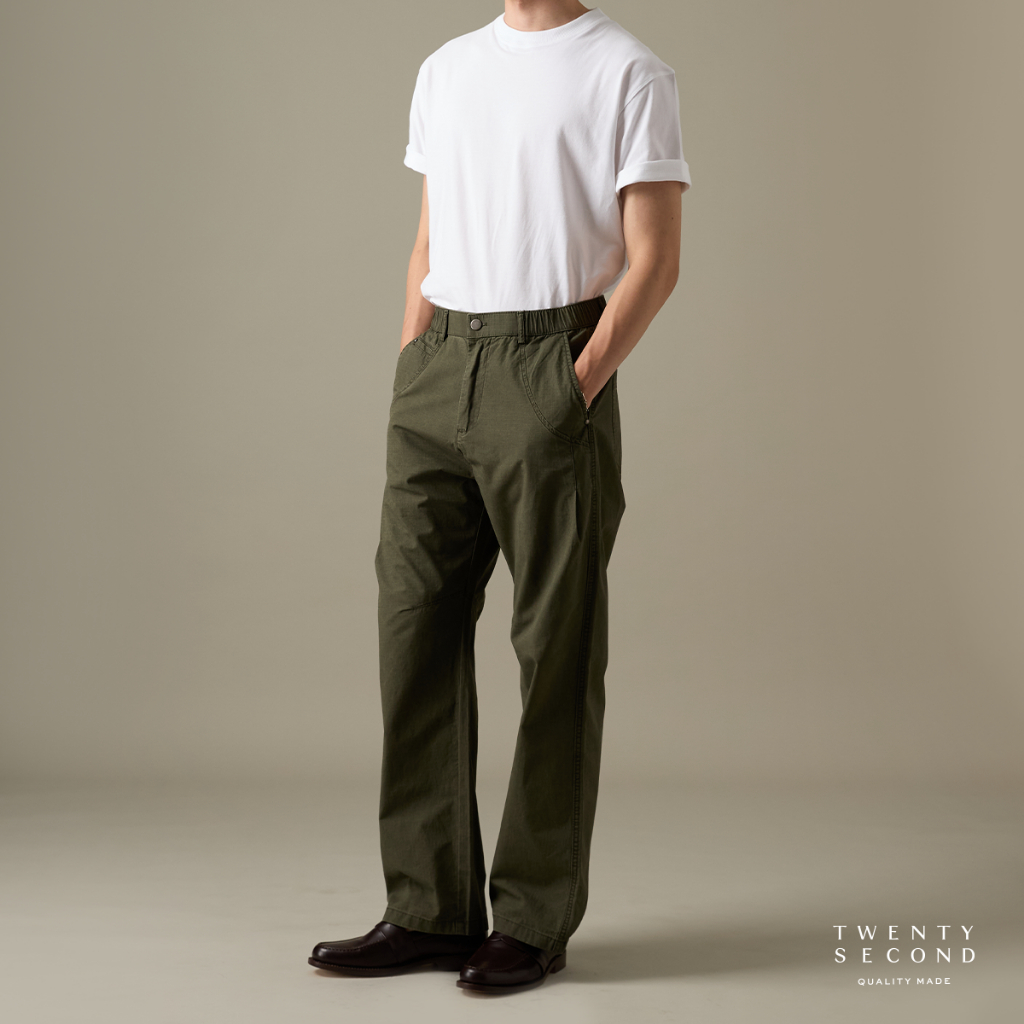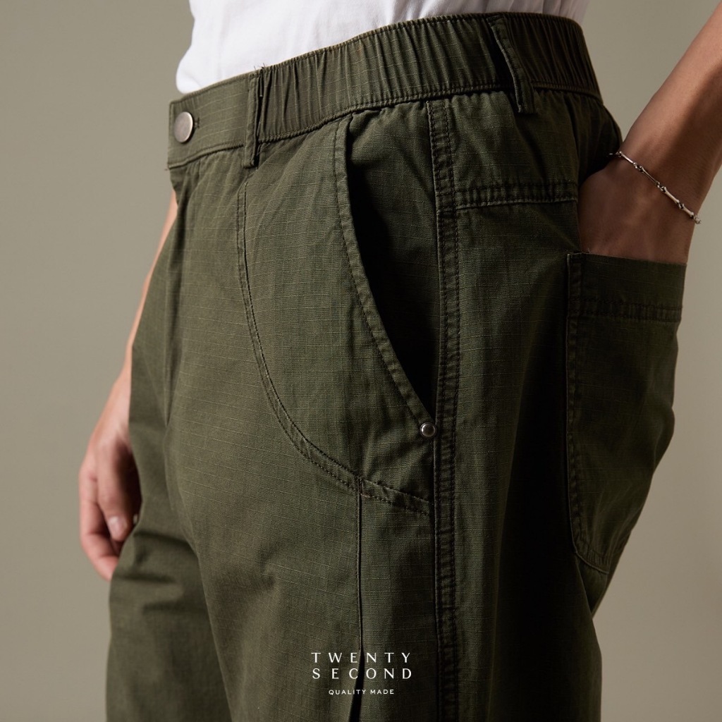 TWENTYSECOND กางเกงขายาว ผ้าคอตต้อน Ripstop ทรงกระบอกใหญ่ รุ่น Field Casual Pants – เขียว / Olive