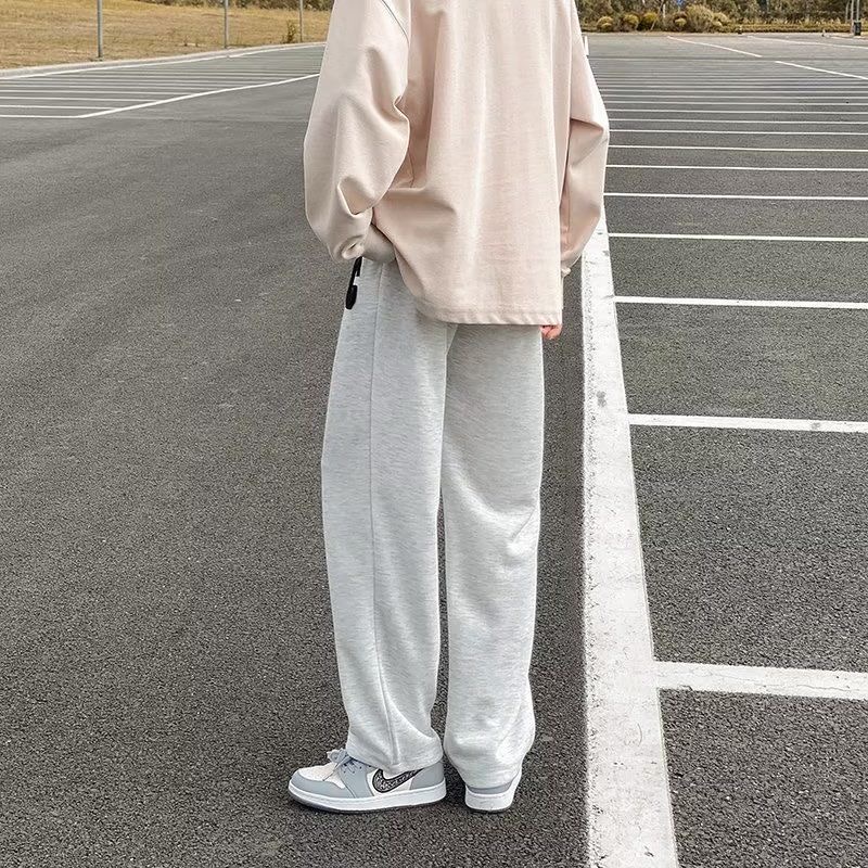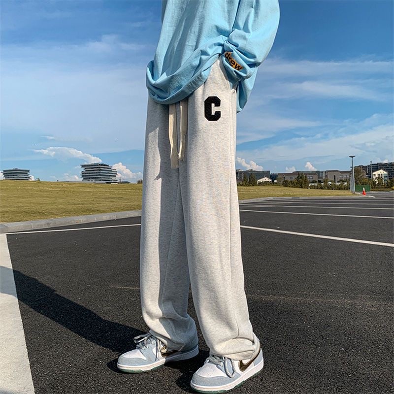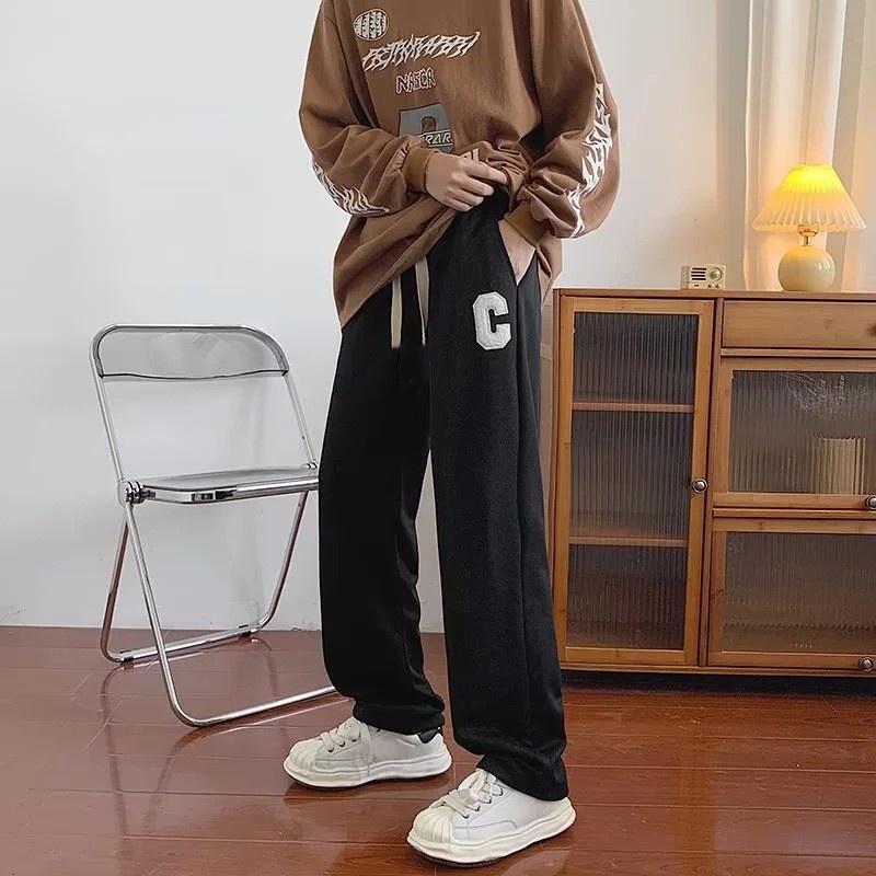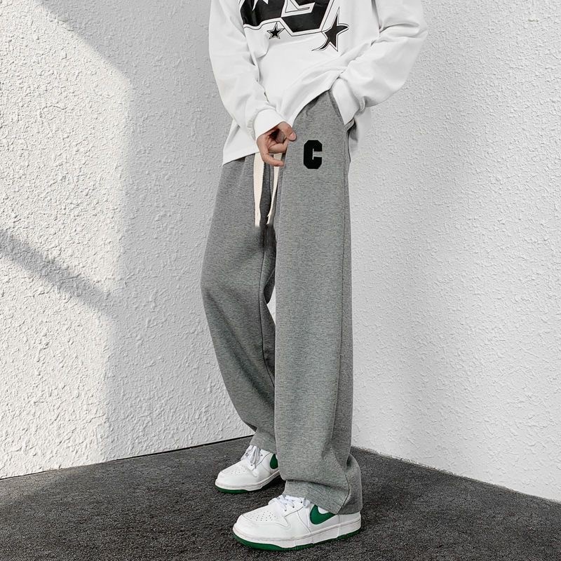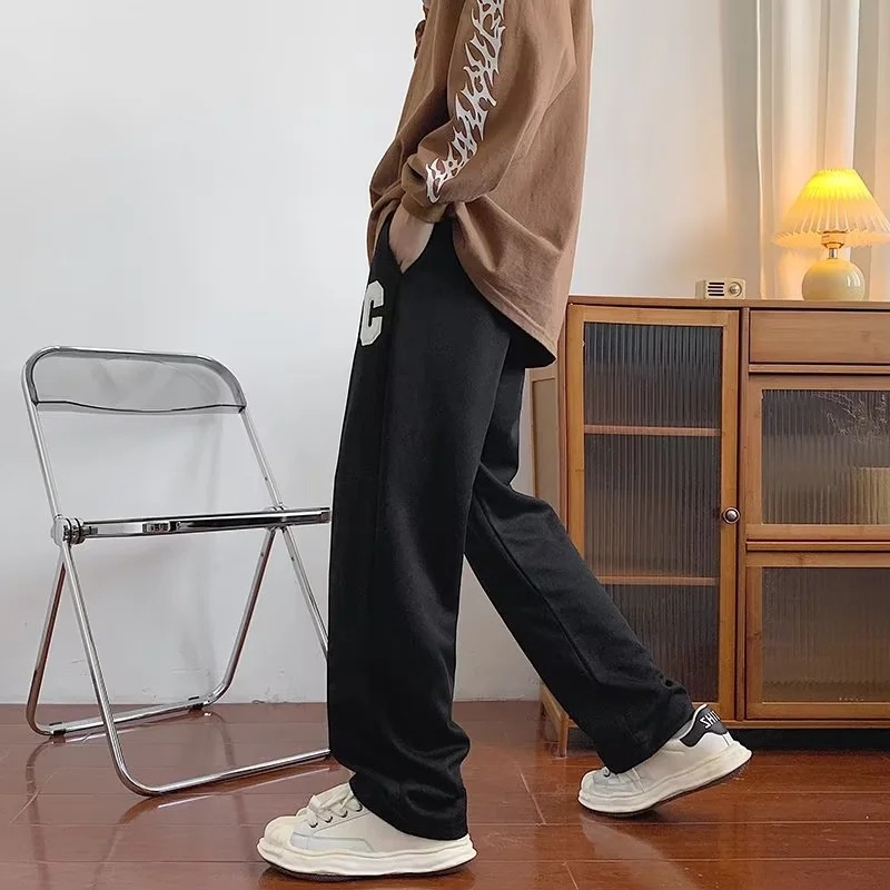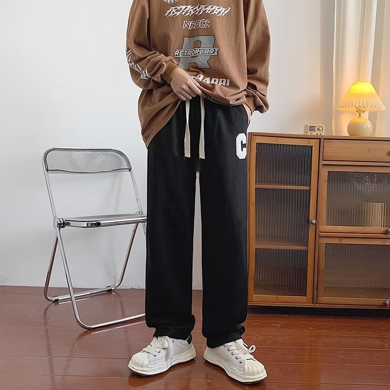 กางเกงขายาวผู้ชาย เอวยางยืด ปักตัวอักษร ขาตรง สไตล์เกาหลี ทรงหลวม กีฬา กางเกงลำลอง