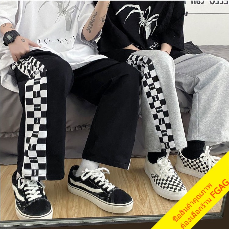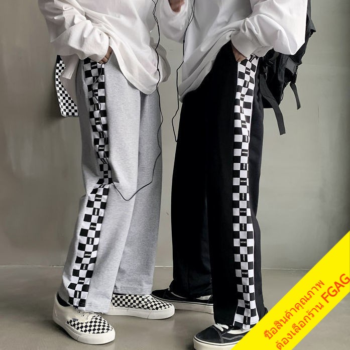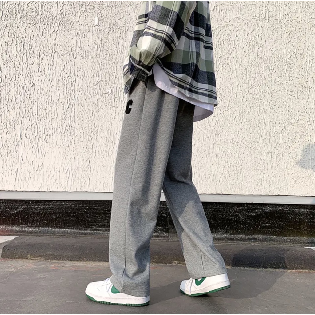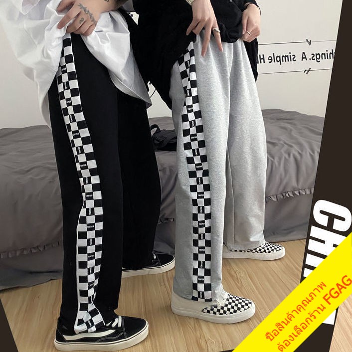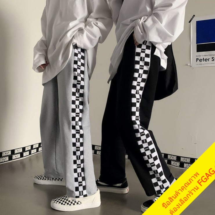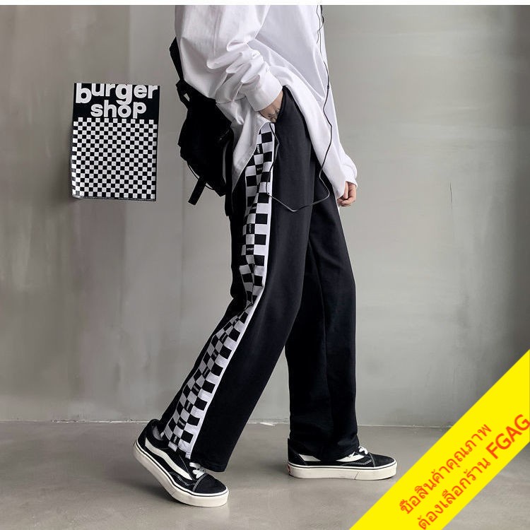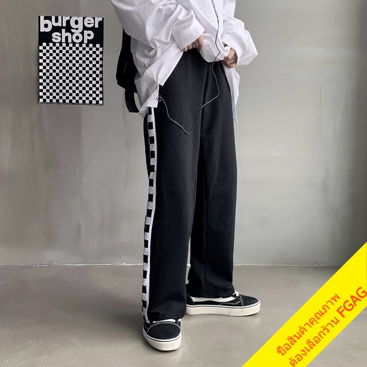 กางเกงขายาวผู้ชาย เอวยางยืด ปักตัวอักษร ขาตรง สไตล์เกาหลี ทรงหลวม กีฬา กางเกงลำลอง