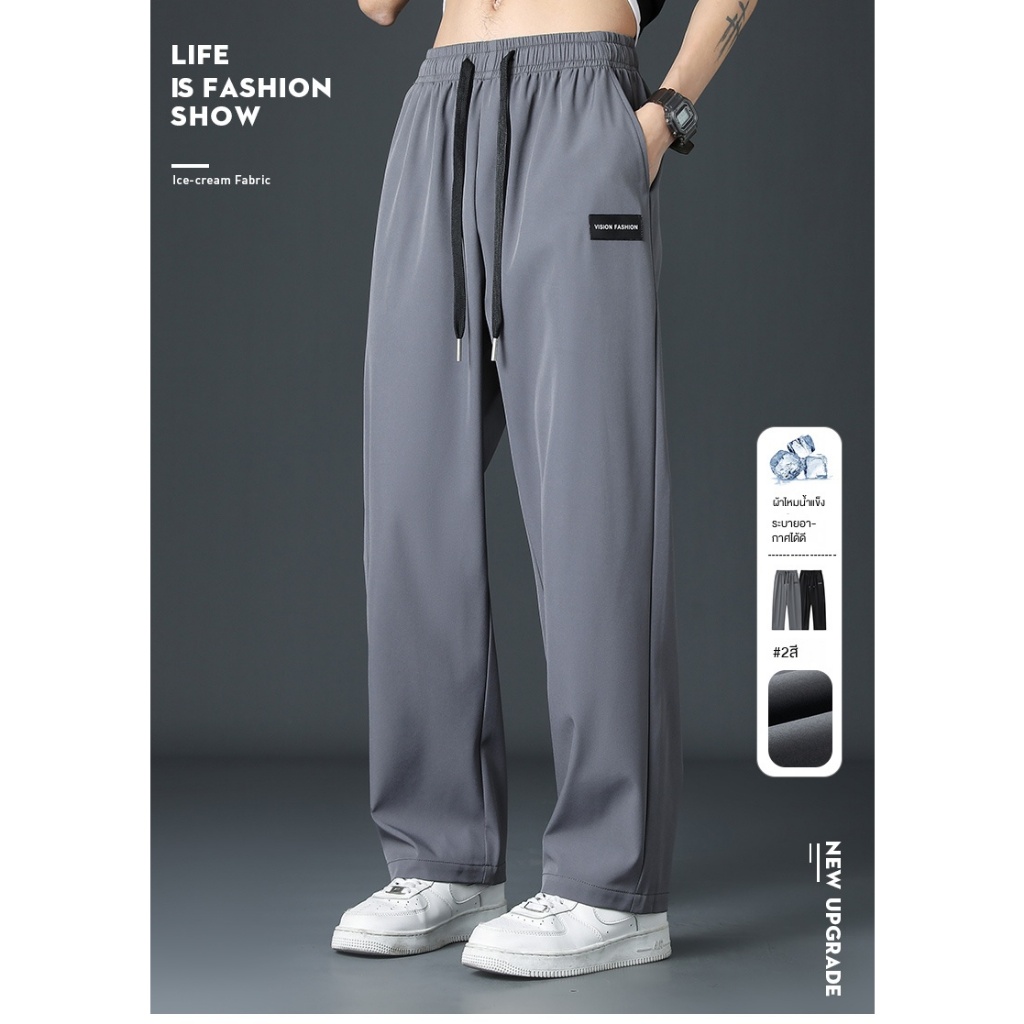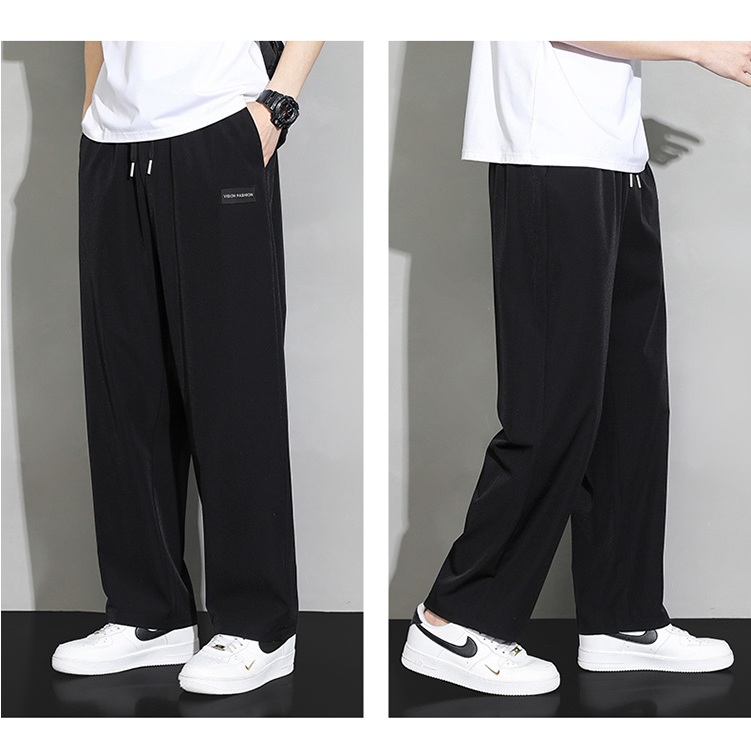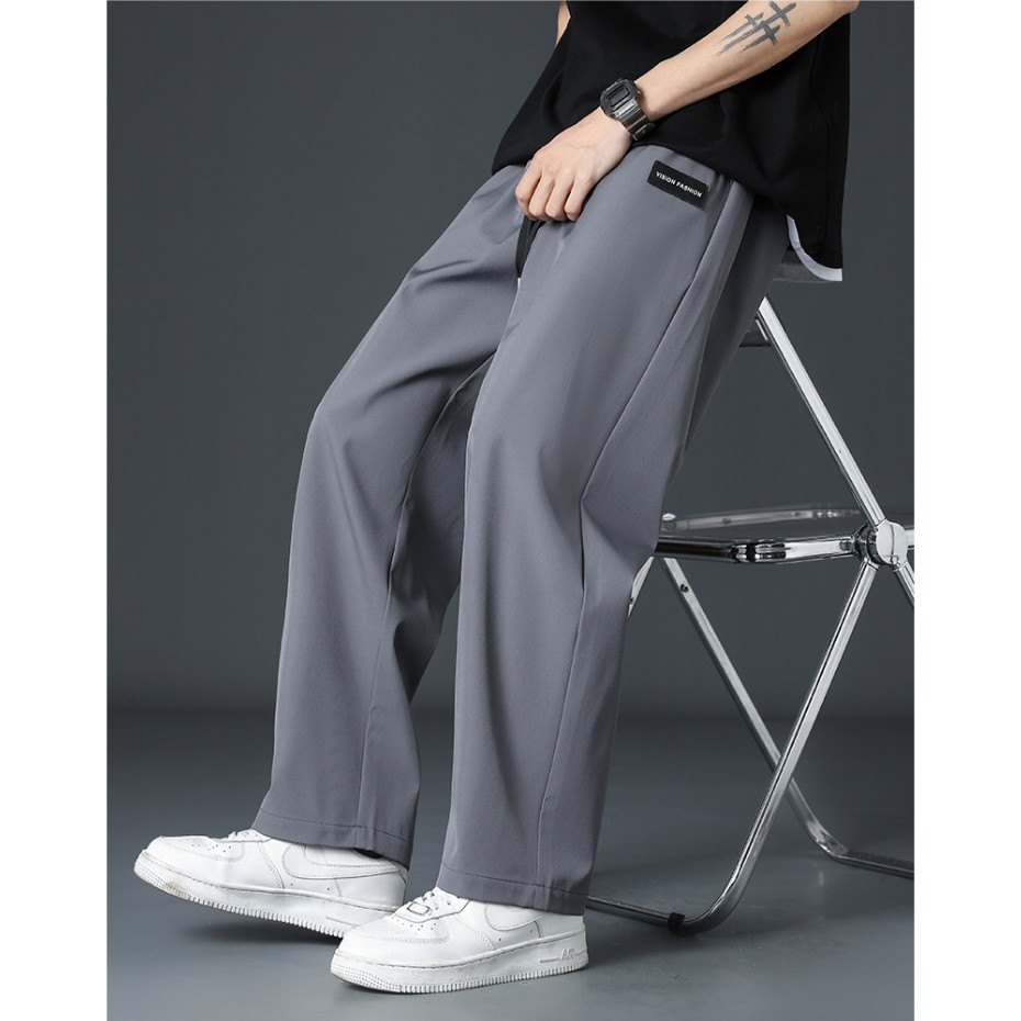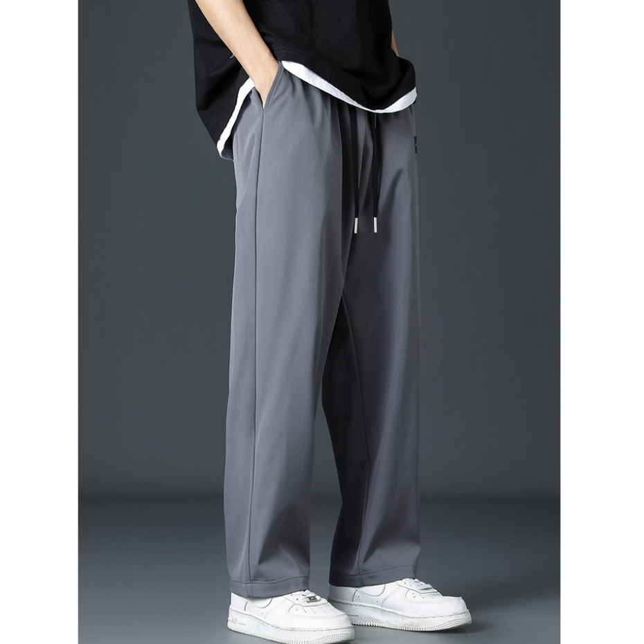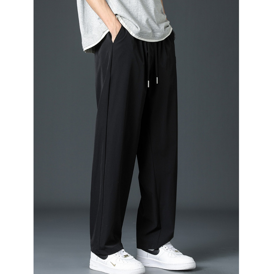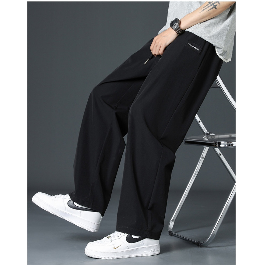 กางเกงขายาวผู้ชาย รุ่นบาง ฤดูร้อน กระบอกตรง หลวม เอวยางยืด แฟชั่นเกาหลี กางเกงผู้ชาย M-5XL