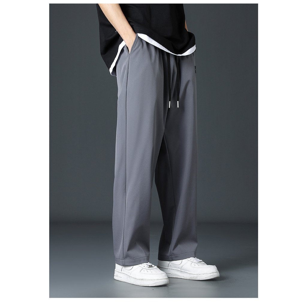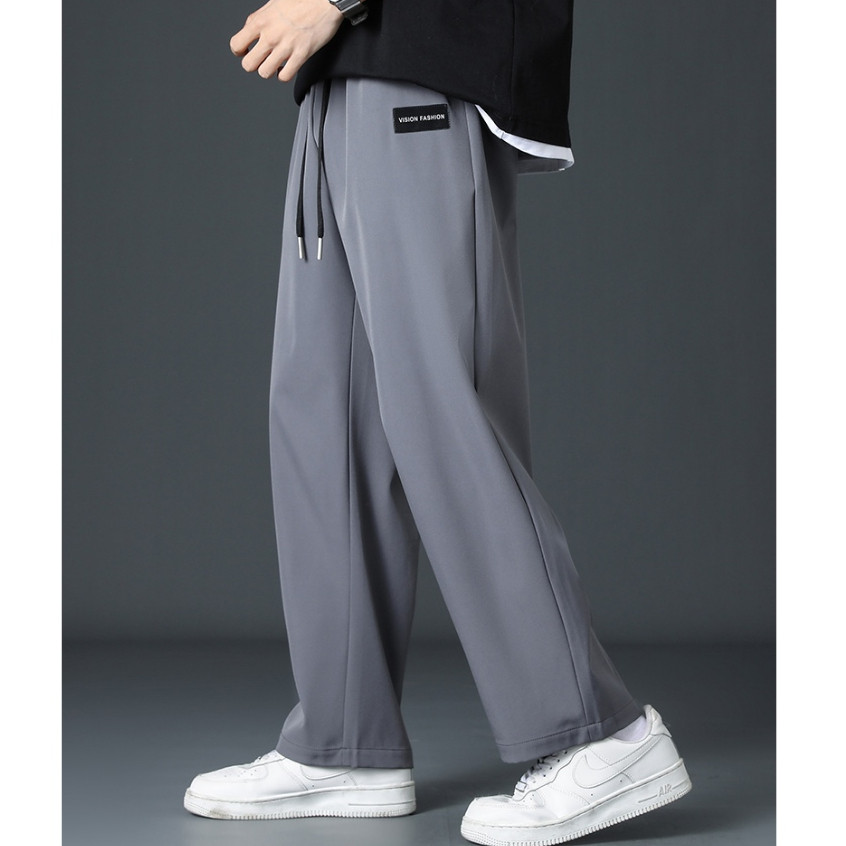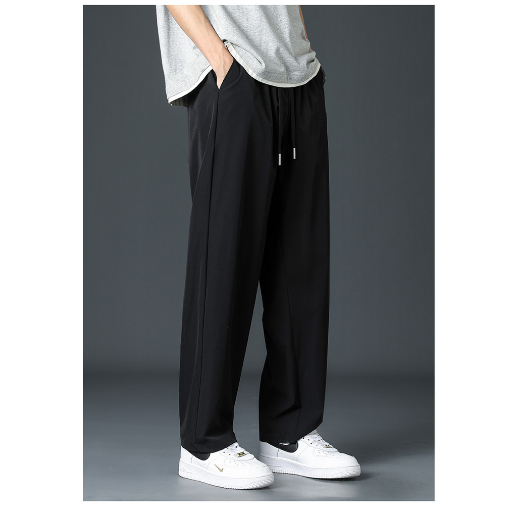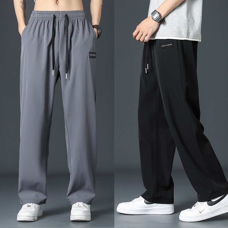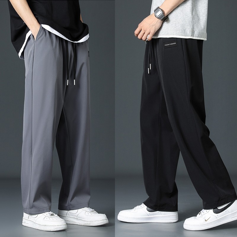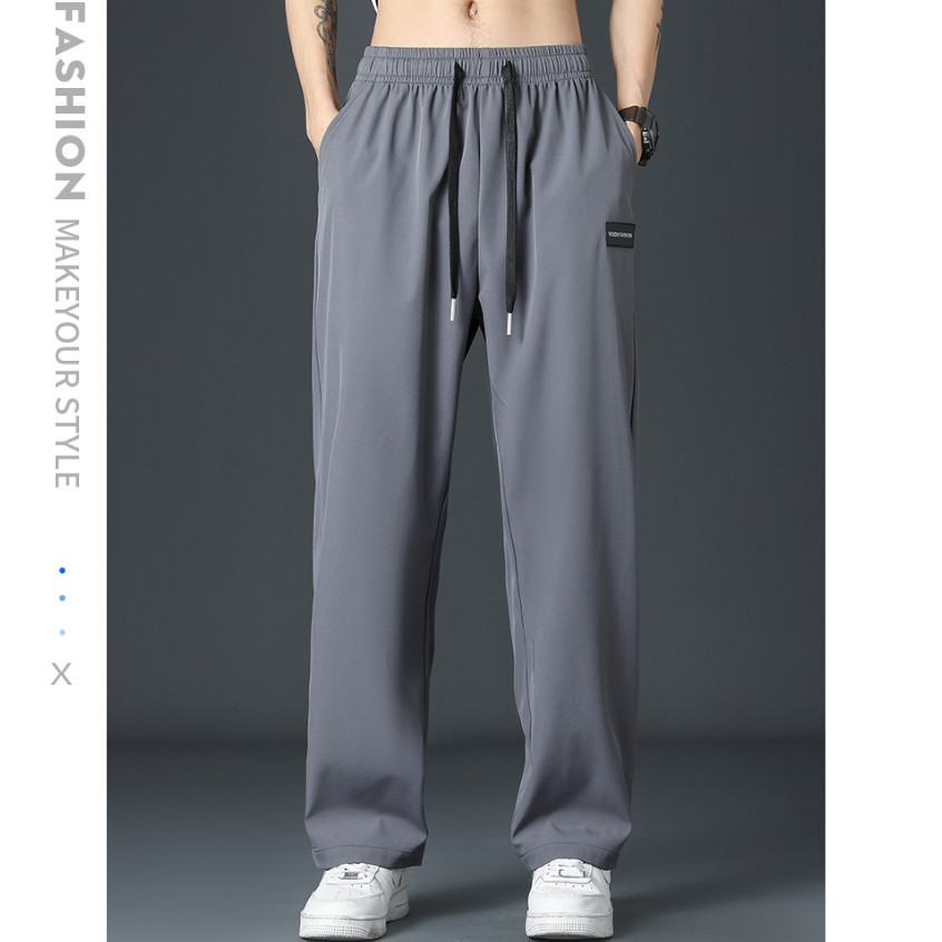กางเกงขายาวผู้ชาย รุ่นบาง ฤดูร้อน กระบอกตรง หลวม เอวยางยืด แฟชั่นเกาหลี กางเกงผู้ชาย M-5XL