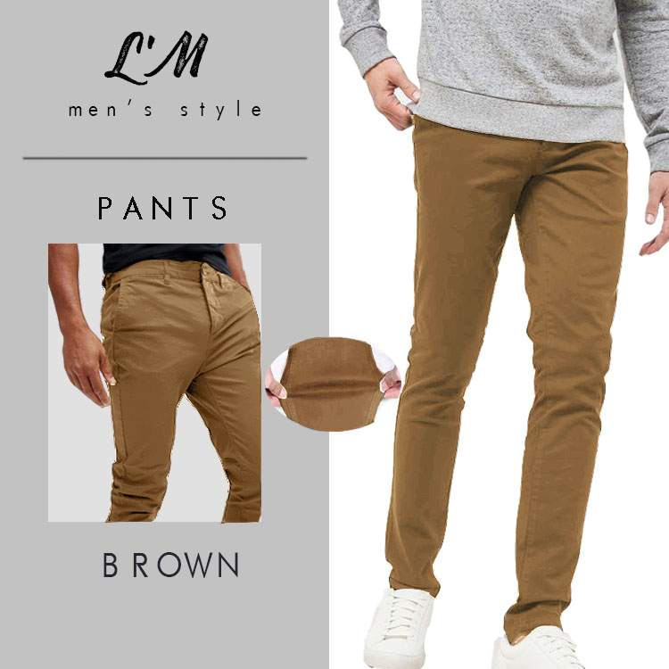กางเกงขายาว ของผู้ชายกระบอกเล็กผ้ายืดซักสีไม่ตกเนื้อผ้านุ่มยืดใส่สบายเป้าซิป