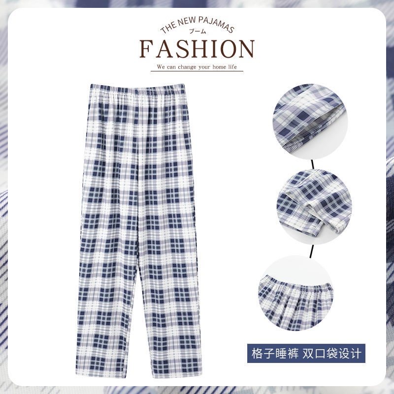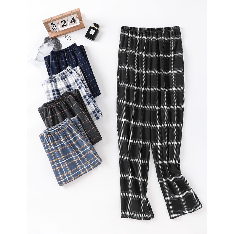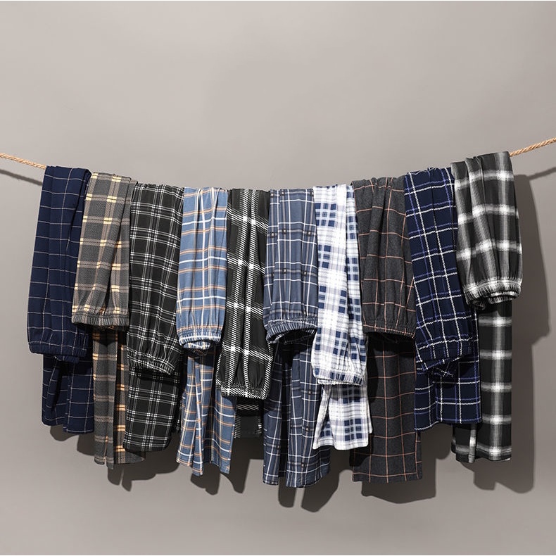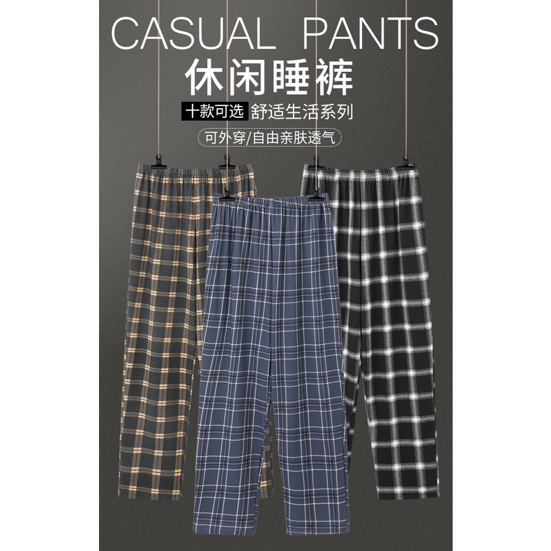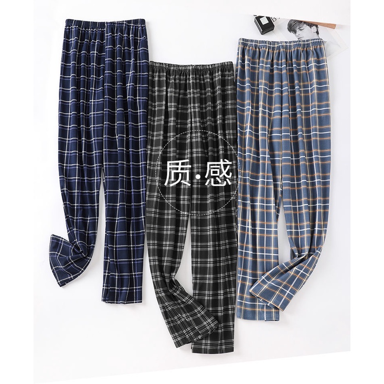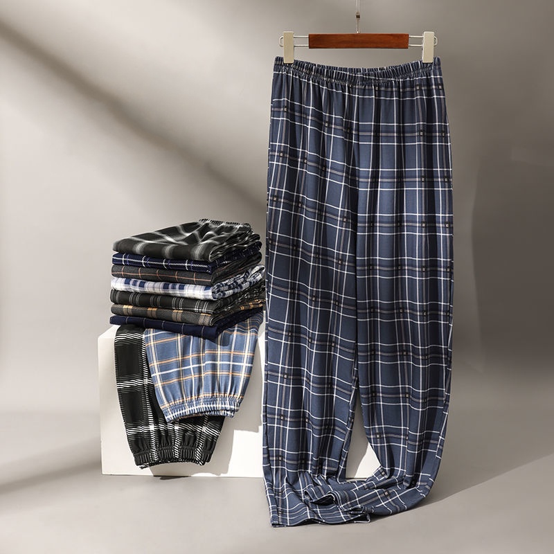กางเกงนอนขายาว ผ้าฝ้าย 100% ลายสก๊อต ทรงหลวม พลัสไซซ์ สไตล์เกาหลี สําหรับผู้ชาย 50-130 กก. ไซซ์ L-5XL