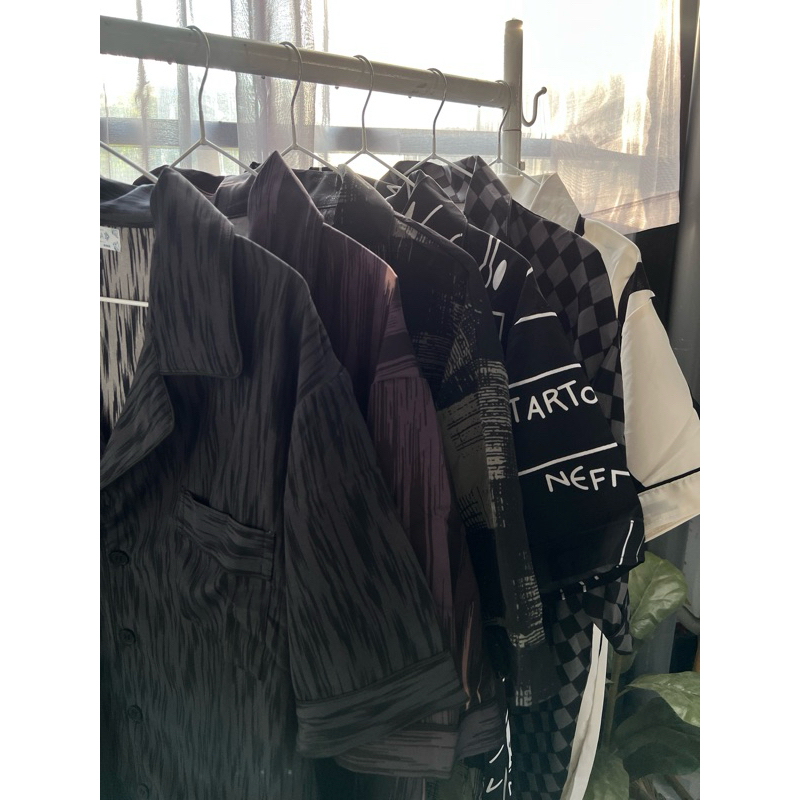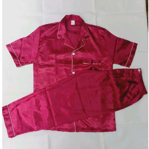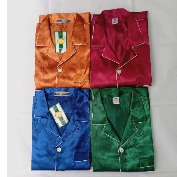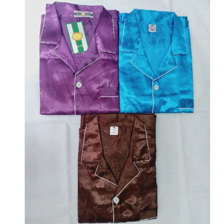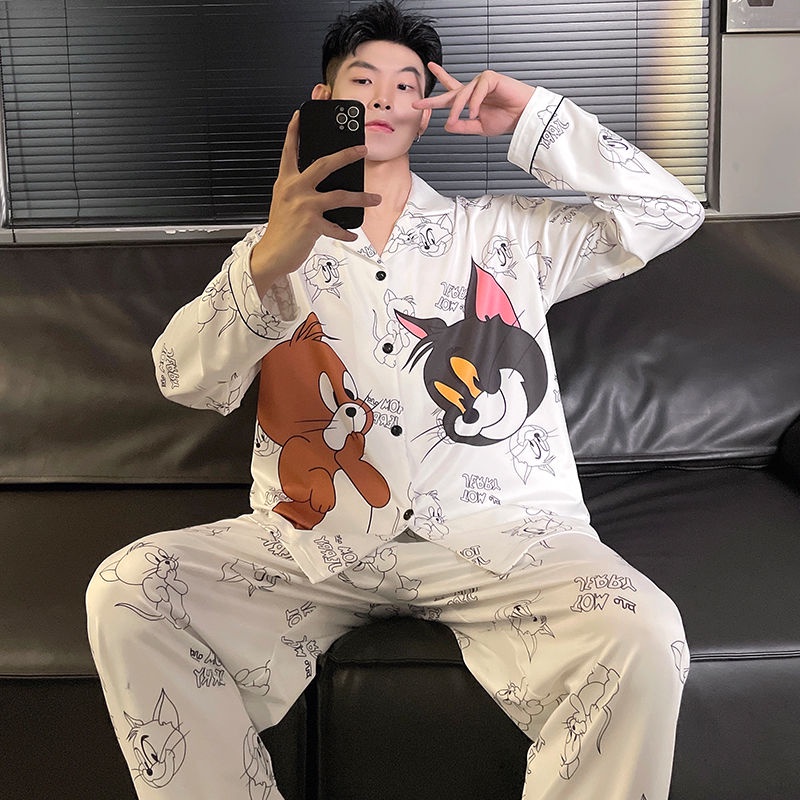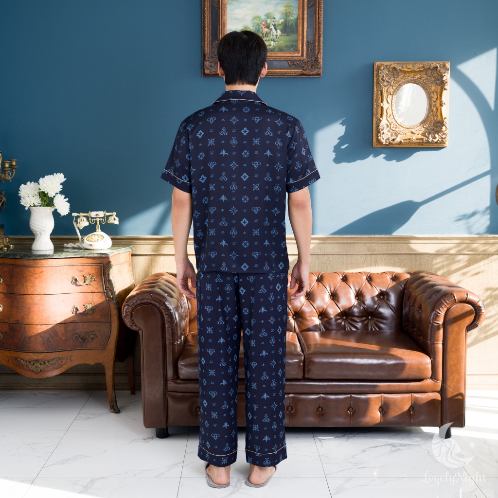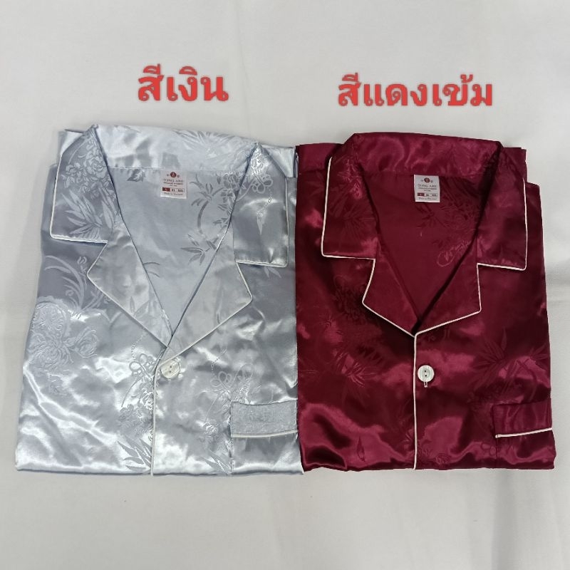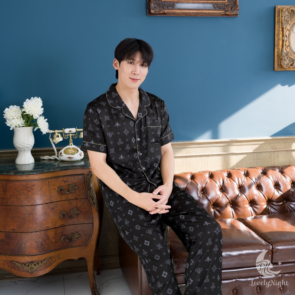 [โอเซ่] 40-100กก.ผ้าไหมน้ําแข็งชุดนอนผู้ชายปกพิมพ์กางเกงขาสั้นแขนสั้นผ้าไหมบางฤดูร้อนนักเรียนเยาวชนชุดบ้านสูทขนาดบวกผู้ชายอ้วนบ้านผ้า