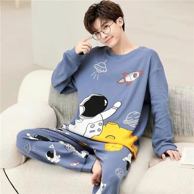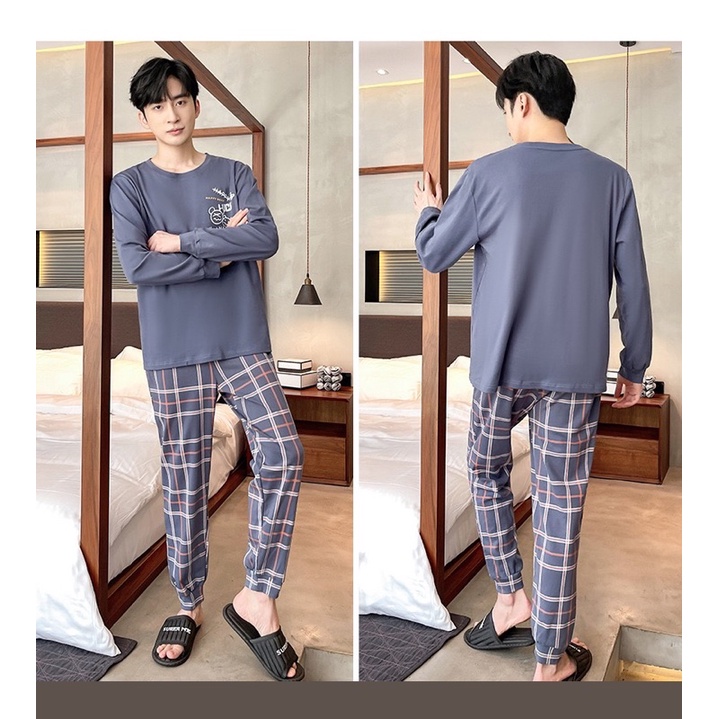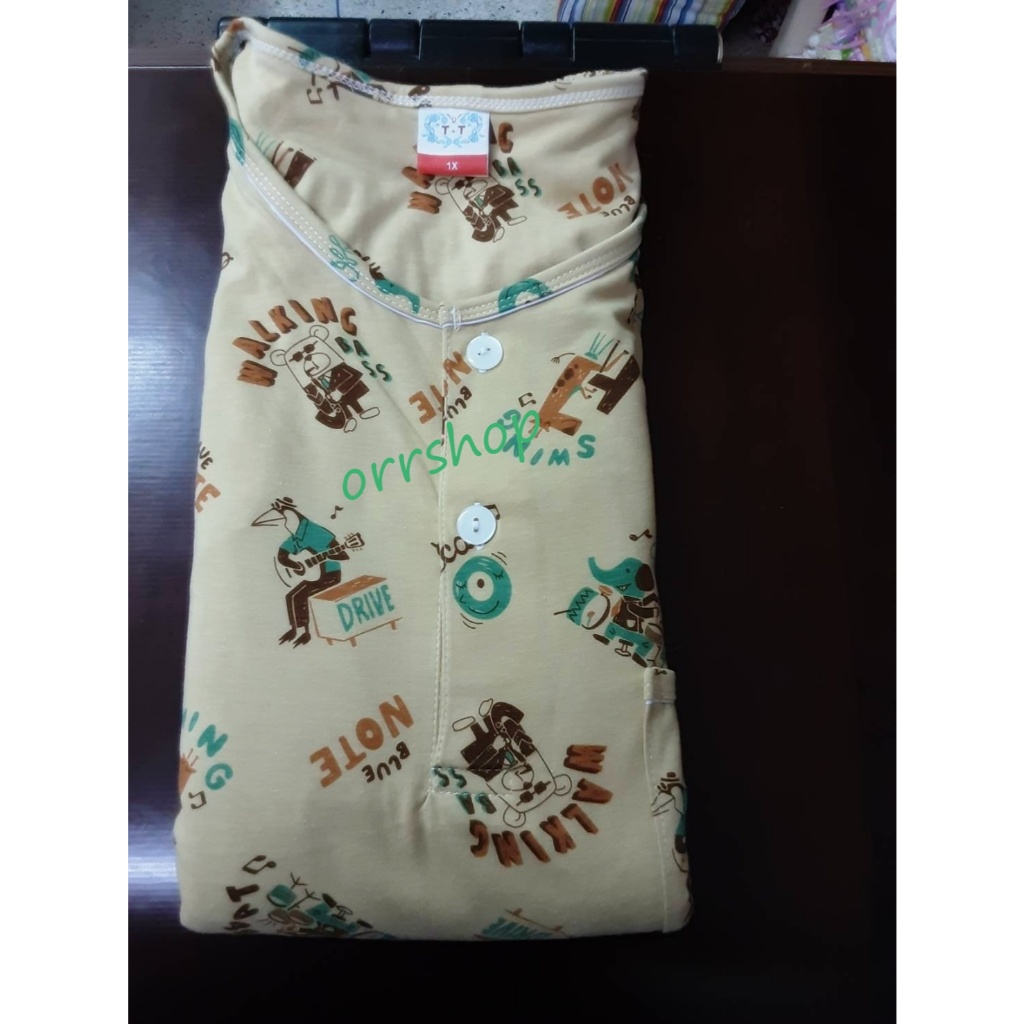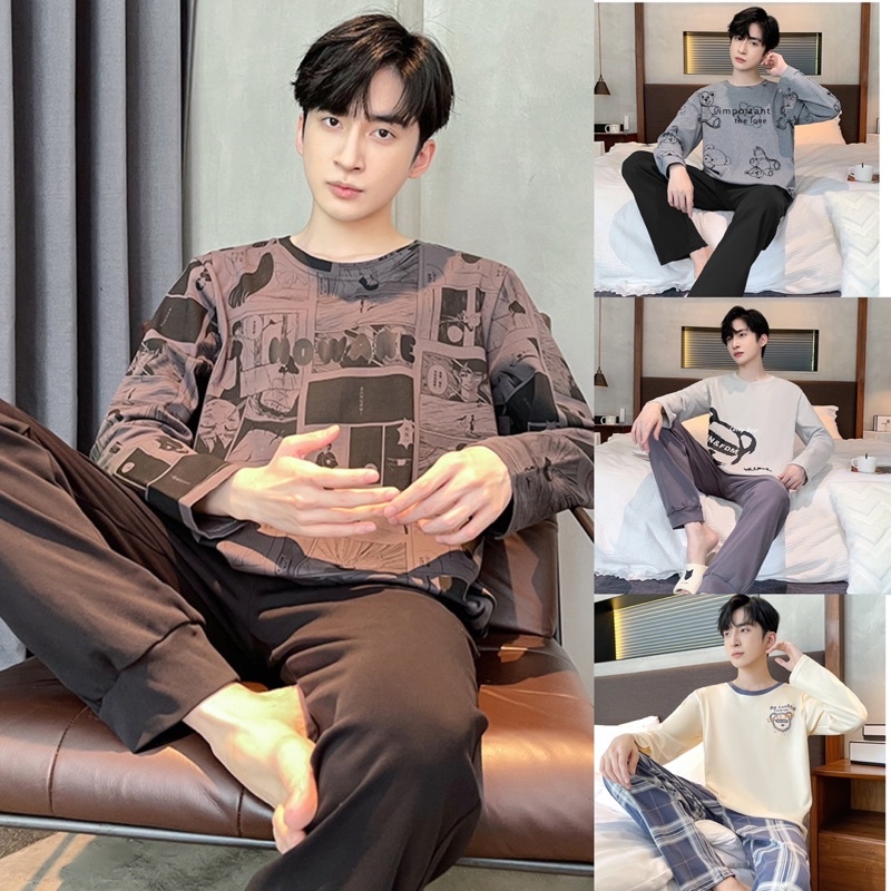 ชุดนอนผ้าชายผ้าคอตตอนเเขนยาว ขายาวCOTTON INTERLOCK M015
