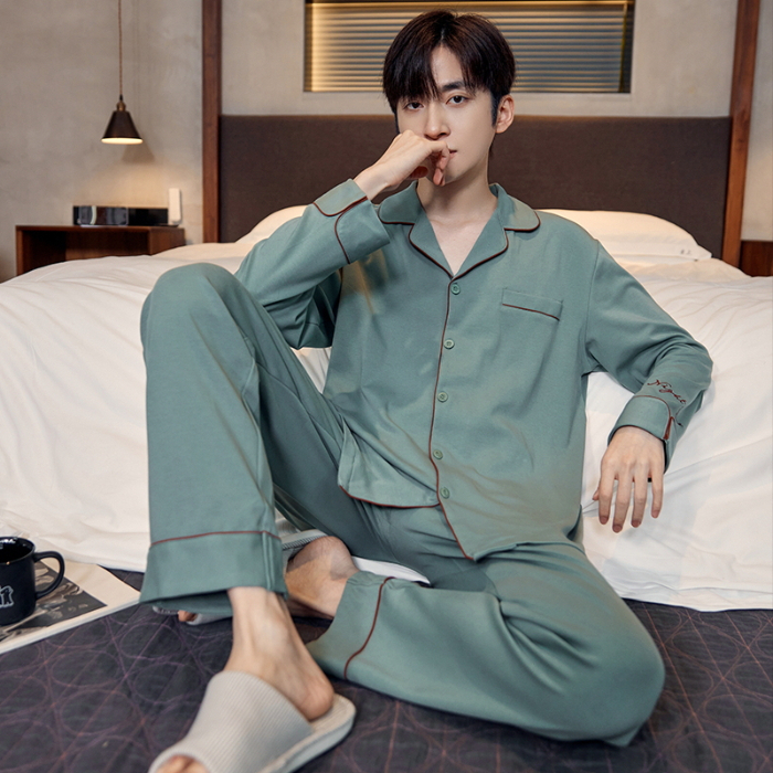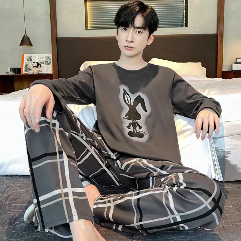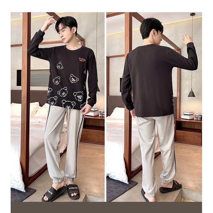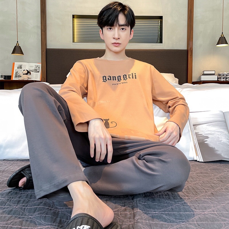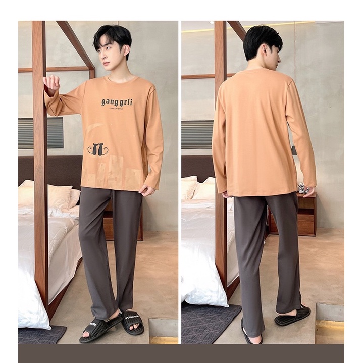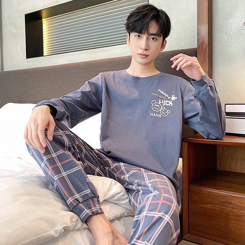 ชุดนอนผ้าชายผ้าคอตตอนเเขนยาว ขายาวCOTTON INTERLOCK M015