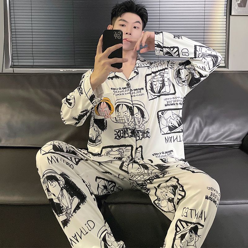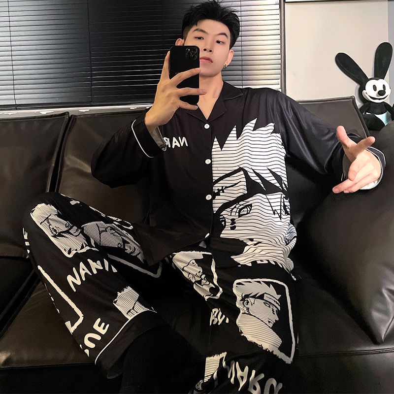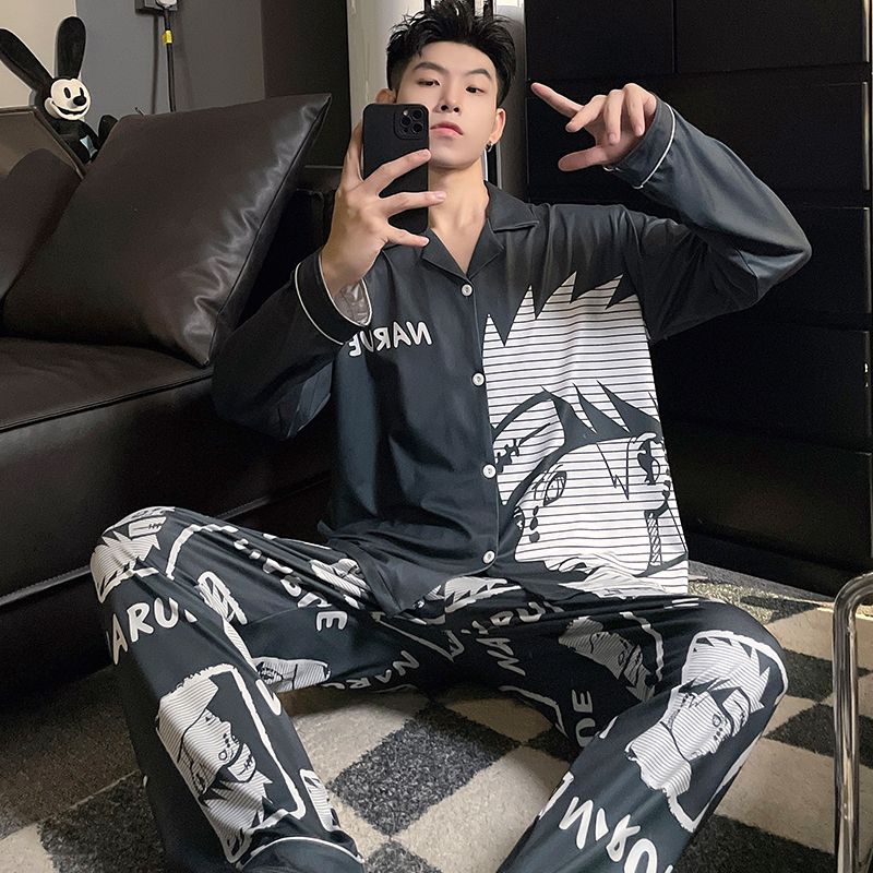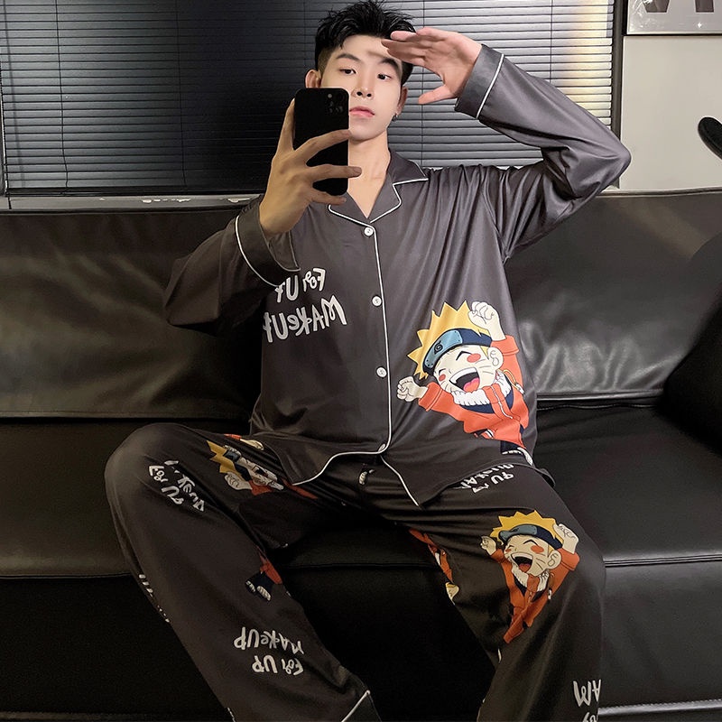 ชุดนอนแขนยาว กางเกงขายาว ลายการ์ตูนนารูโตะ ขนาดใหญ่ เหมาะกับฤดูใบไม้ร่วง และฤดูหนาว สําหรับผู้ชาย
