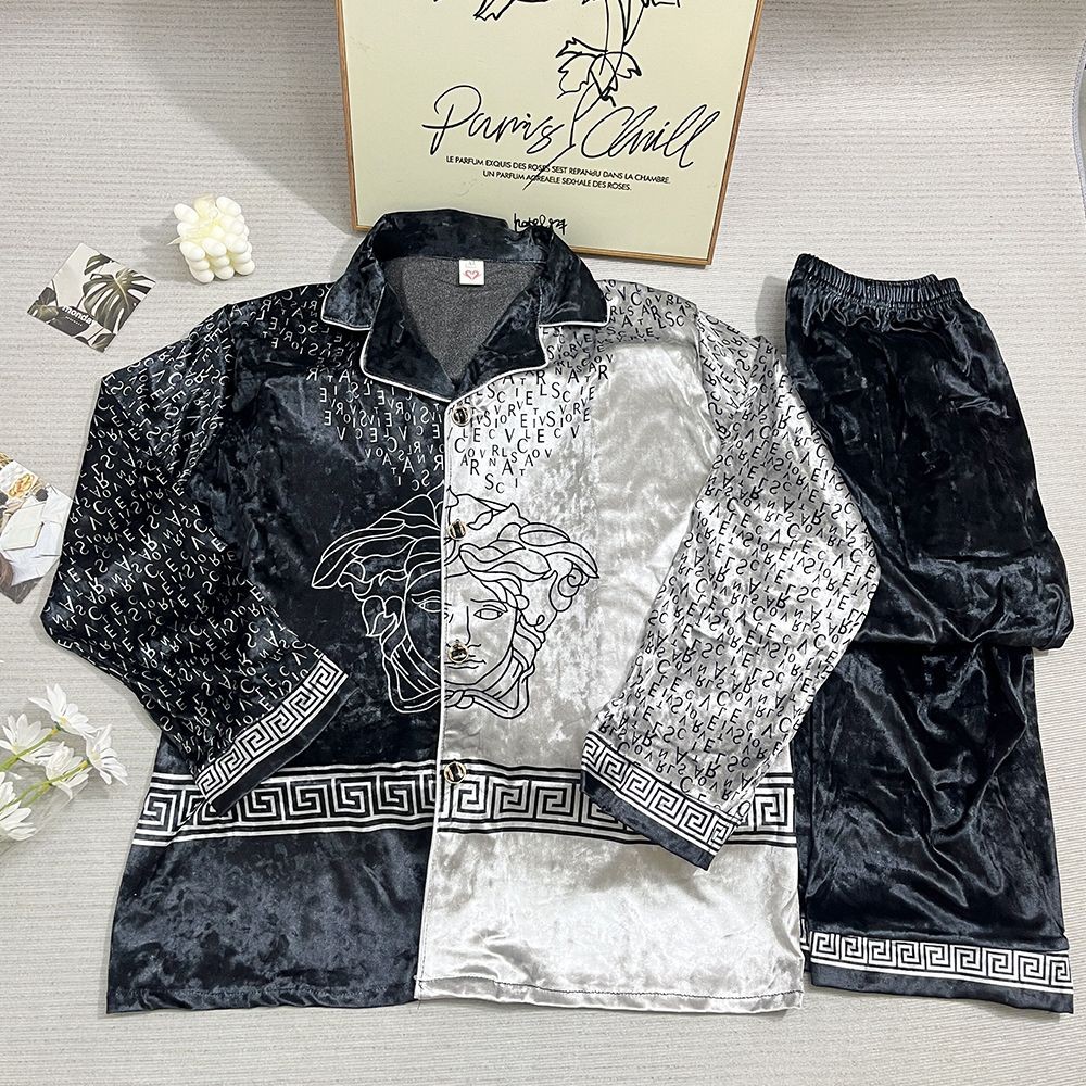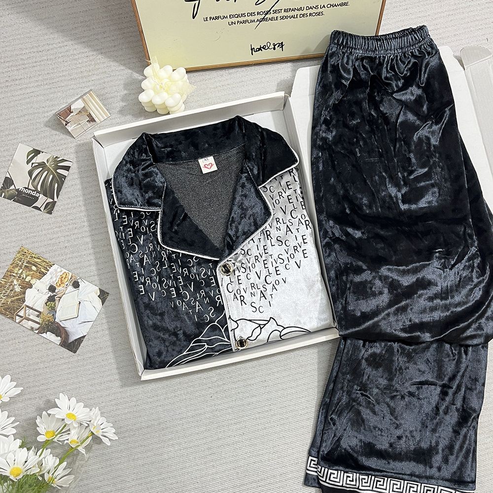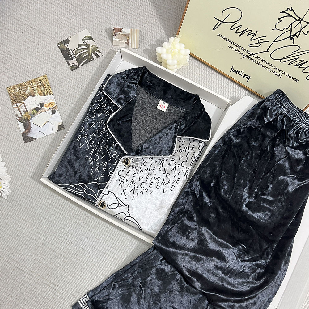 ชุดนอนกํามะหยี่สีทองผู้ชายฤดูใบไม้ร่วงฤดูหนาวแขนยาวกางเกงขายาวแขนยาวสไตล์ชื่อใหญ่แสงหรูหราบางกํามะหยี่ชุดสูทผู้ชายระดับไฮเอนด์สามารถสวมใส่