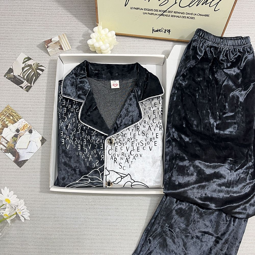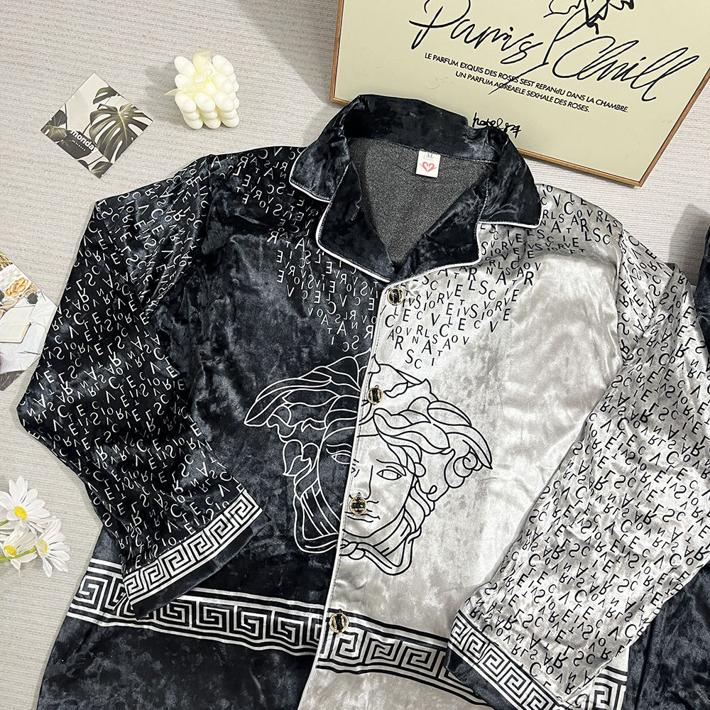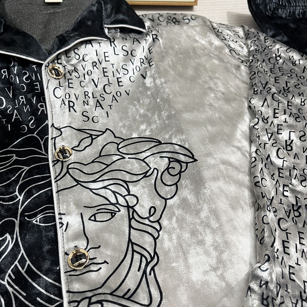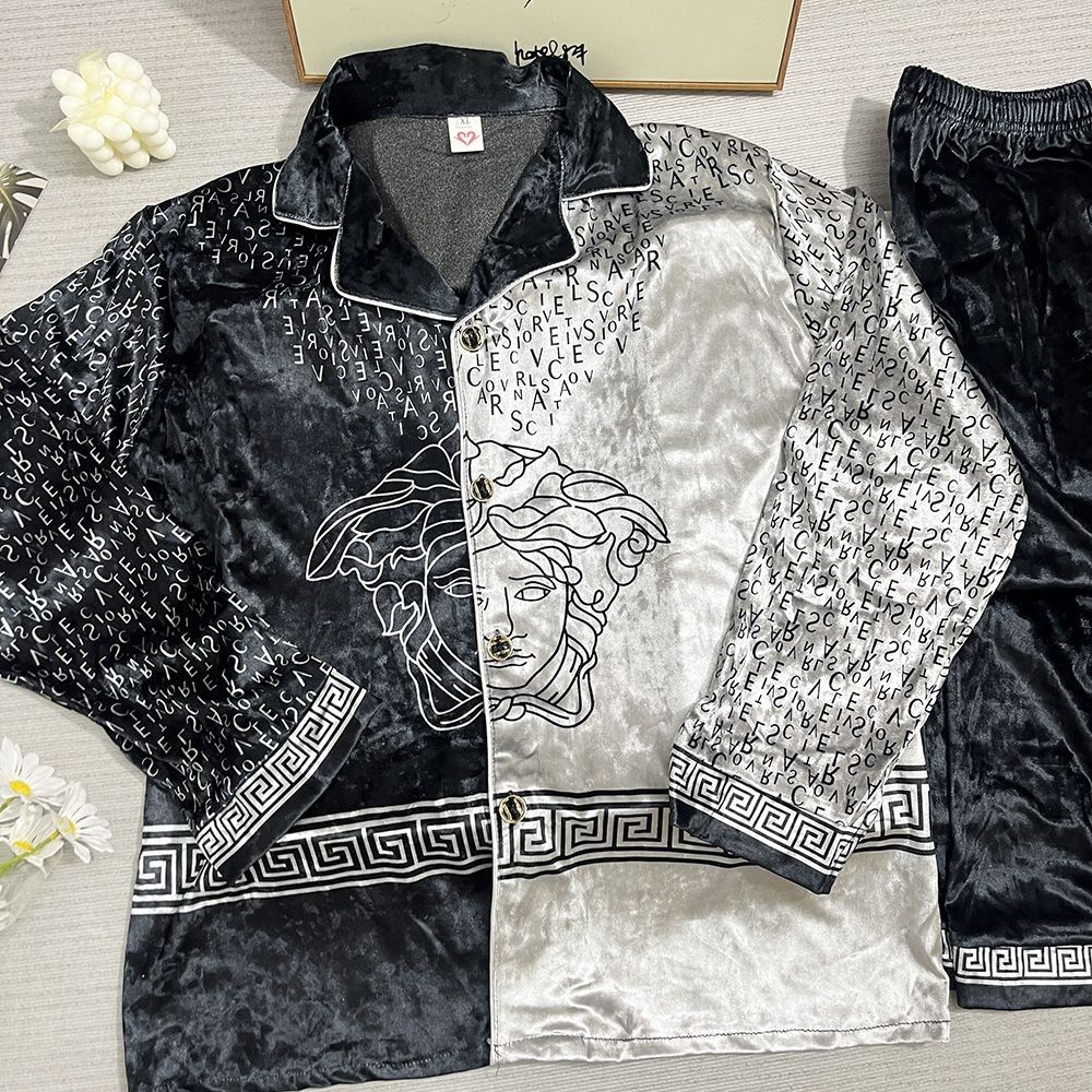 ชุดนอนกํามะหยี่สีทองผู้ชายฤดูใบไม้ร่วงฤดูหนาวแขนยาวกางเกงขายาวแขนยาวสไตล์ชื่อใหญ่แสงหรูหราบางกํามะหยี่ชุดสูทผู้ชายระดับไฮเอนด์สามารถสวมใส่