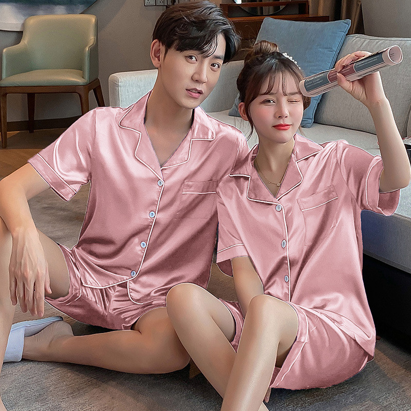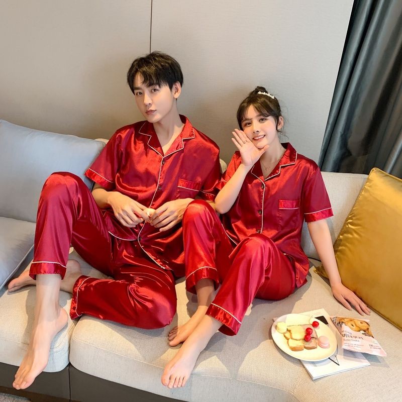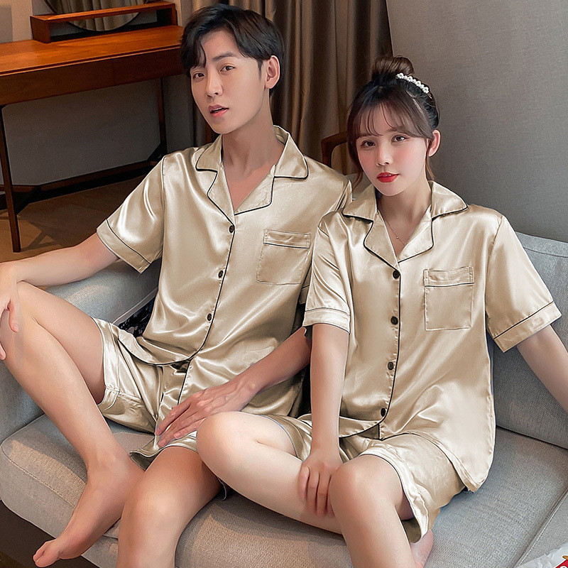 ชุดนอนคู่หรูหรา สำหรับฤดูร้อน ผ้าไหมน้ำแข็ง แขนสั้น