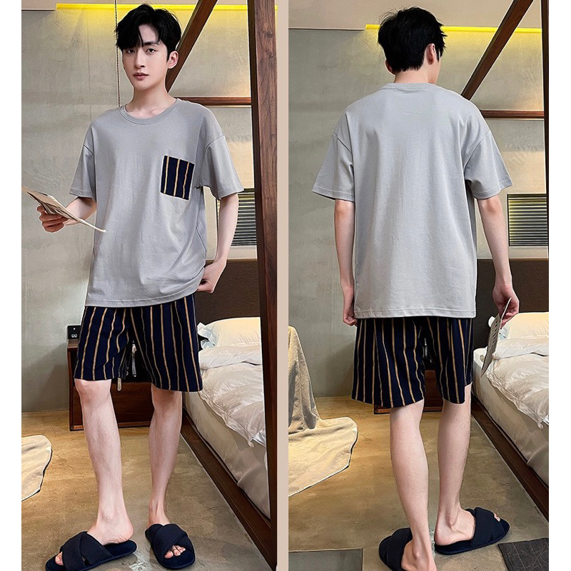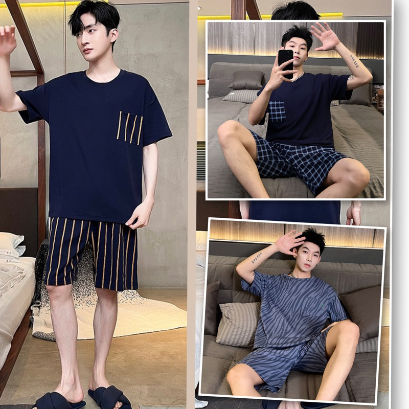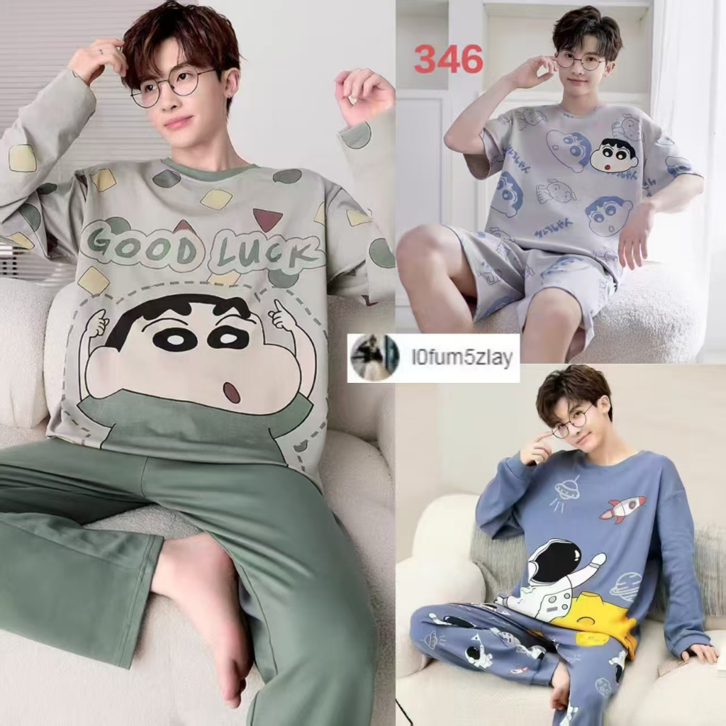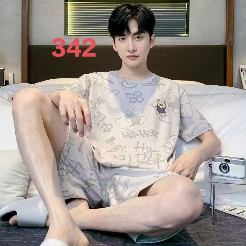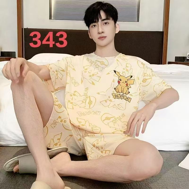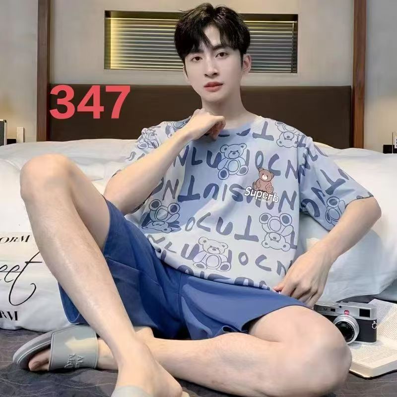 ส่งมอบทันที, ที่ส่งมาจากประเทศไทย,M-4XL,ชุดนอนผู้ชาย, ผ้าฝ้ายเนื้อนุ่ม, ลายการ์ตูน,หลากหลายรูปแบบ, ขาสั้น+เสื้อยืด
