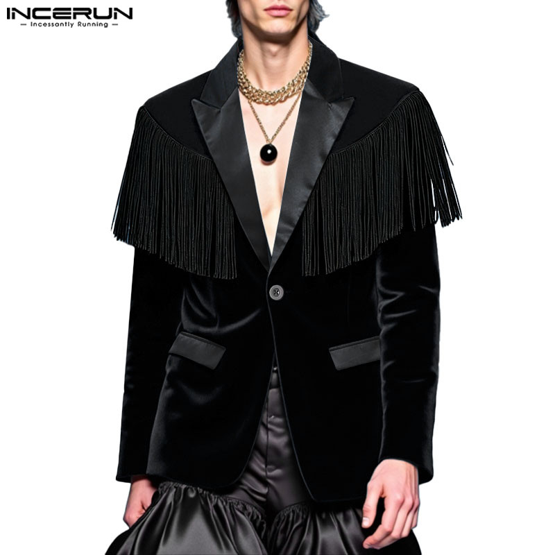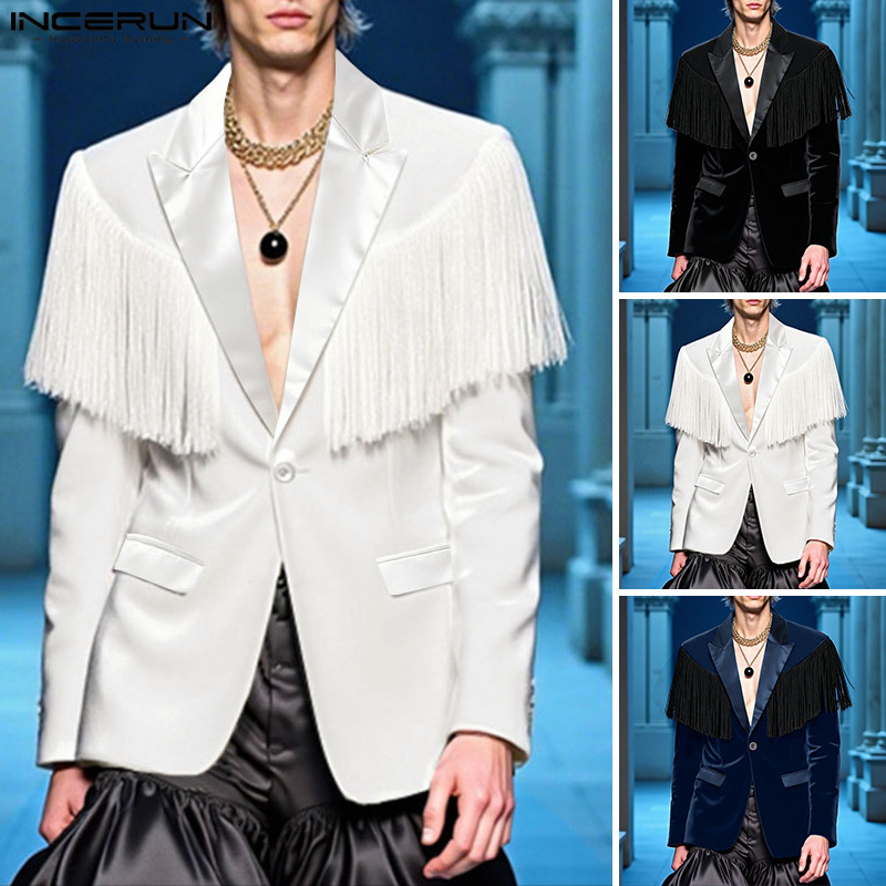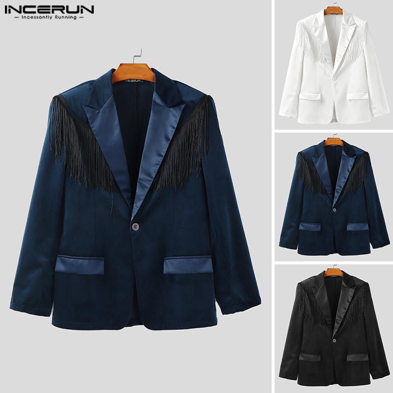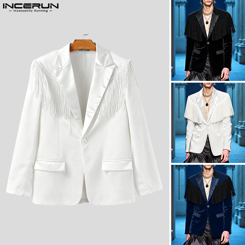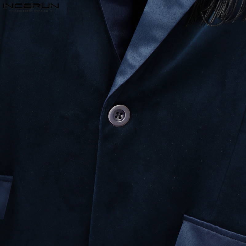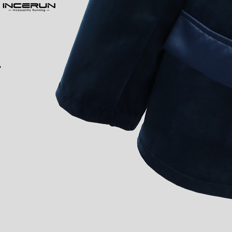 INCERUN ชุดเสื้อเบลเซอร์และกางเกงขากว้างสำหรับผู้ชาย สไตล์เกาหลี แขนสั้น แบบ V โค้ต