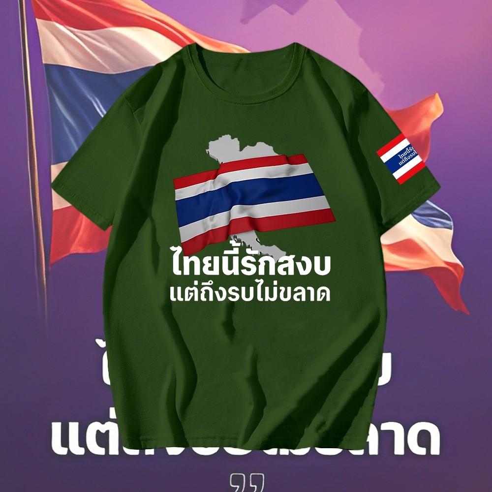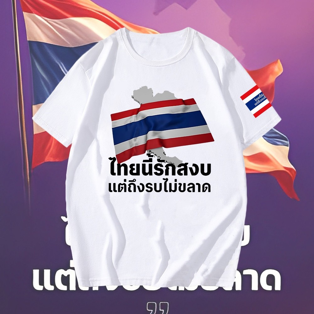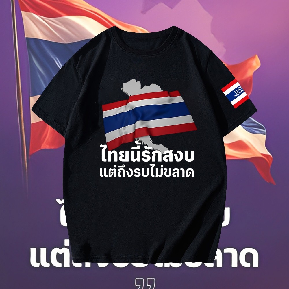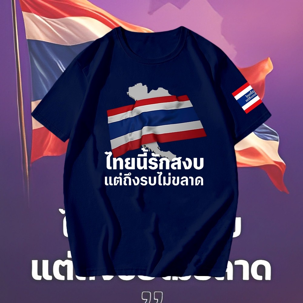 “ไทยนี้รักสงบแต่ถึงรบไม่ขลาด” เสื้อยืดผ้าฝ้ายธงชาติไทย