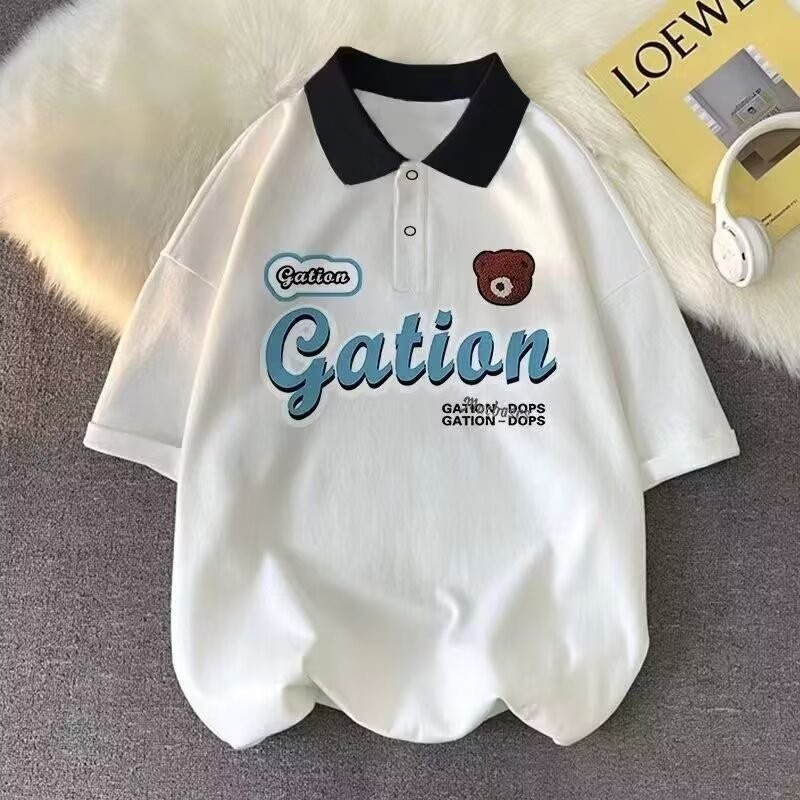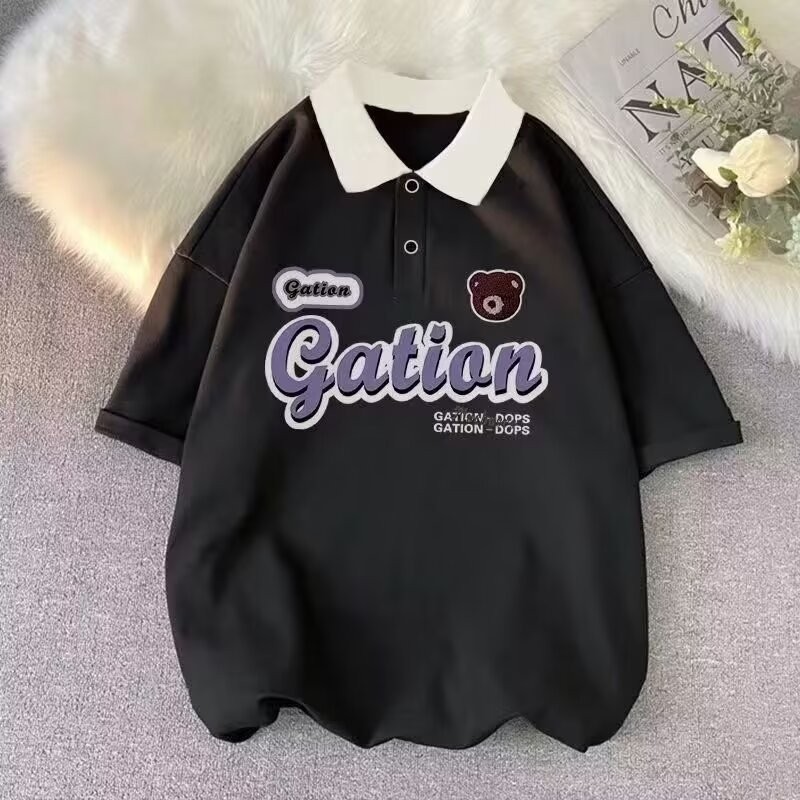 -เสื้อโปโลสไตล์เพรพพี้เสื้อยืดแขนสั้นสำหรับผู้ชายและผู้หญิงเสื้อ INS สไตล์ฮ่องกงฤดูร้อนเสื้อยืดคอปกครึ่งแขน