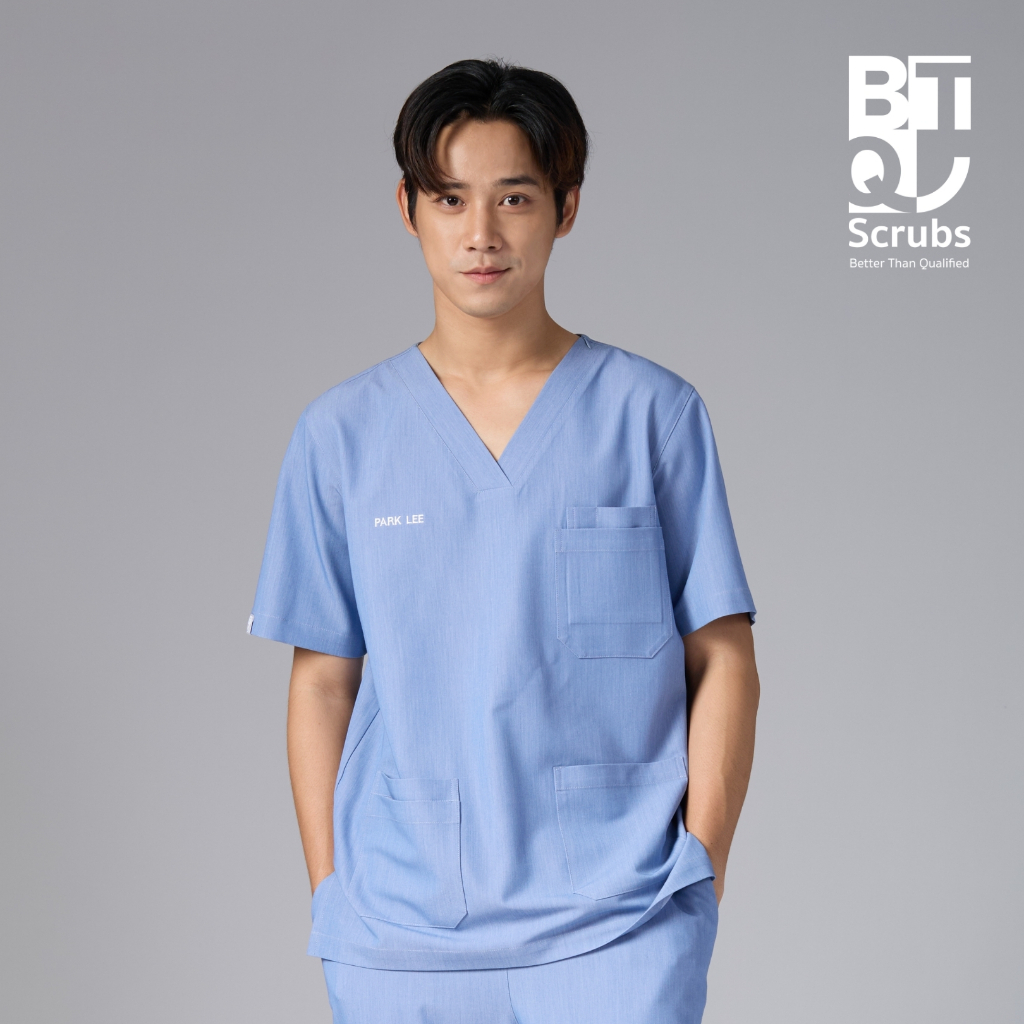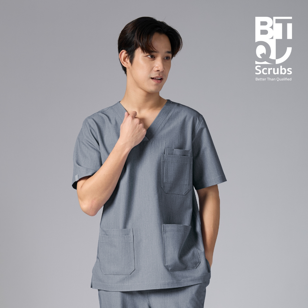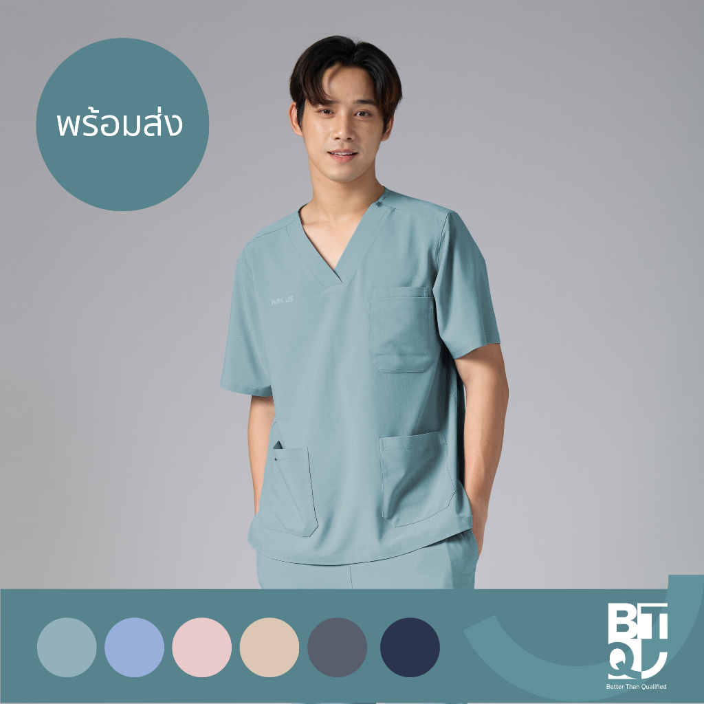 ( ไม่ปักชื่อ ) BTQ Medical Scrub Top – Unisex – รุ่น Zip Up | เสื้อสครับหมอ พยาบาล ทรงหลวม คอวี ซิปไหล่