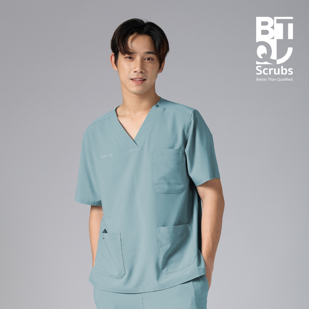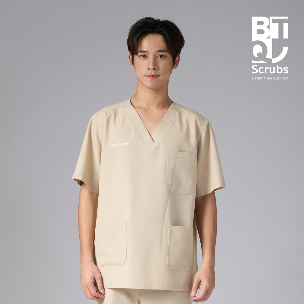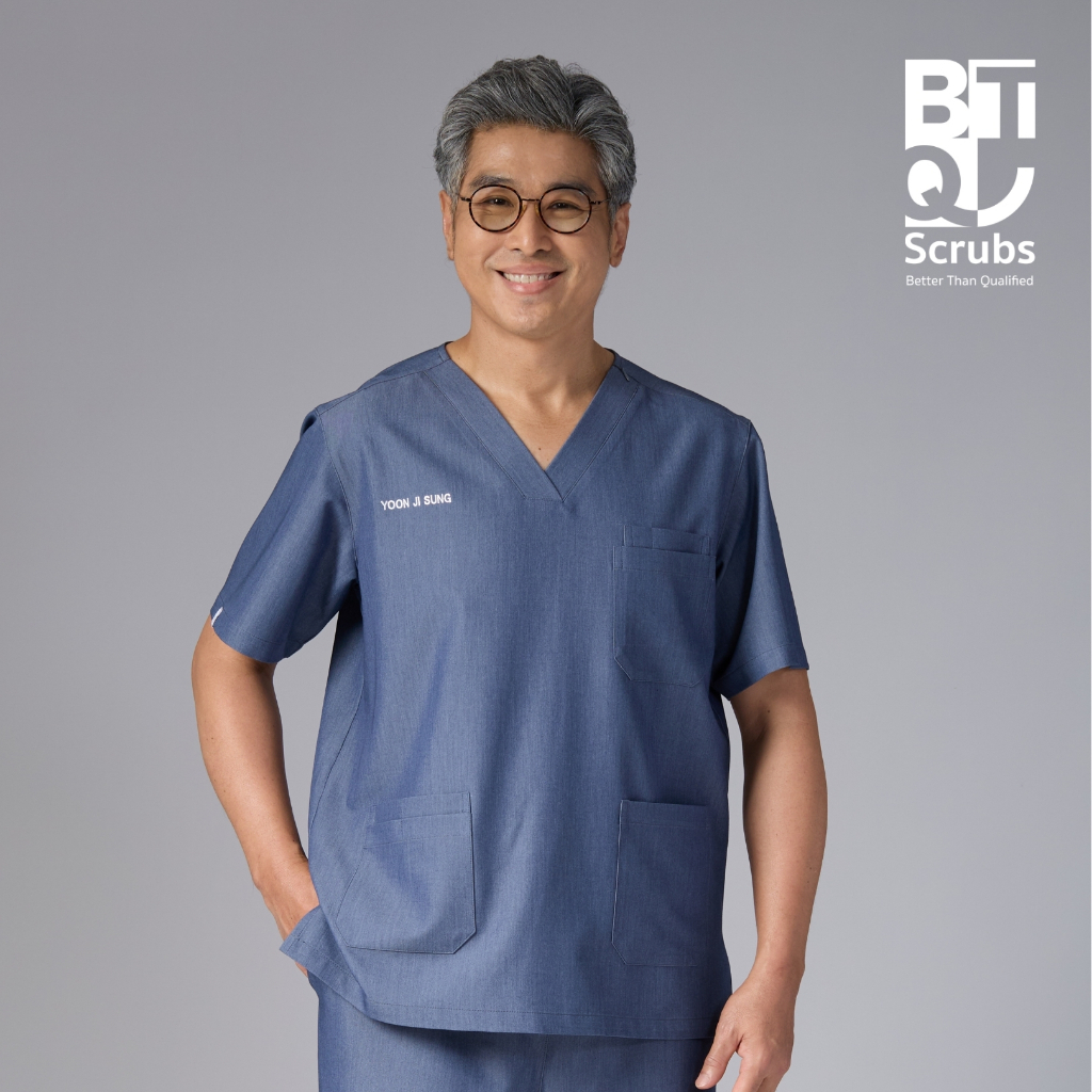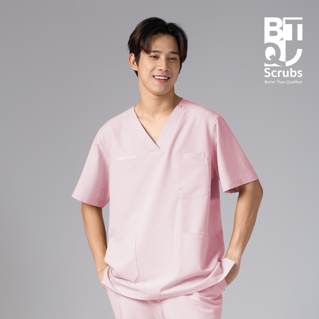 ( ไม่ปักชื่อ ) BTQ Medical Scrub Top – Unisex – รุ่น Zip Up | เสื้อสครับหมอ พยาบาล ทรงหลวม คอวี ซิปไหล่